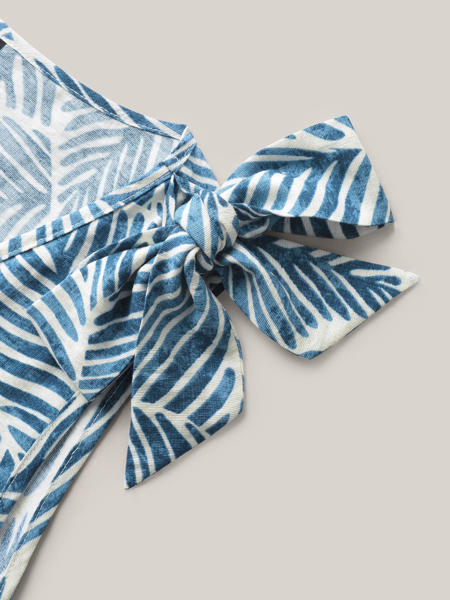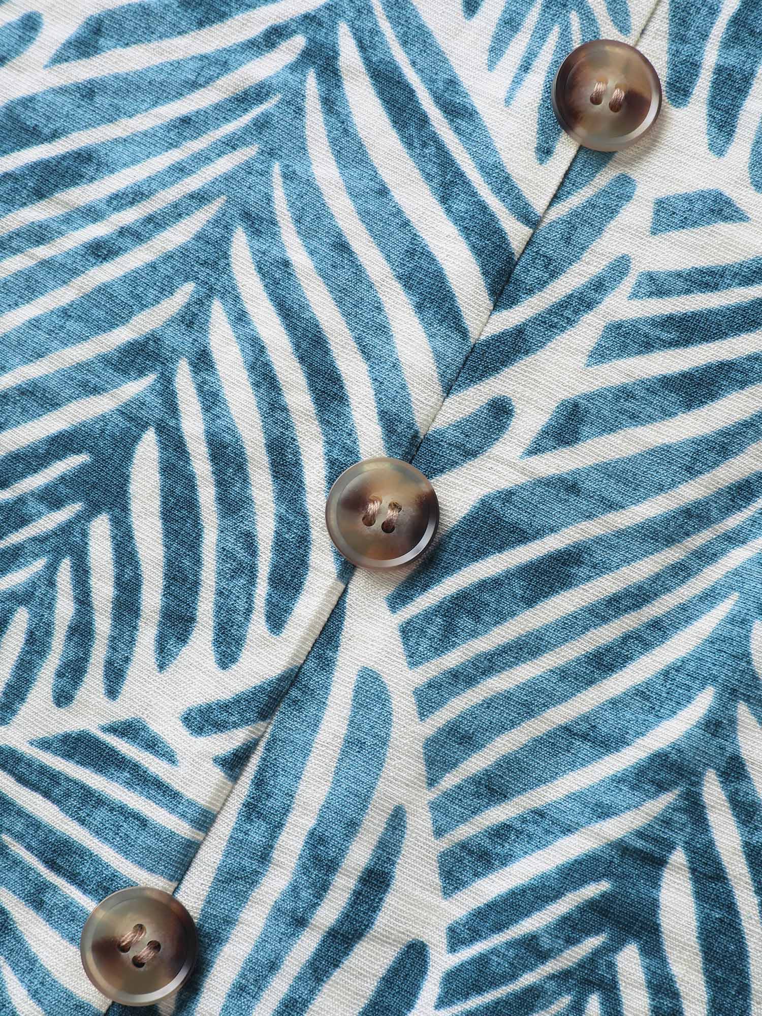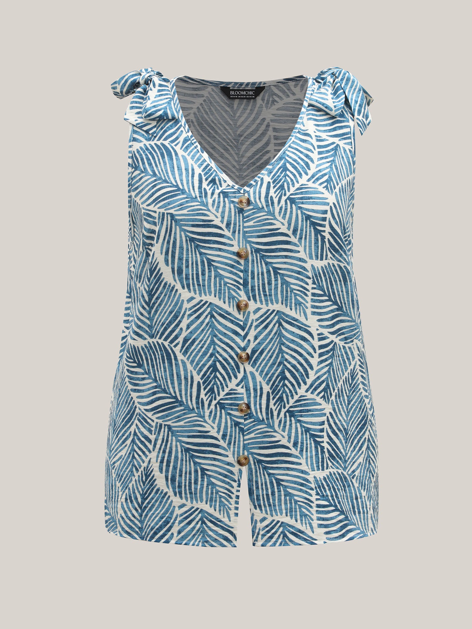 Bow Shoulder Leaf Print Button Tank Top
