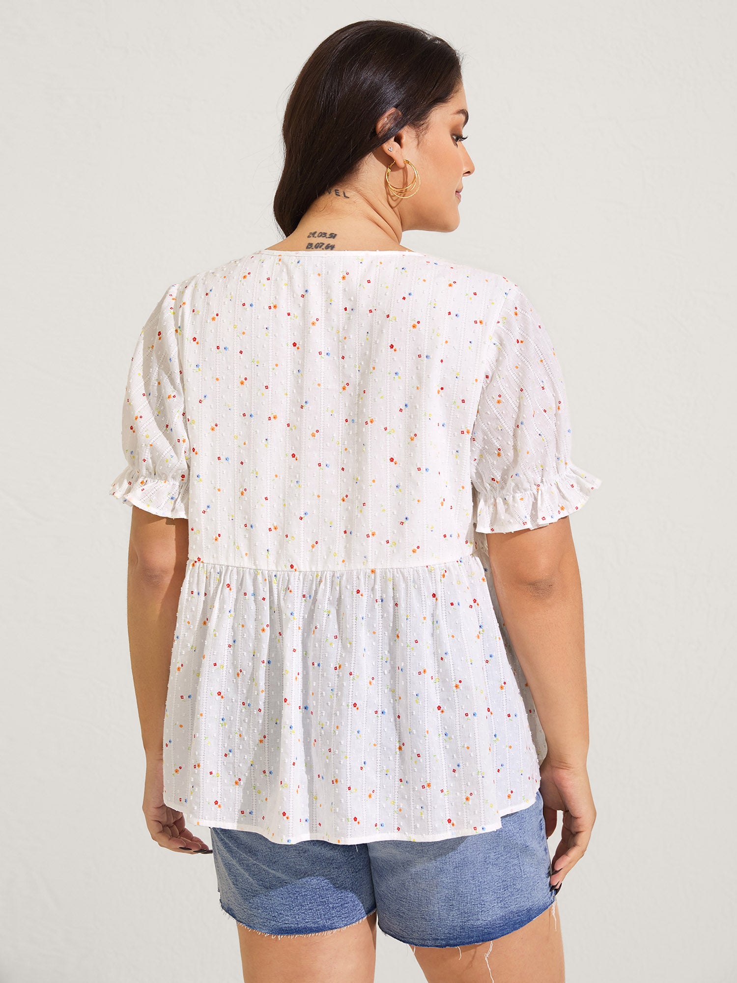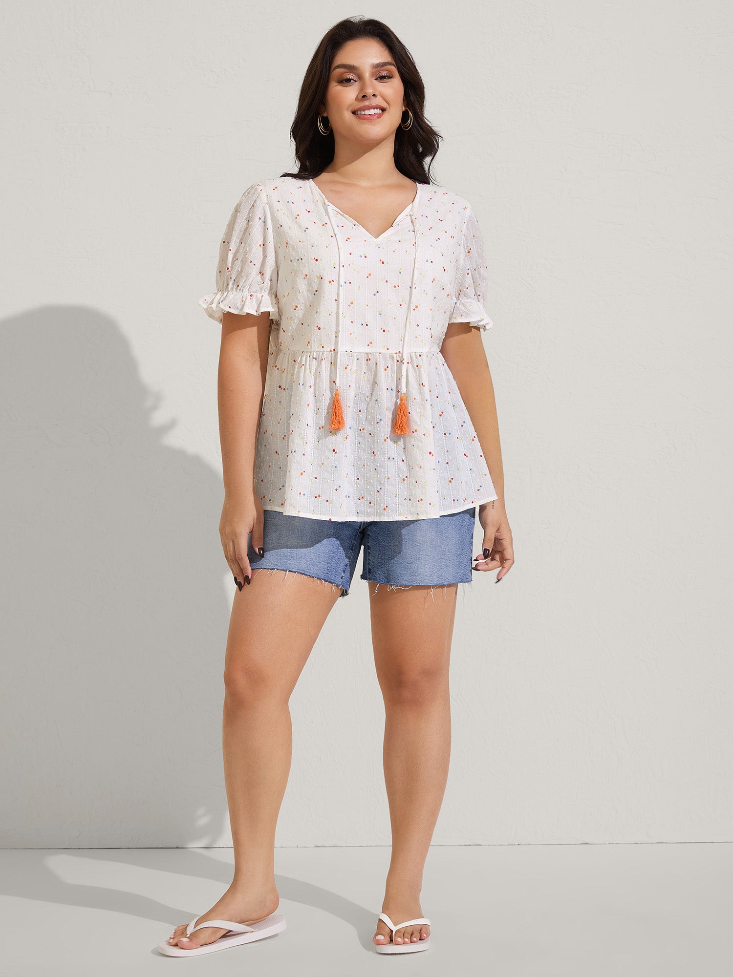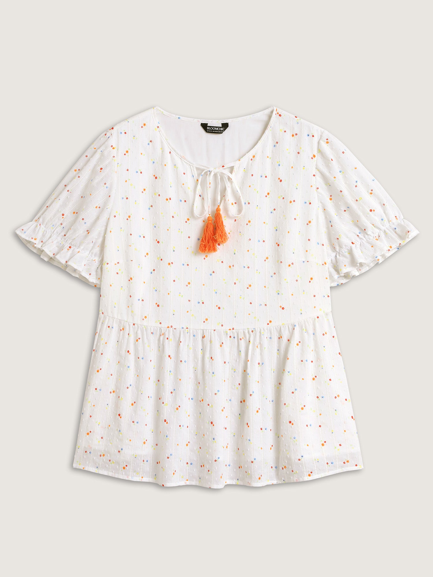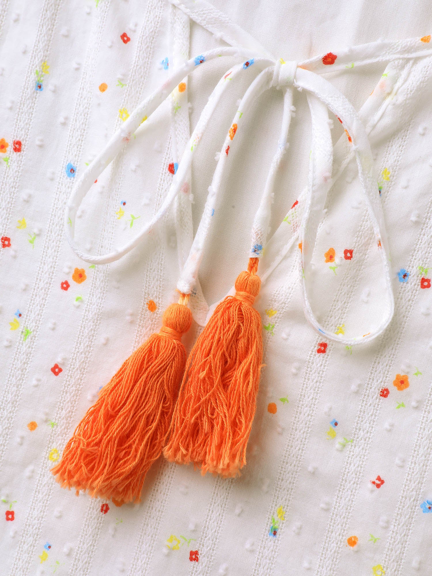 Cotton Colorful Embroidered Tassels Solid Blouse