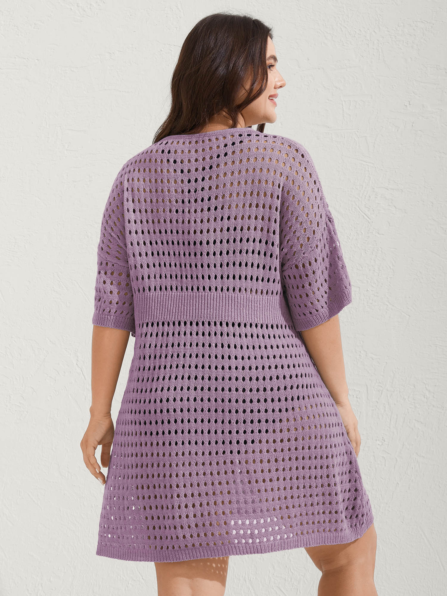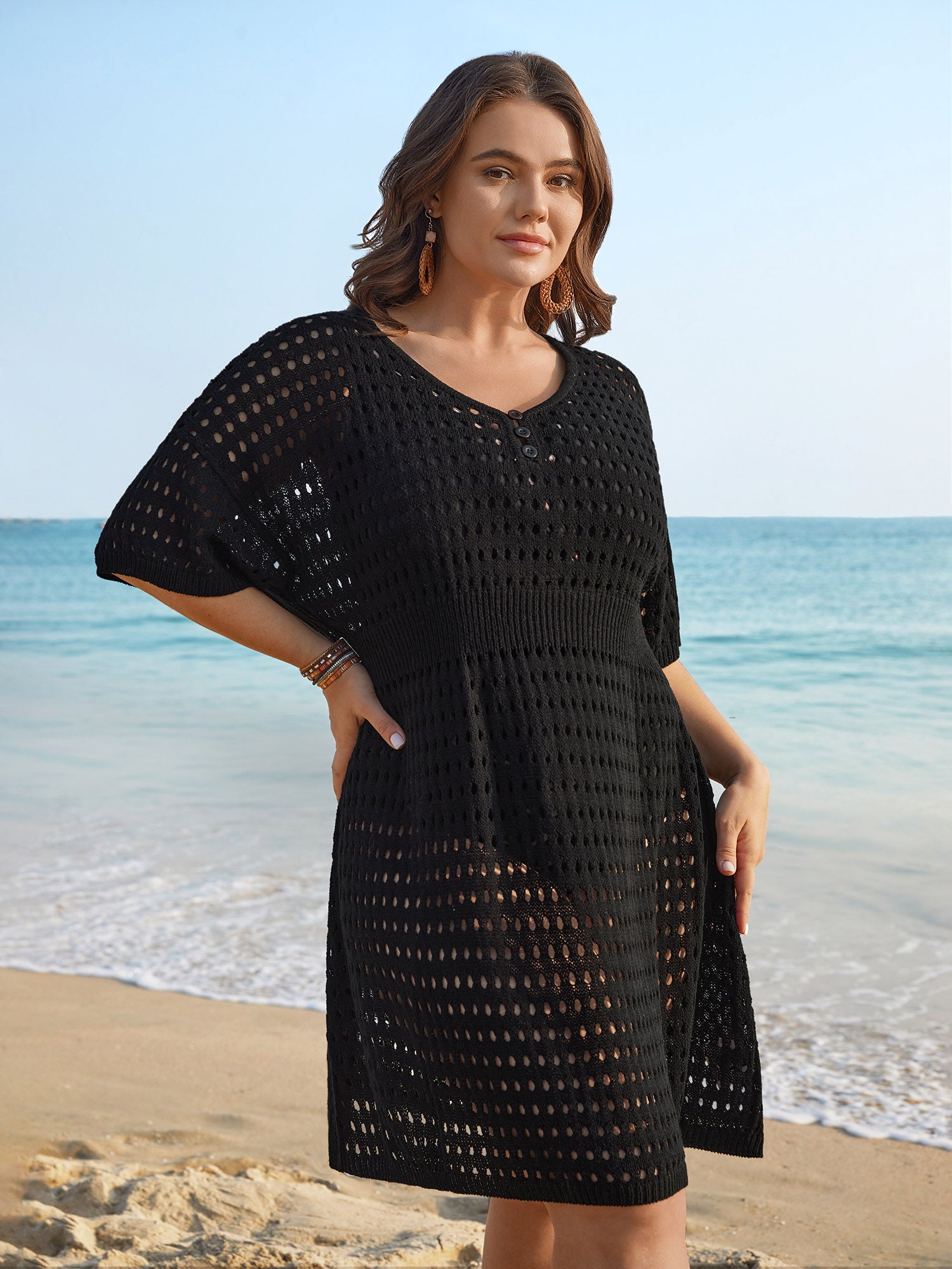Cut-Out Waist-Cinched Button Swim Cover-Up