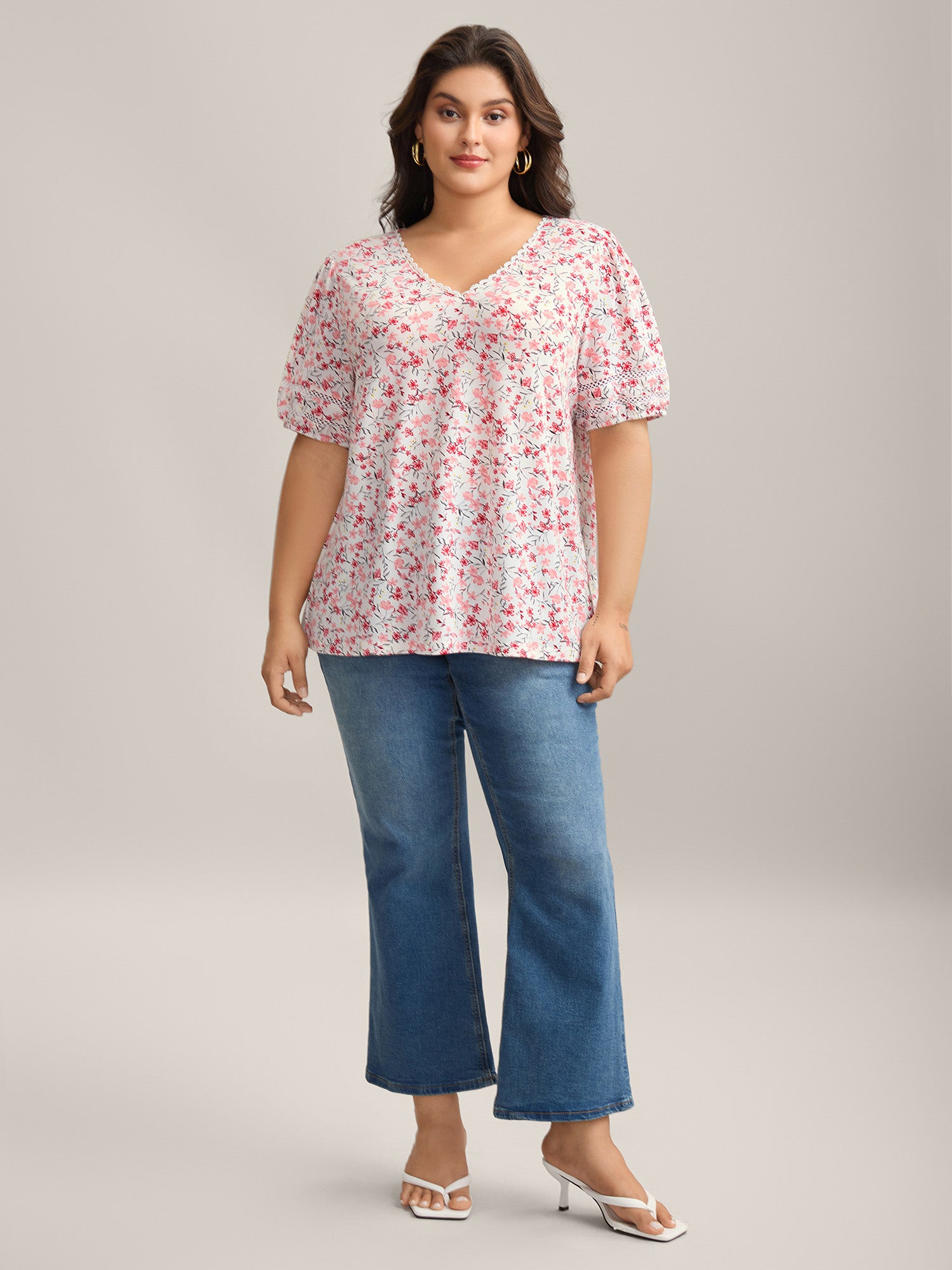 Floral Print Colorful Lace Knit Top
