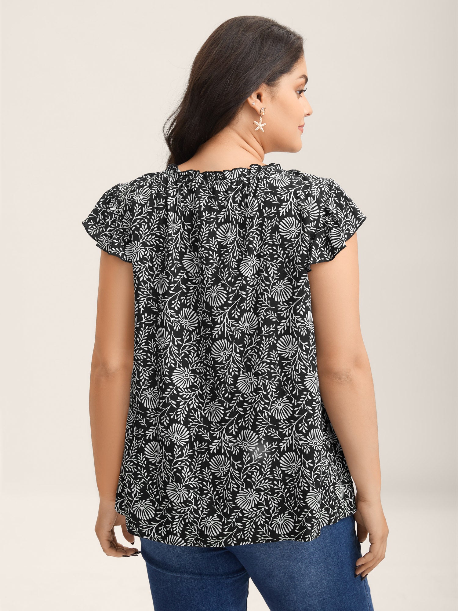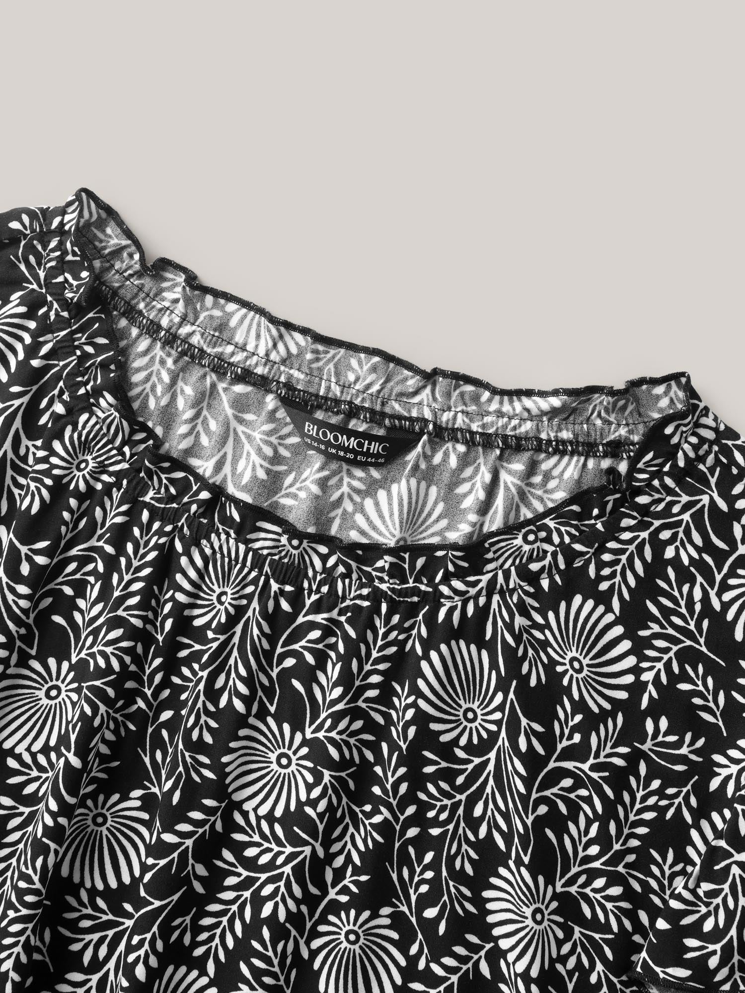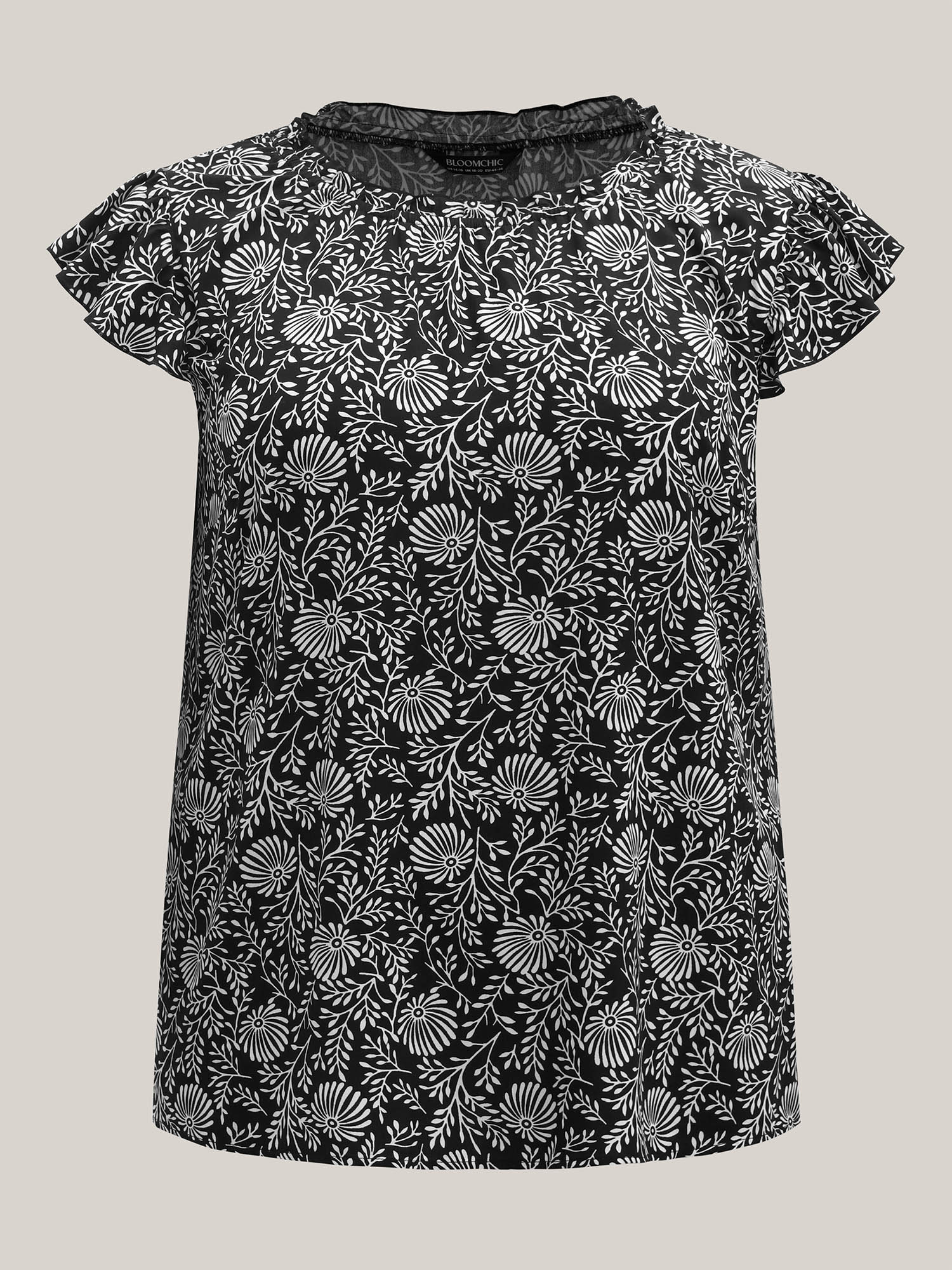 Floral Print Ruffled Neck Blouse