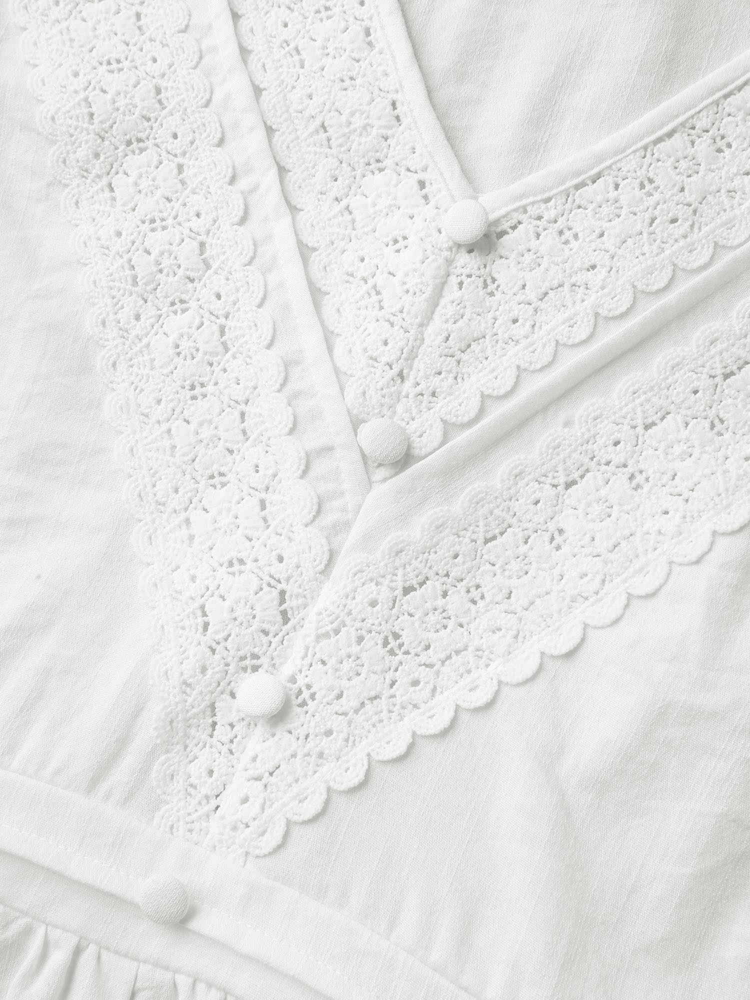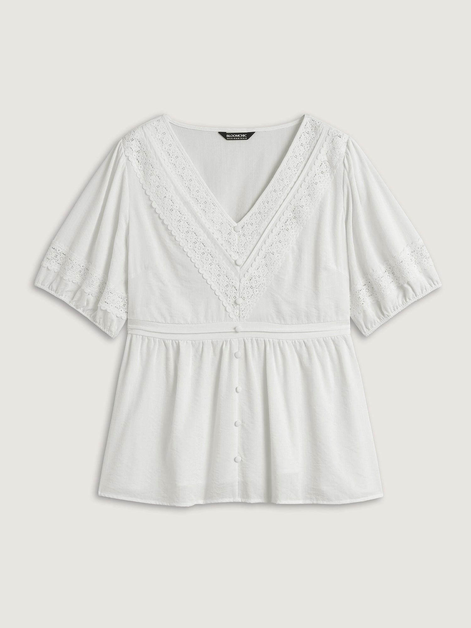 Lace Trim V-Neck Puffy Sleeve Blouse