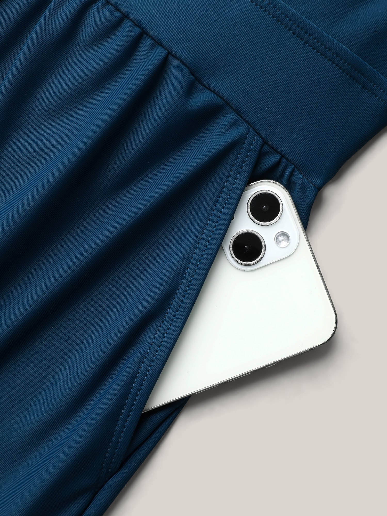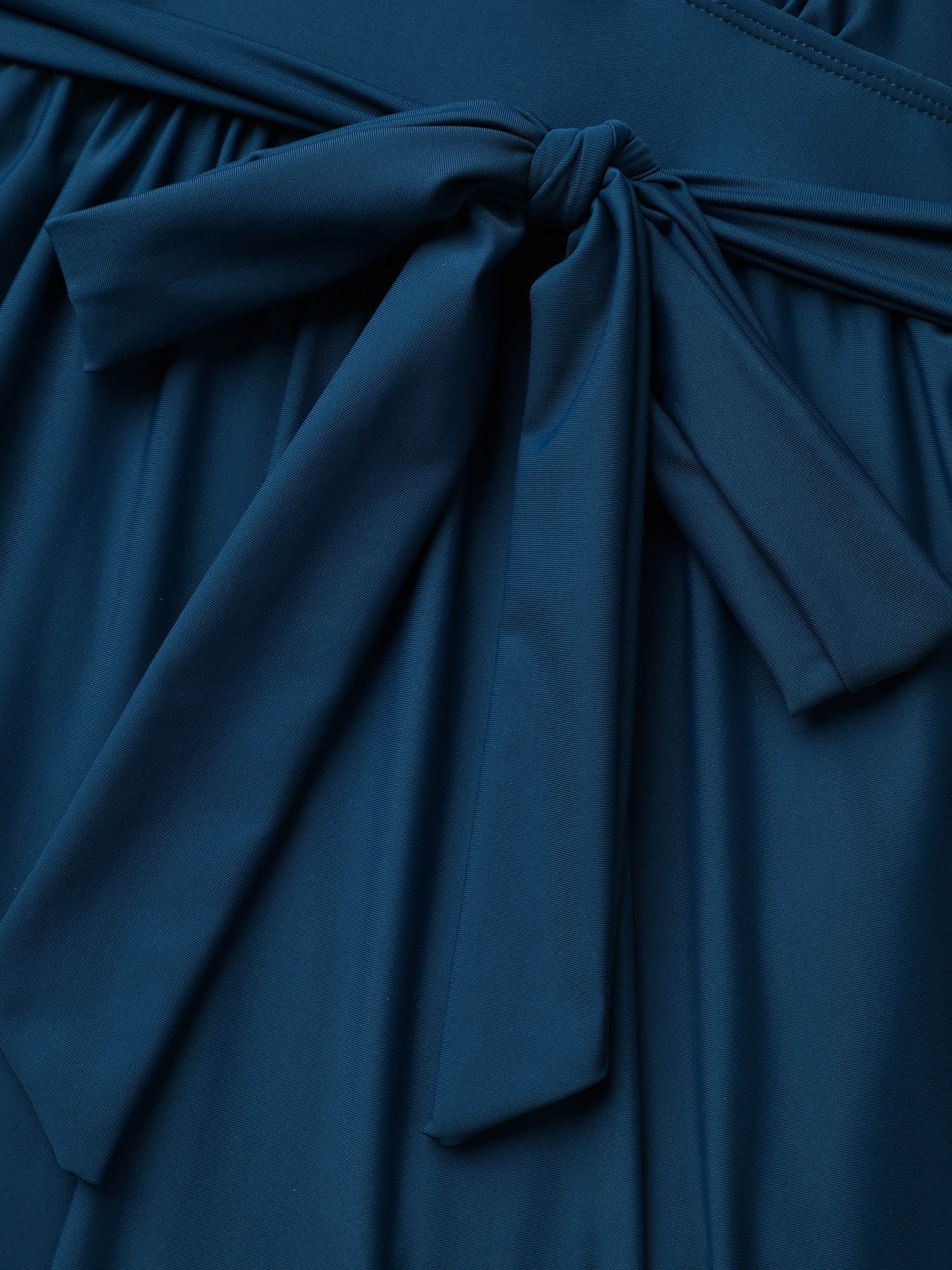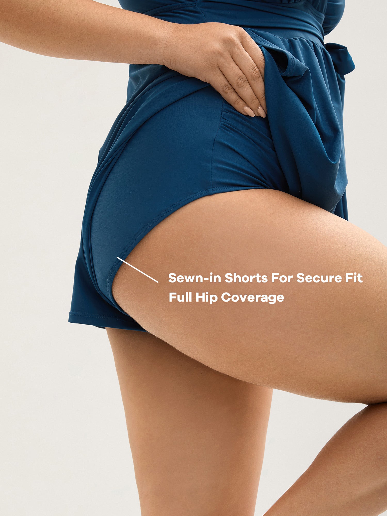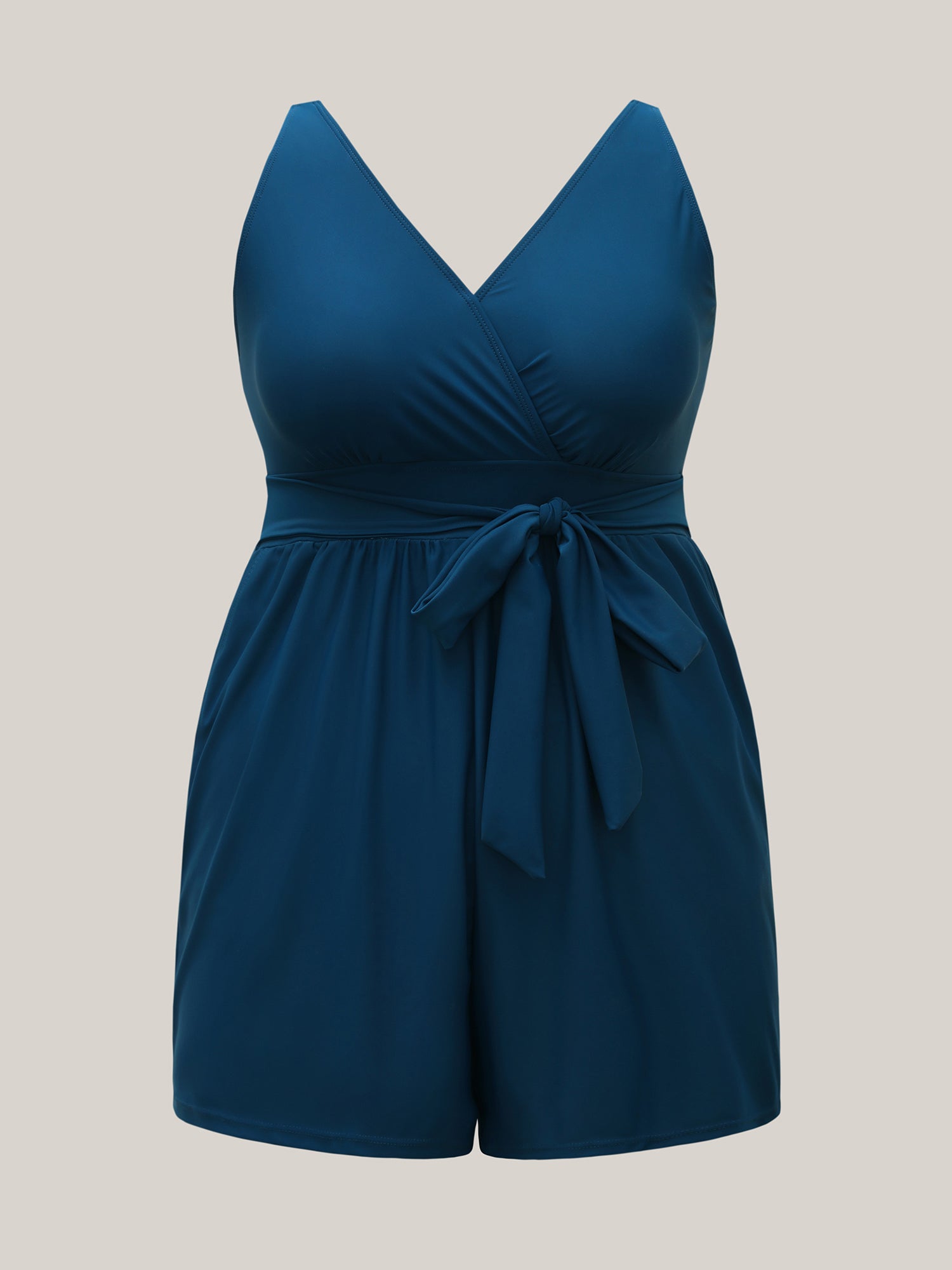 Surplice Neckline Belted Plain One-Piece Swimsuit
