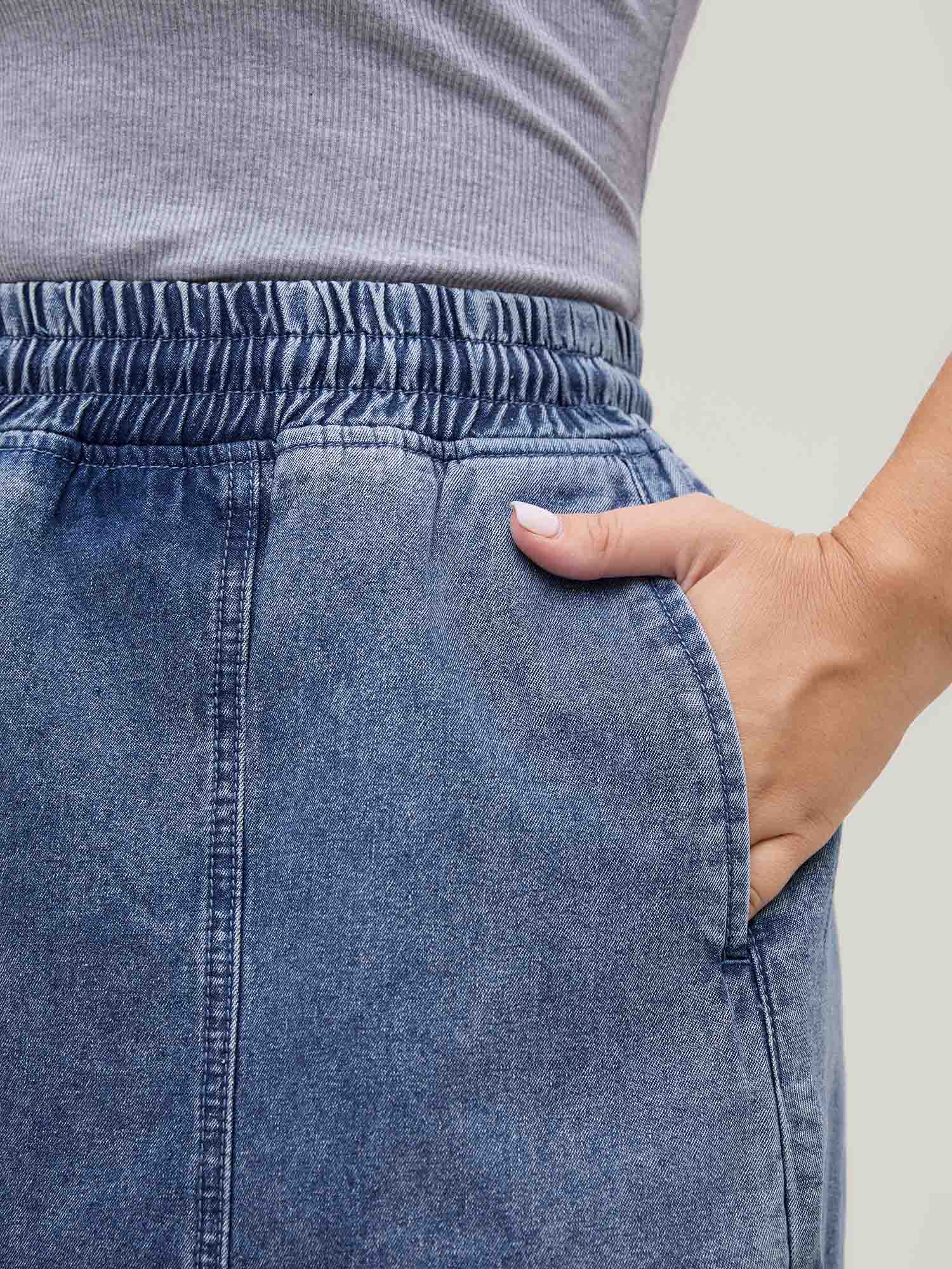 Pull-On Drawstring Denim Skort