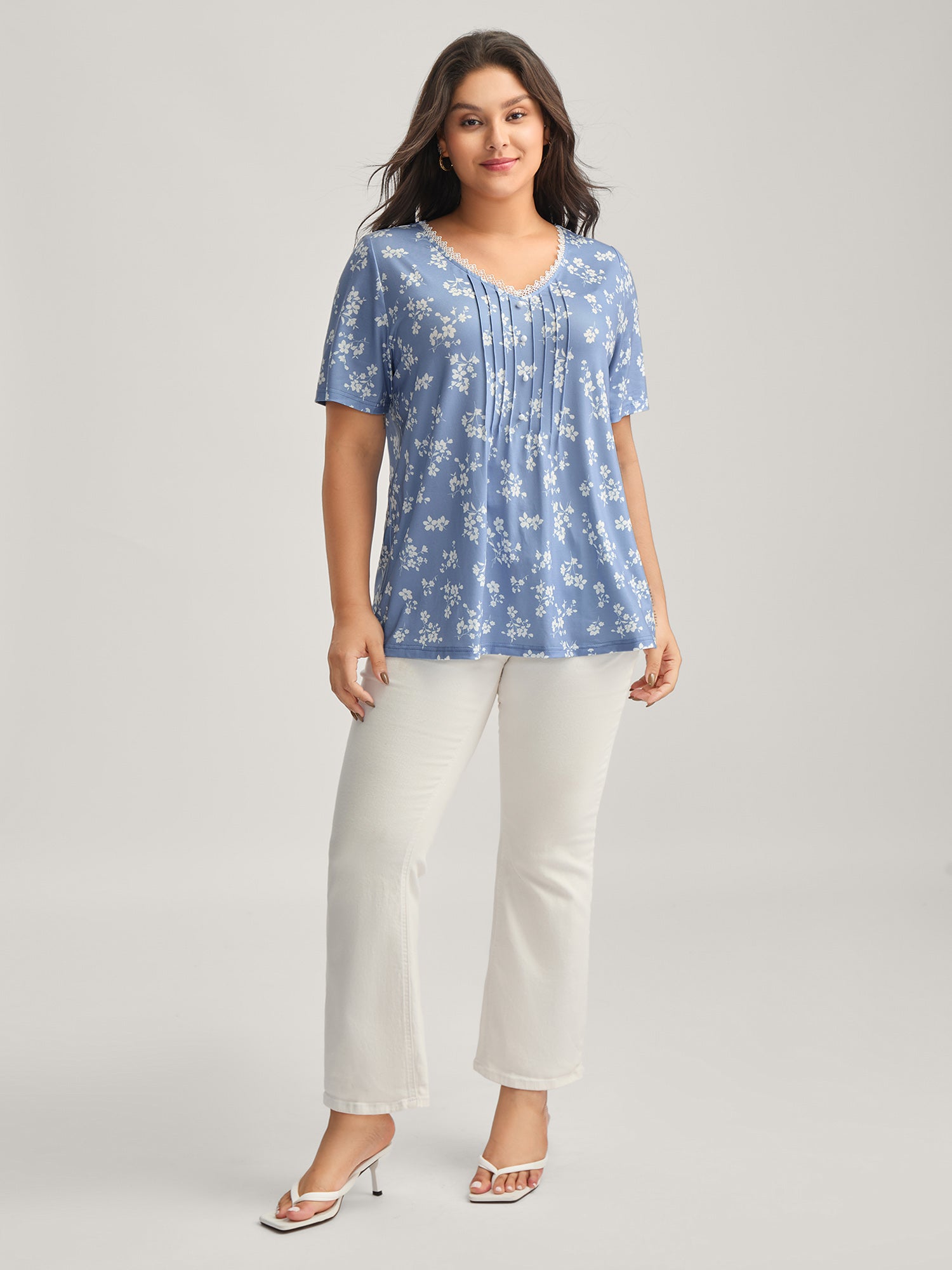 Stretchy Floral Pin Tuck Lace Top