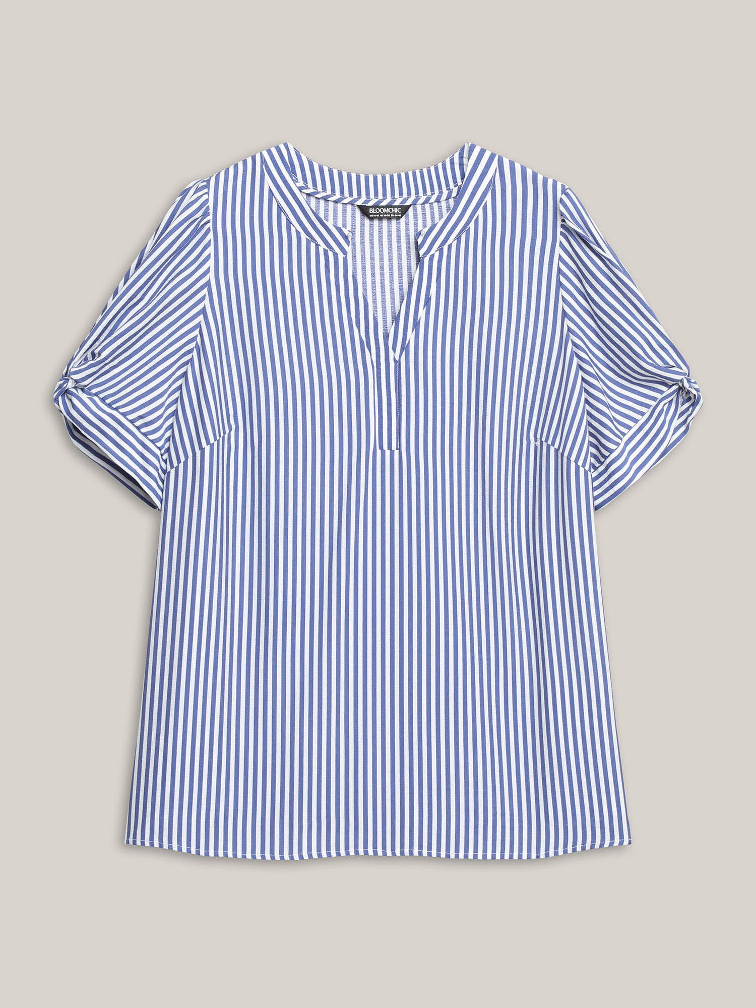 Stripes Knotted Sleeve Notched Collar Blouse