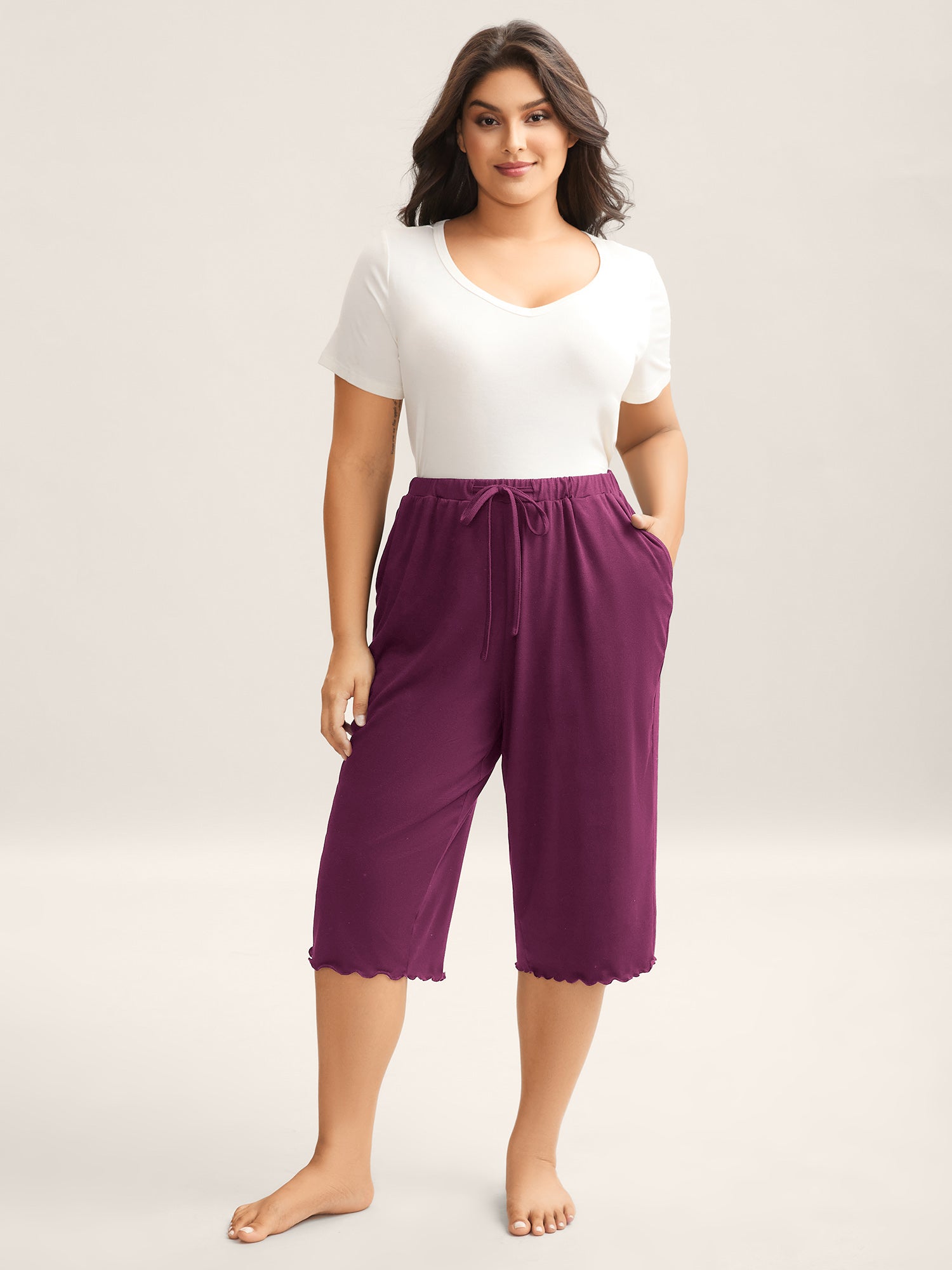 Supersoft Scalloped Hem Straight-Fit Lounge Bottoms