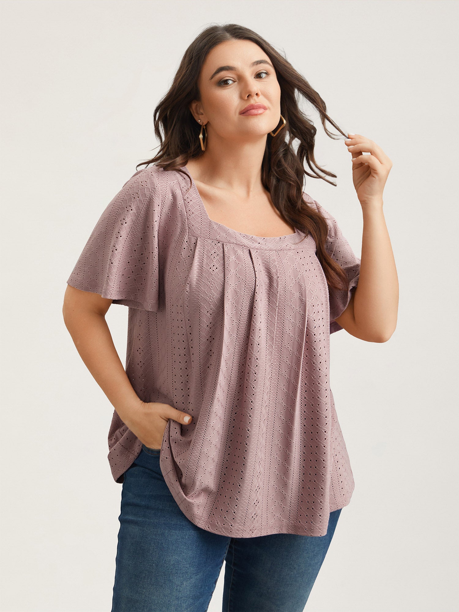 Textured Cut-Out Square Neck Shirt