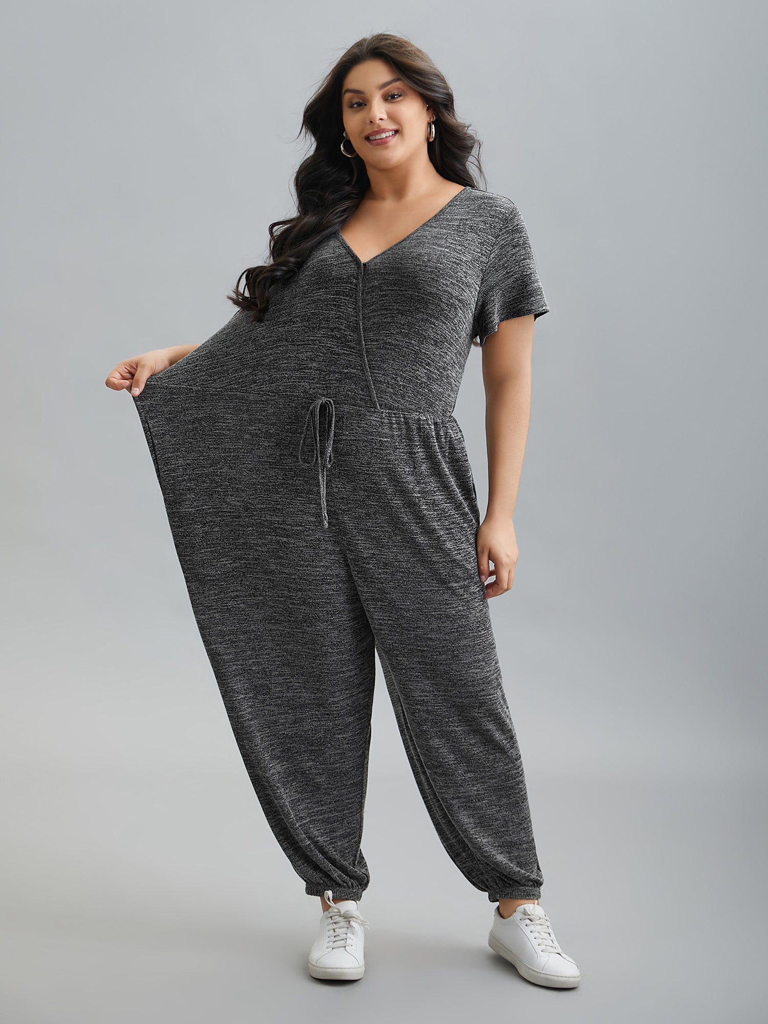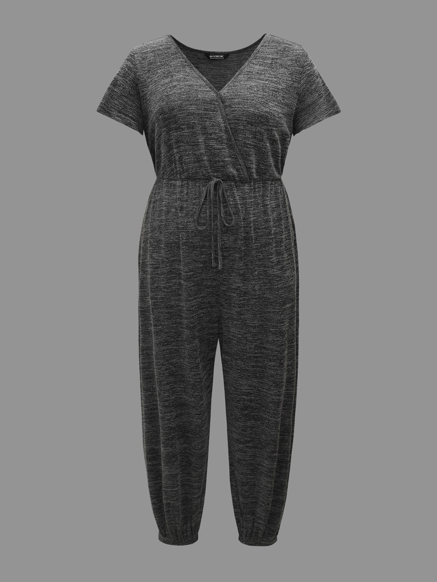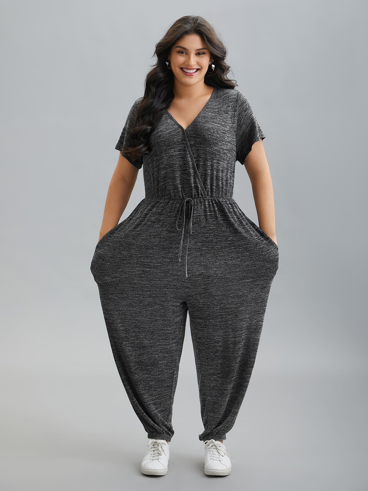 Plain Wrap Drawstring Pocket Jumpsuit