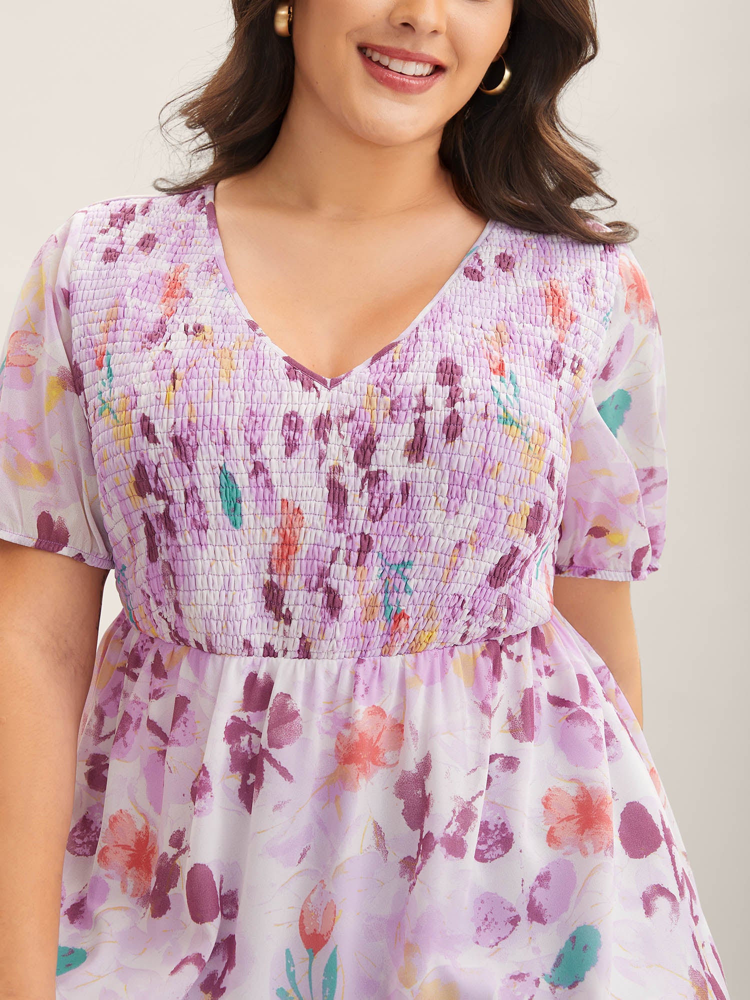 Silhouette Floral Print Patchwork Crossover Pocket Dress