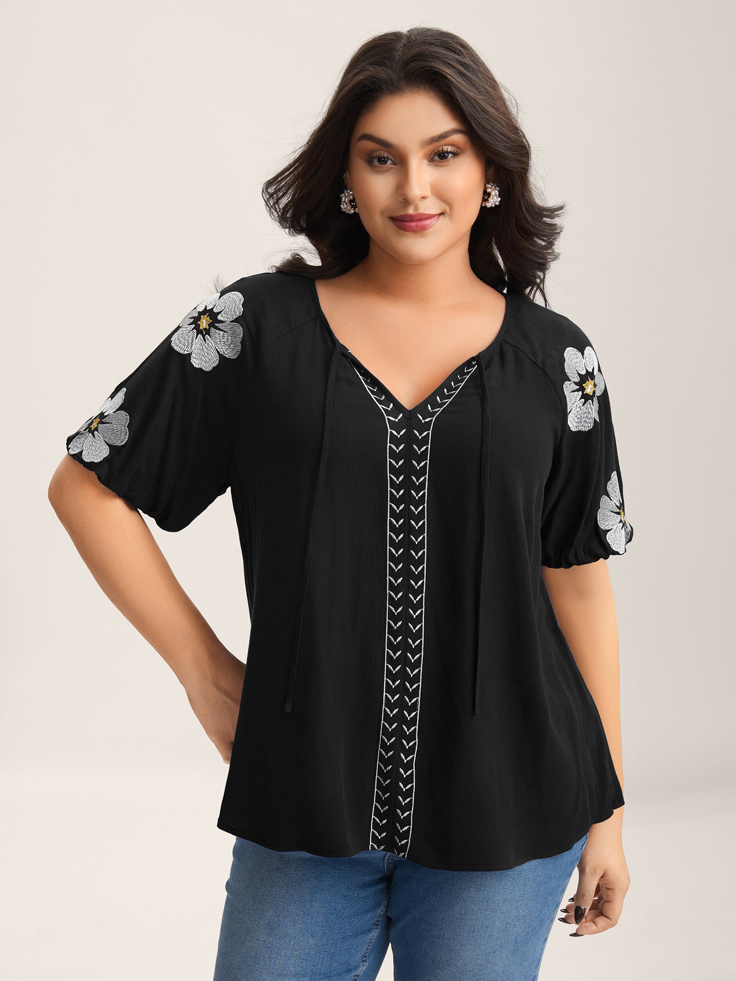Star Mesh Gathered Ruffle Sleeve Blouse