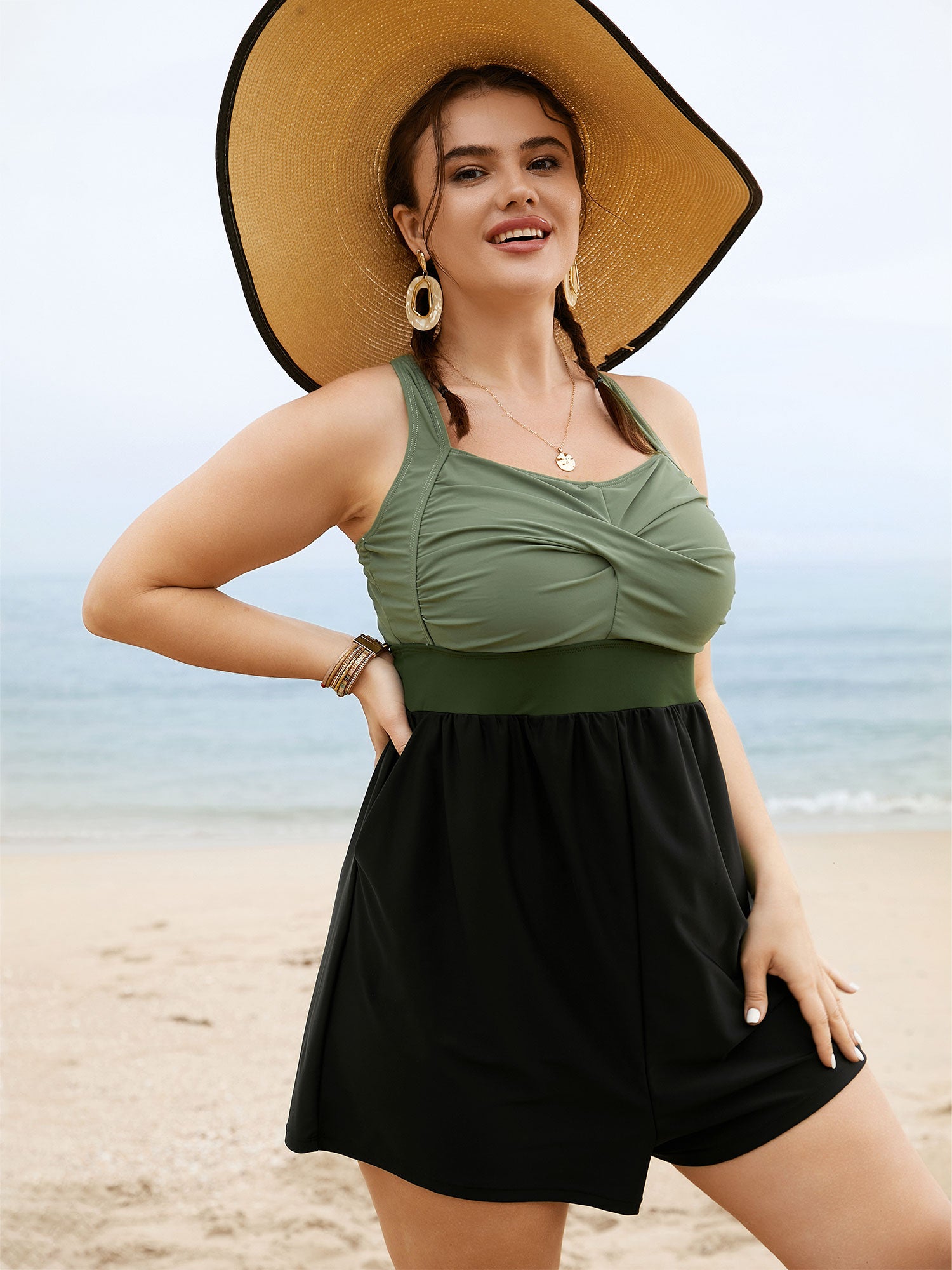 Patchwork Contrast Crossover One Piece Swimsuit