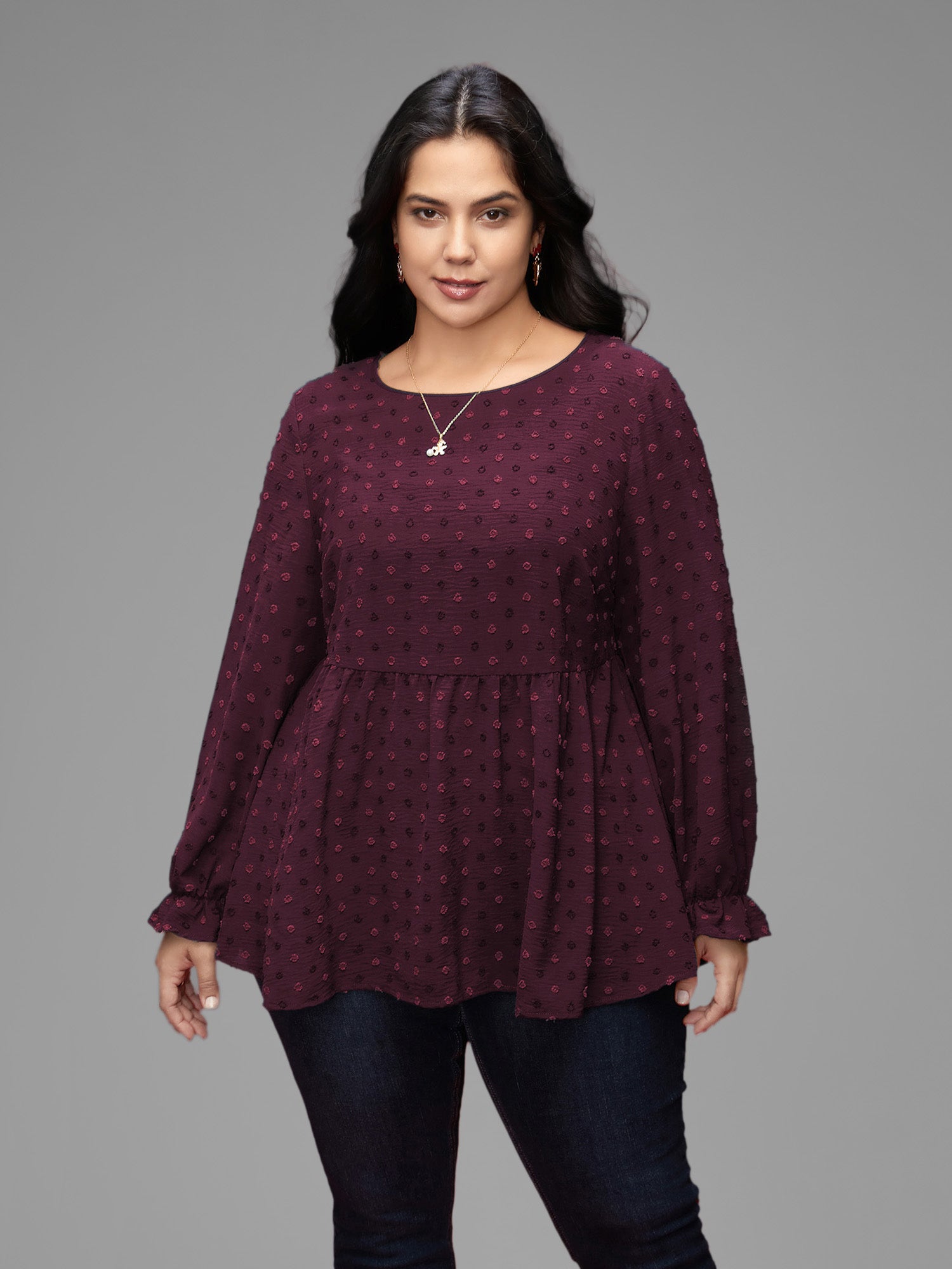 Text Pattern Ruffled Lantern Sleeve Blouse