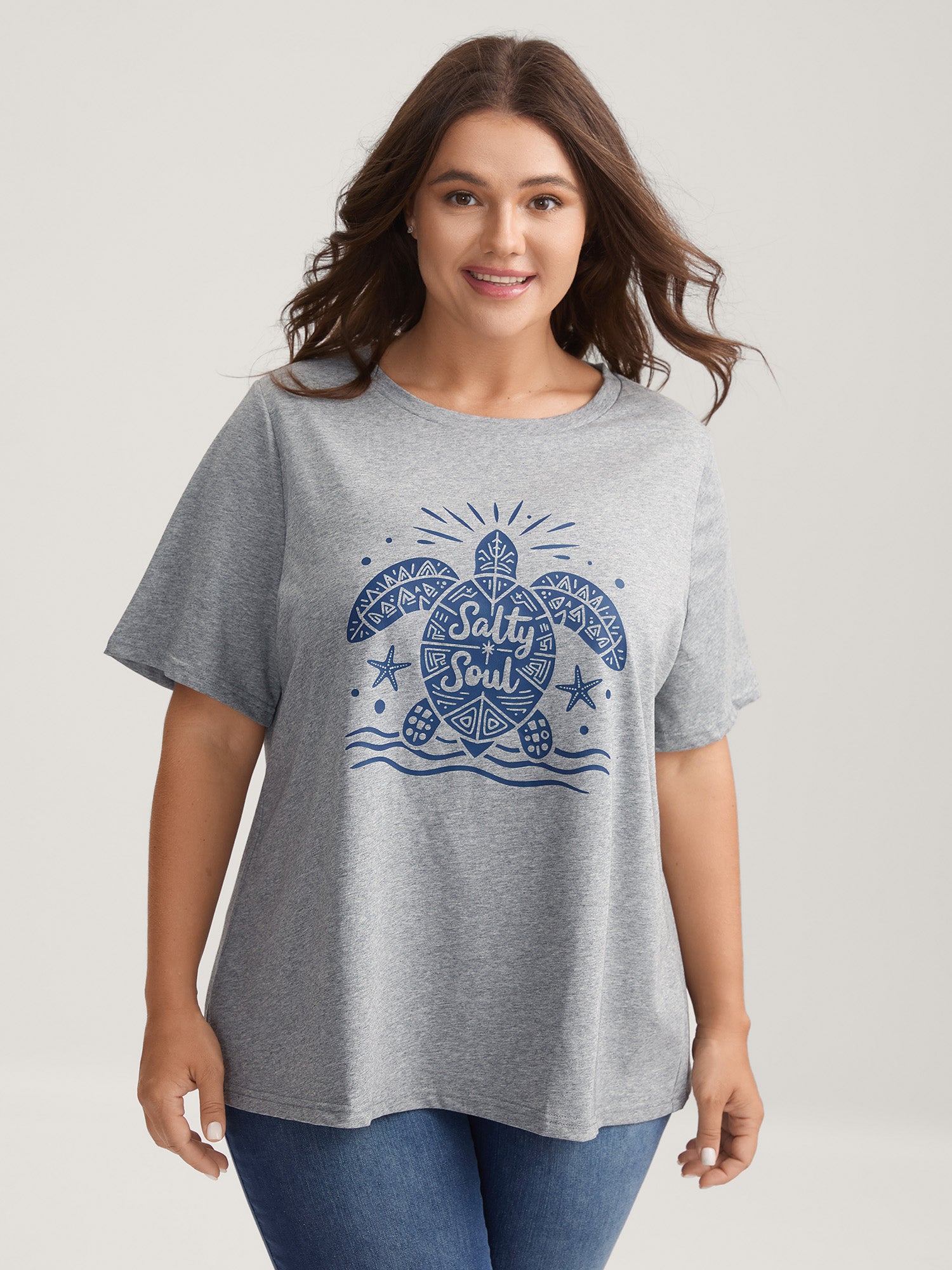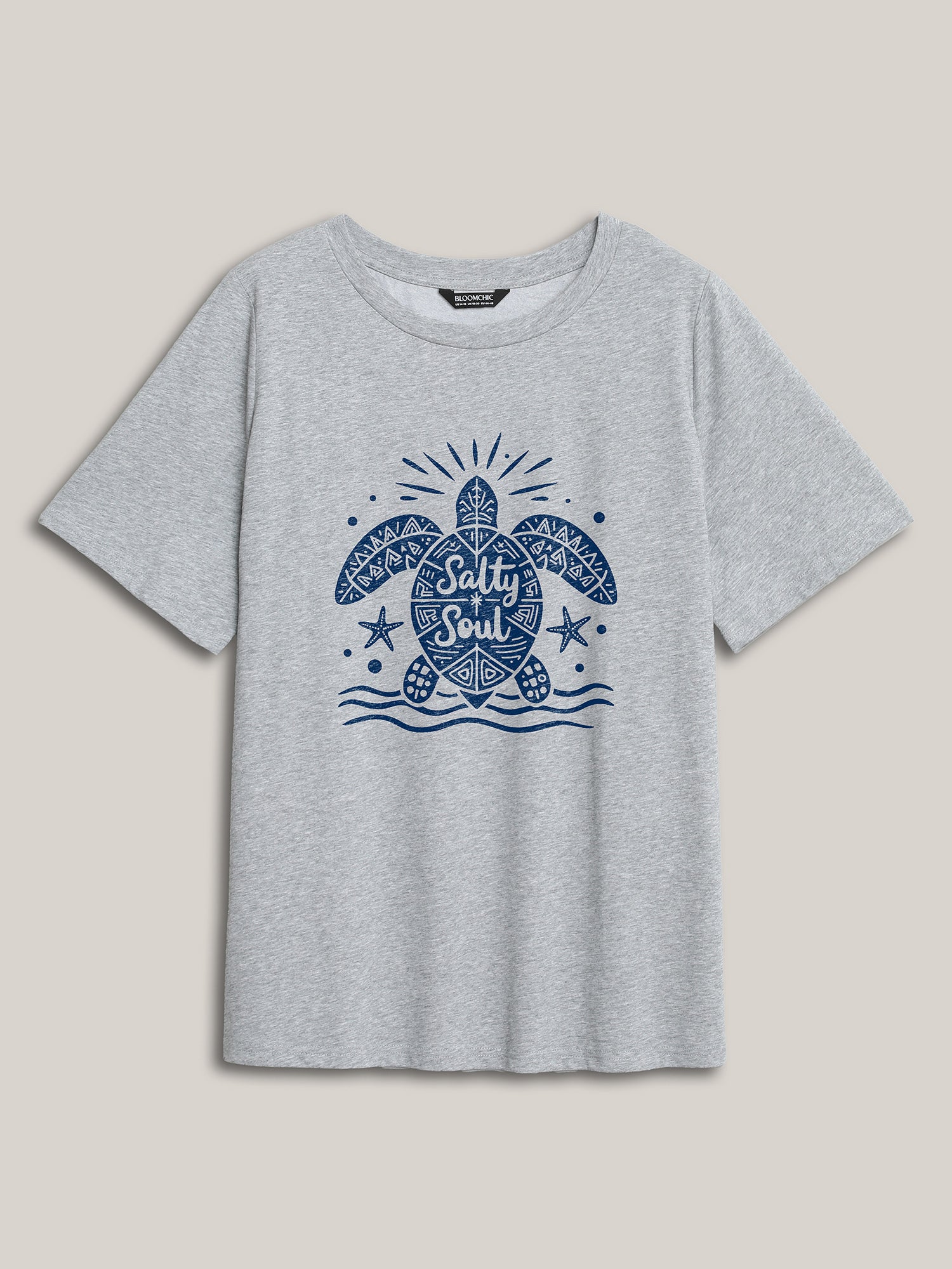 Stretchy Floral Lotus Sleeve V-Neck T-Shirt