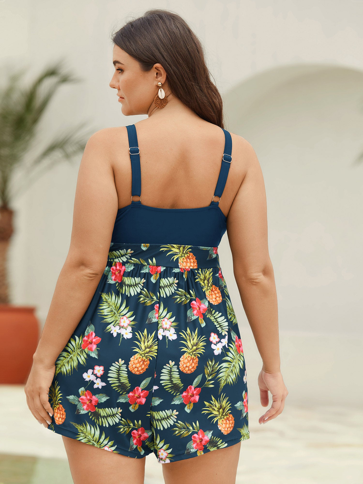 Ruffled Floral Print Stretchy-Waist Midi Dress