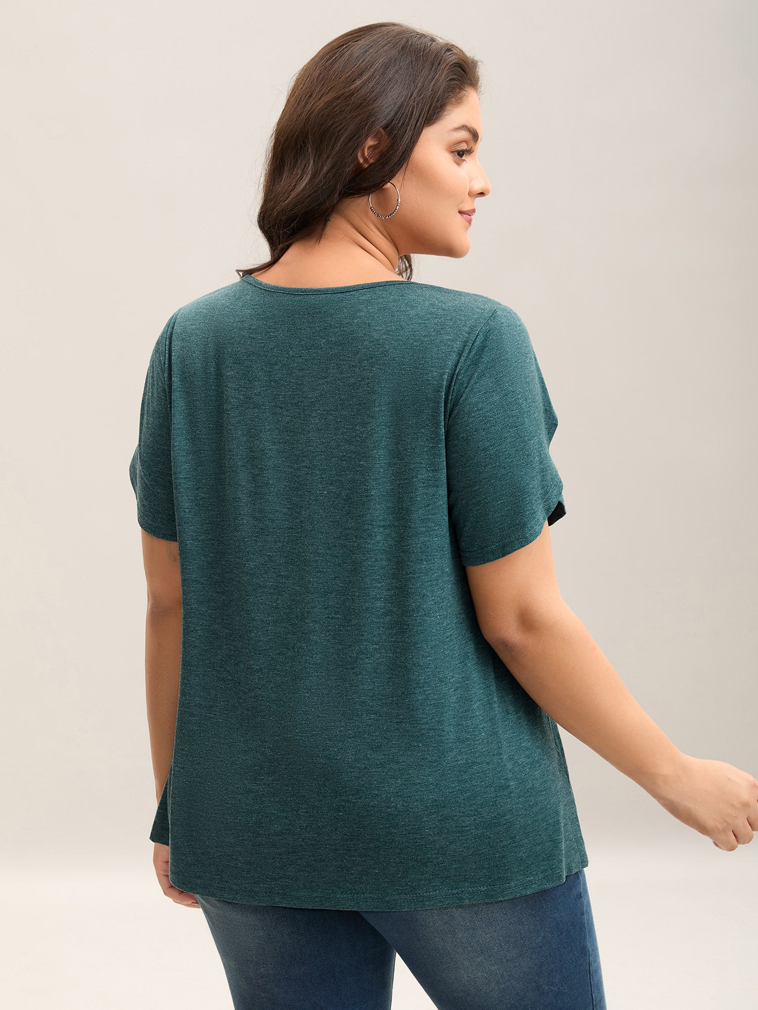 Supersoft Stretchy Scalloped Neck Solid T-Shirt
