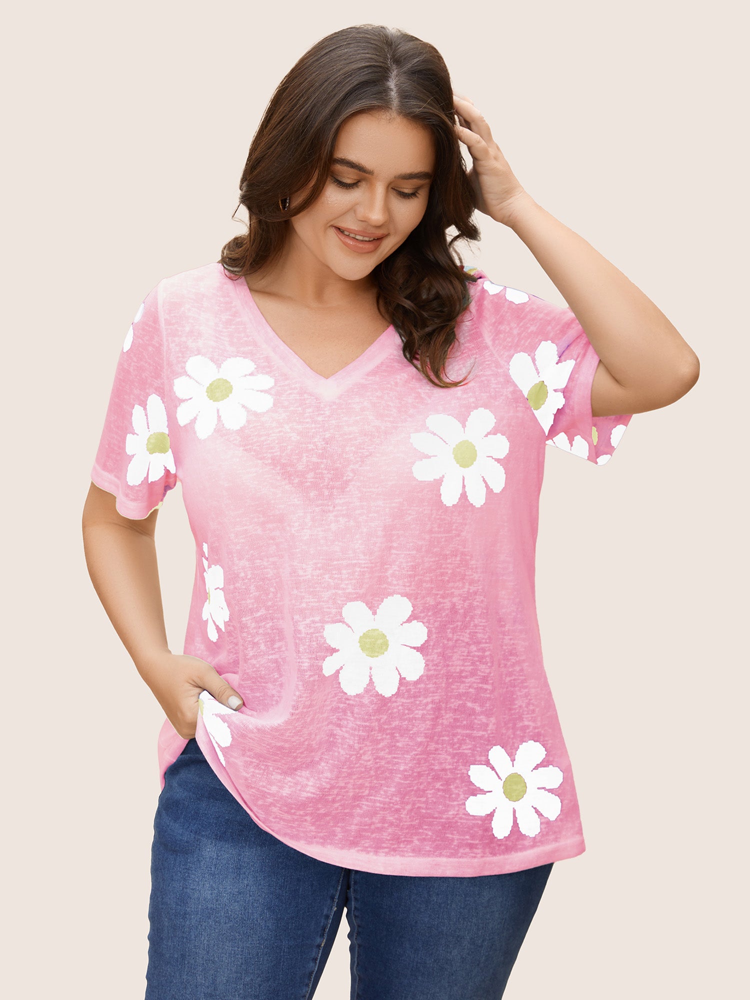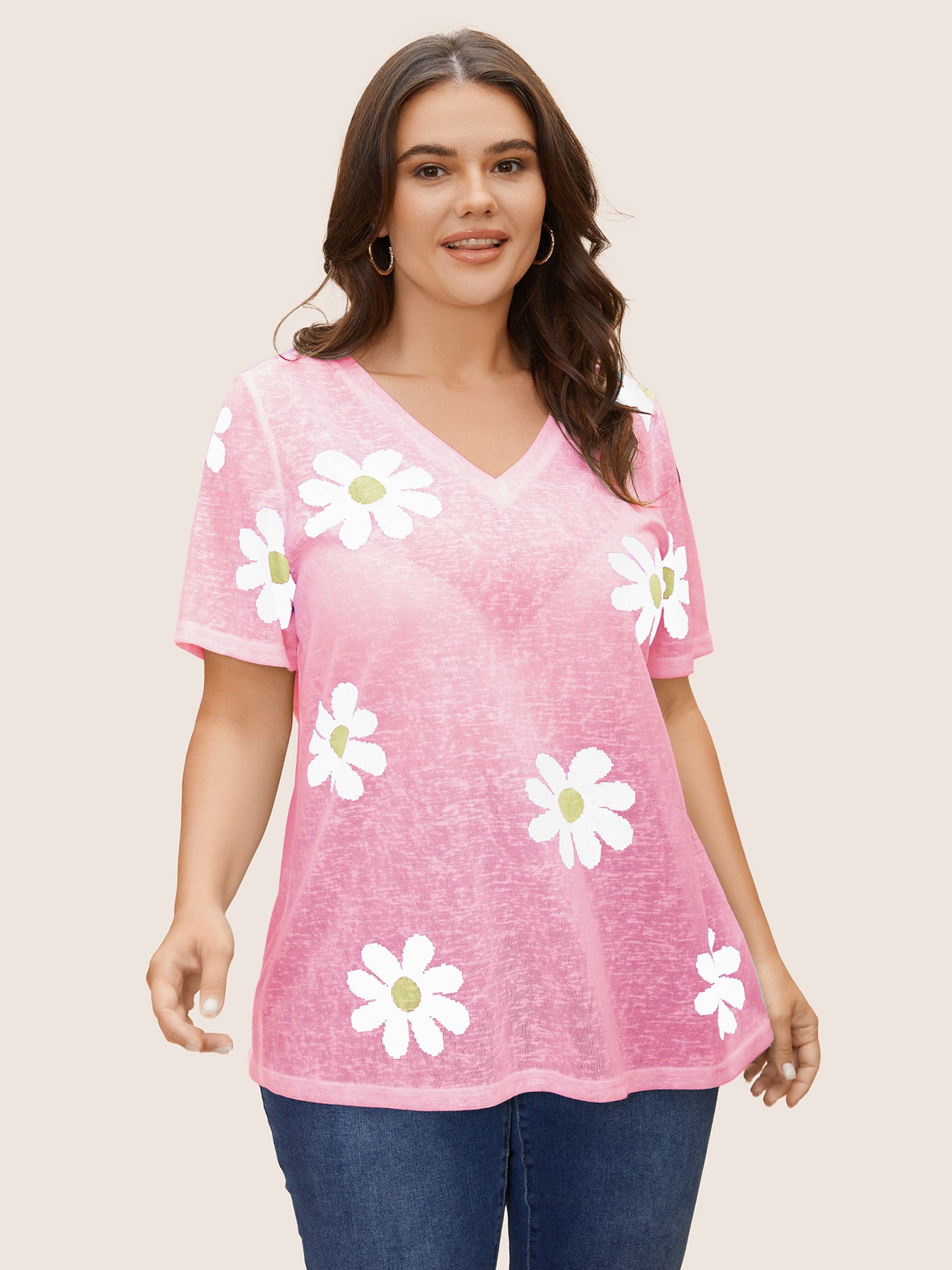 Stretchy Feather Print Cut-Out Sleeve T-Shirt