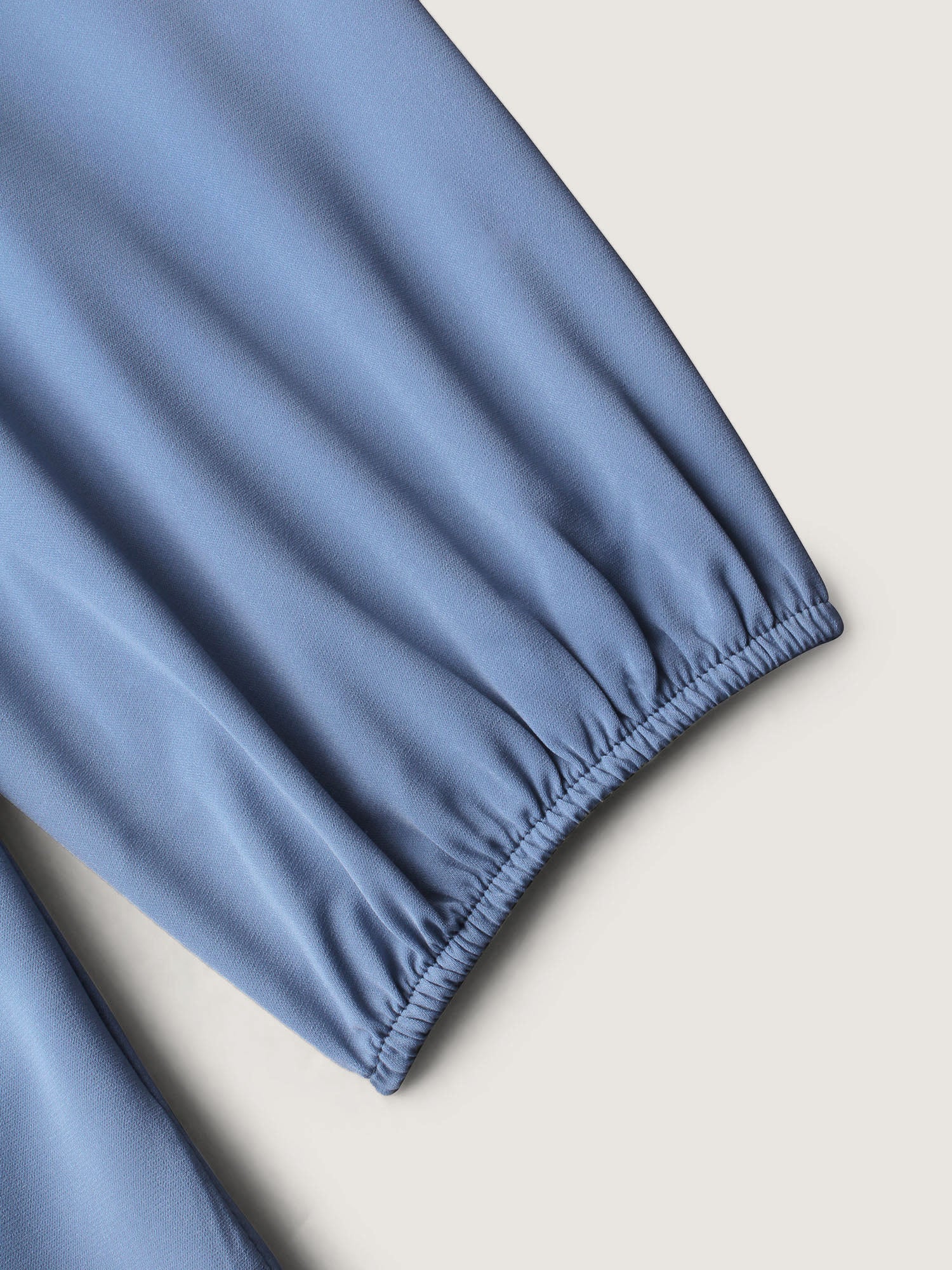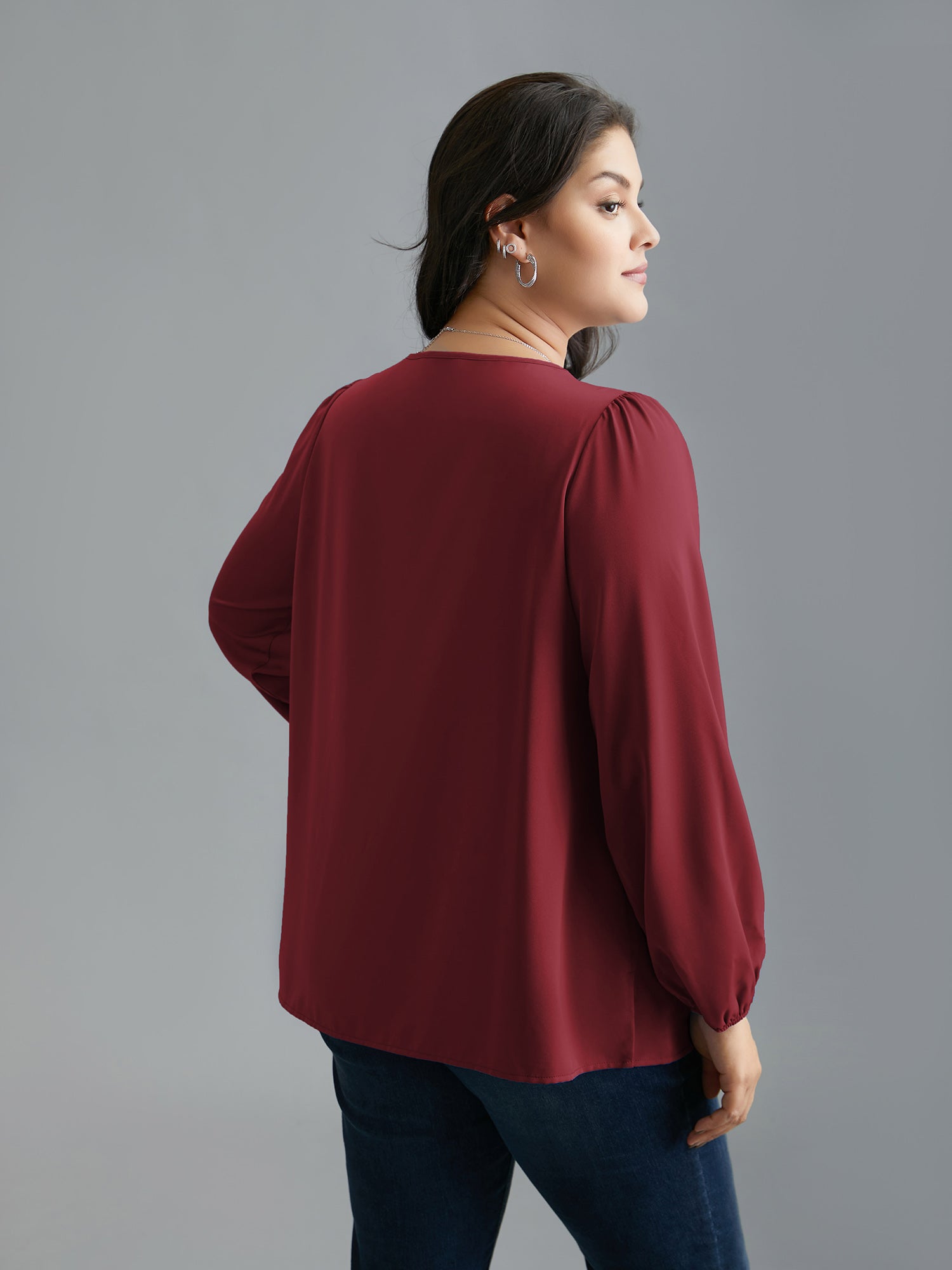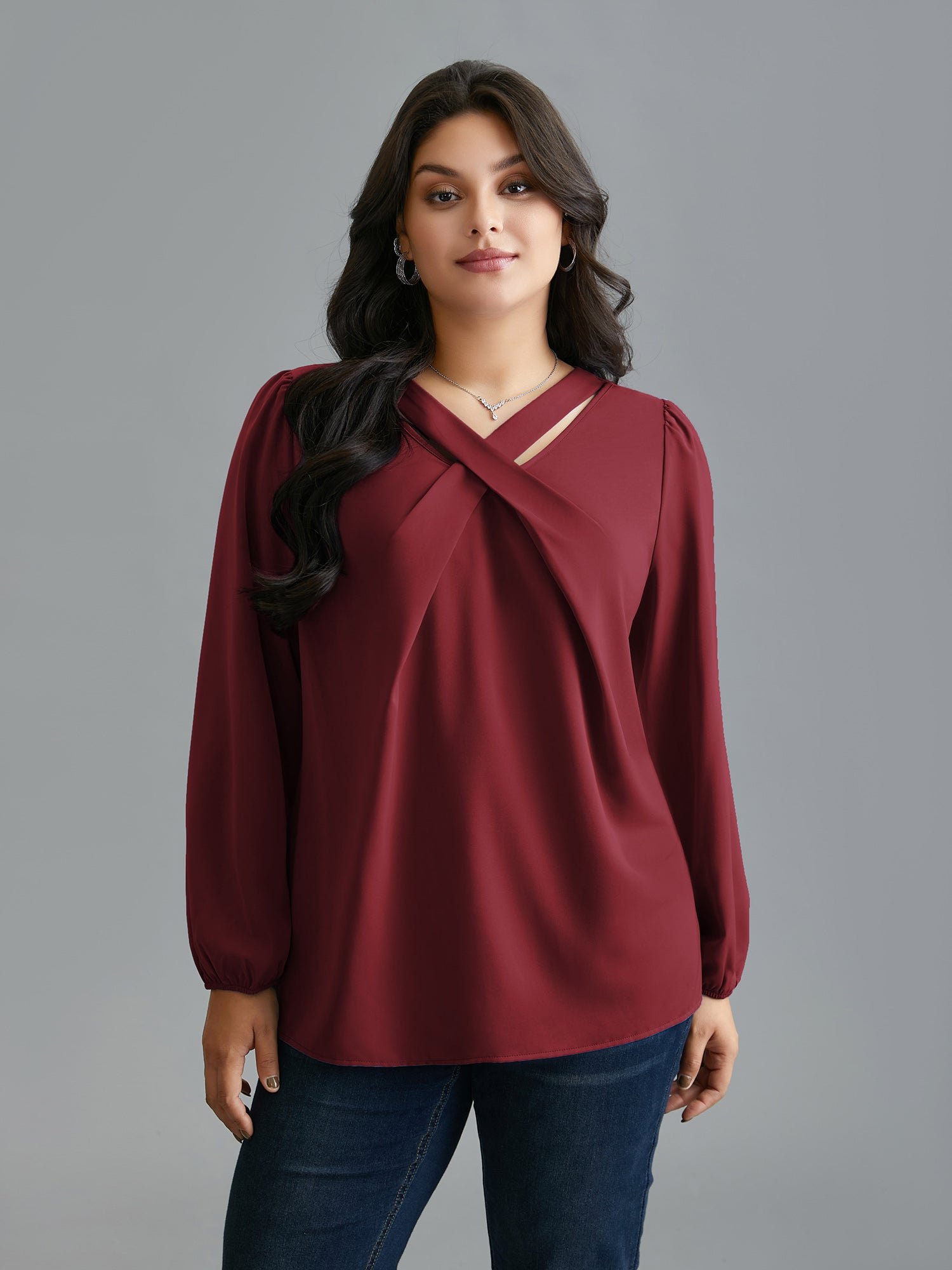 • Criss Cross Neckline Puff Sleeve Gathered Blouse