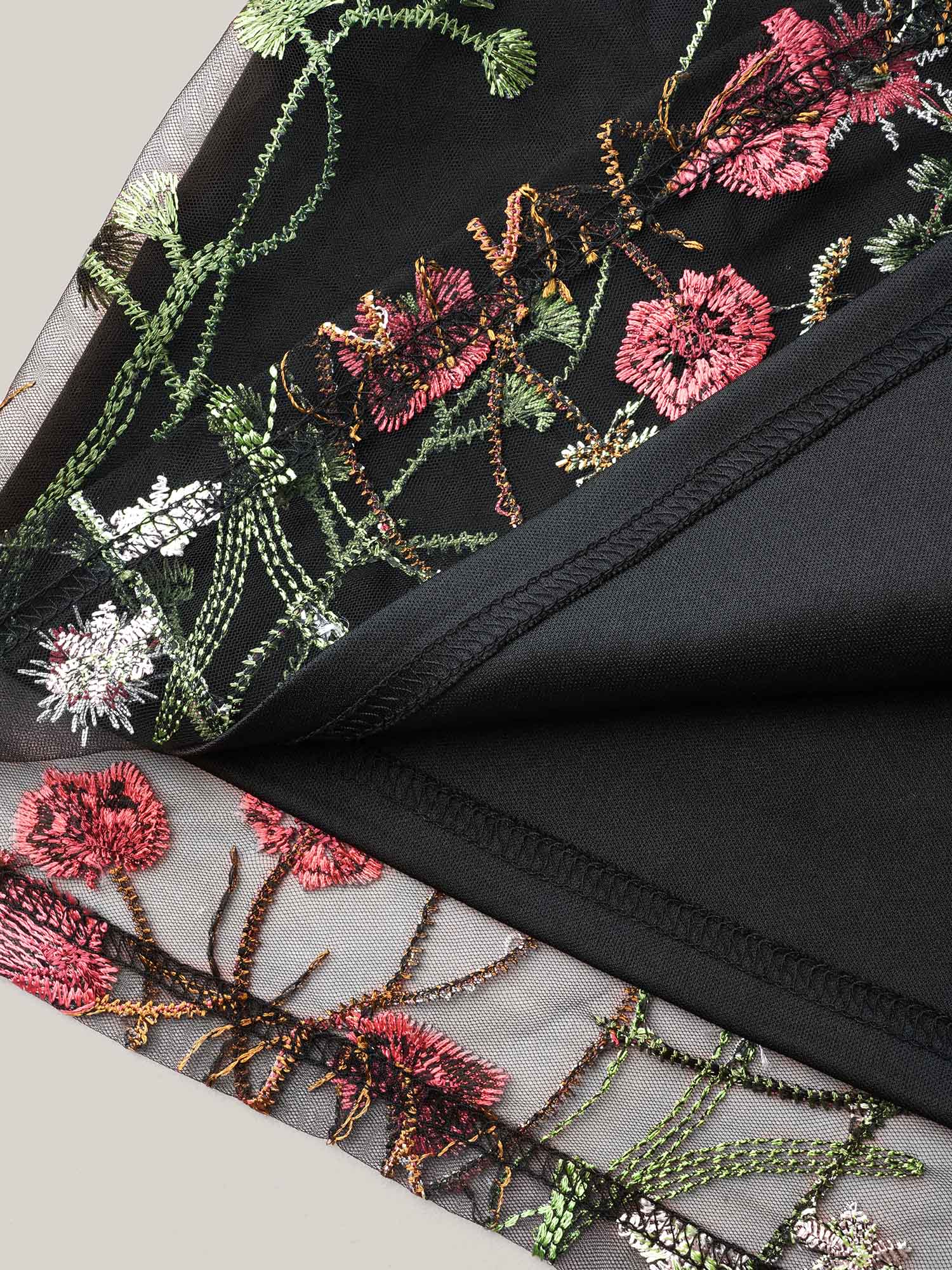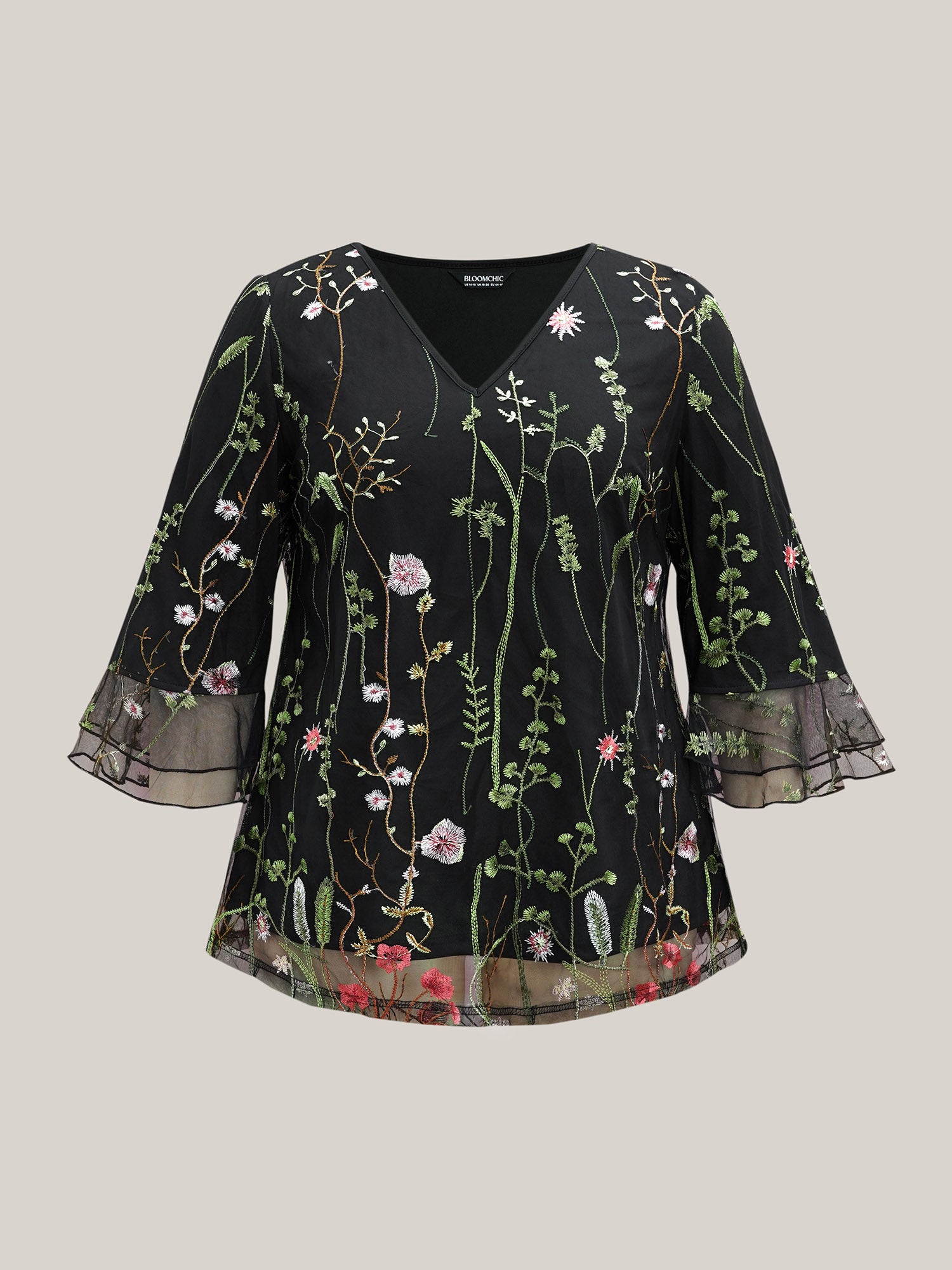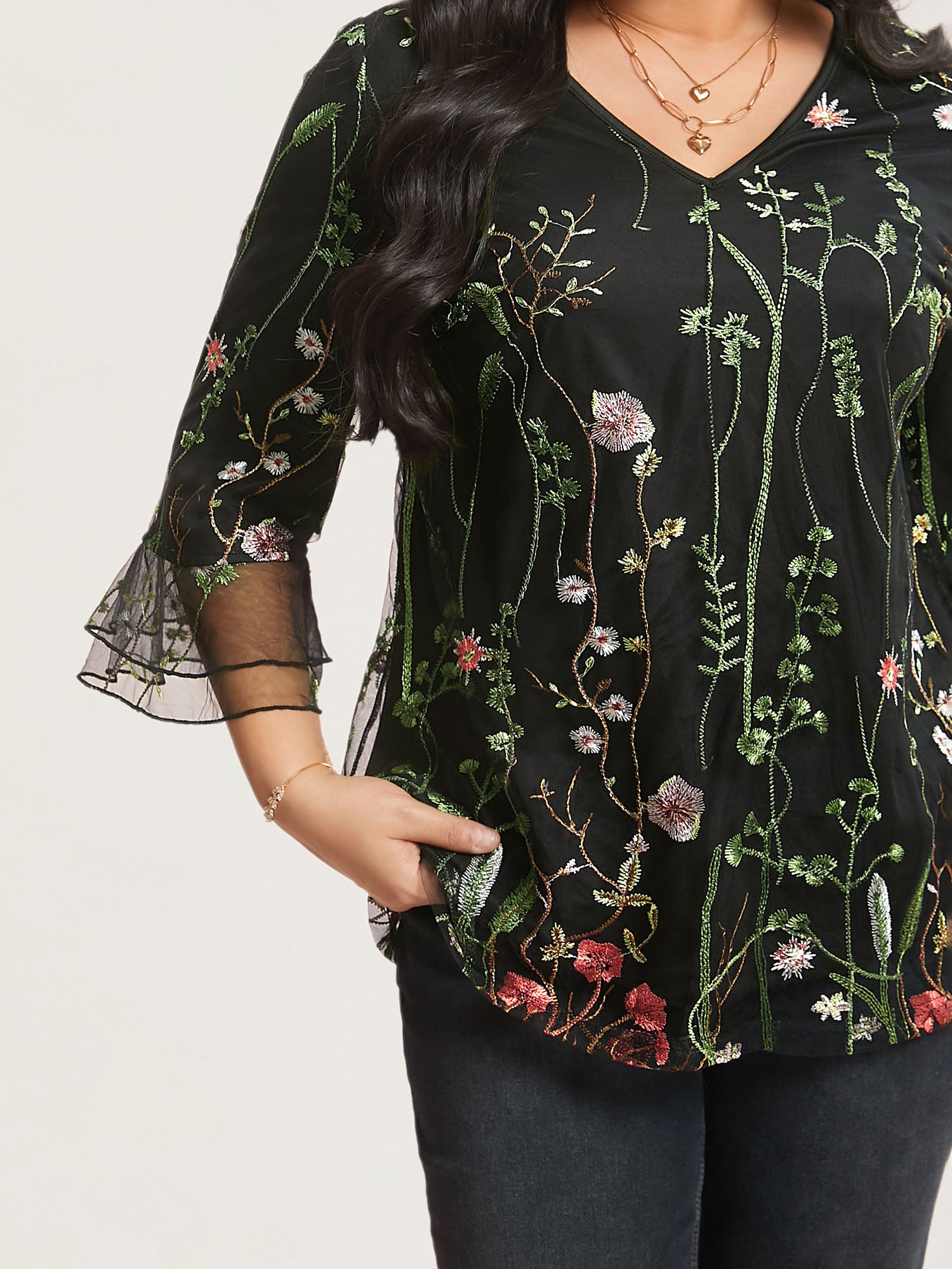 Embroidered Mesh Lotus Leaf Sleeve Blouse