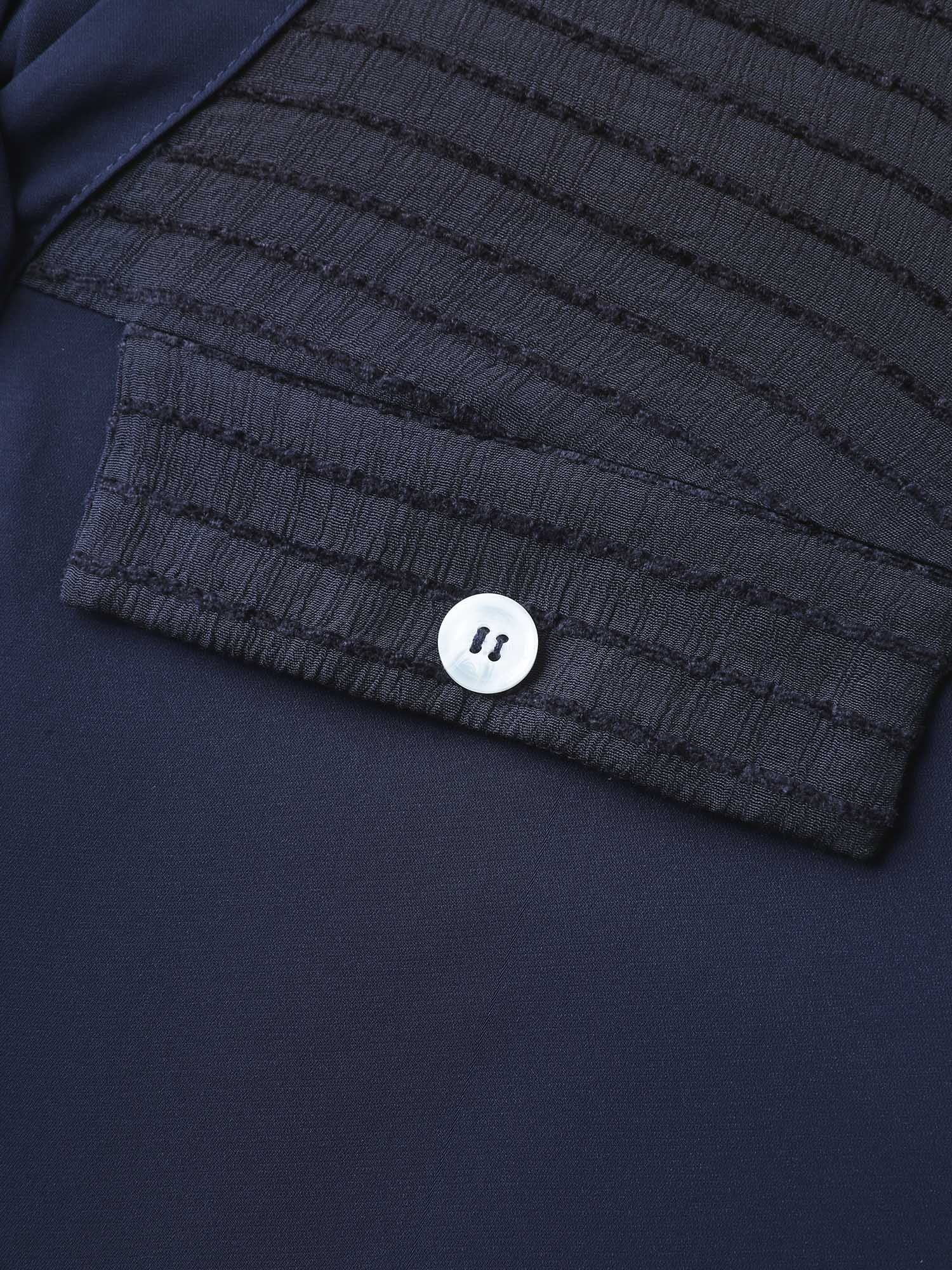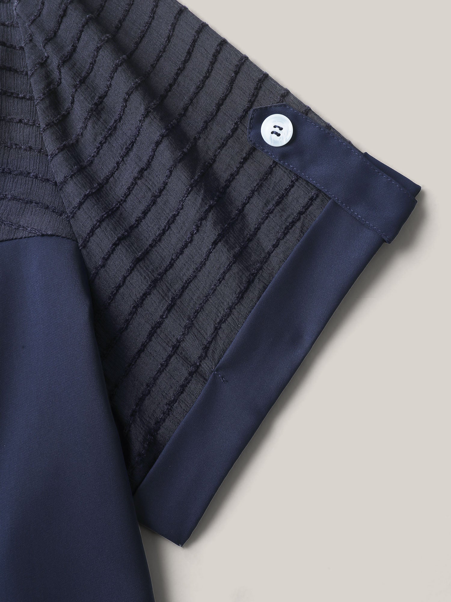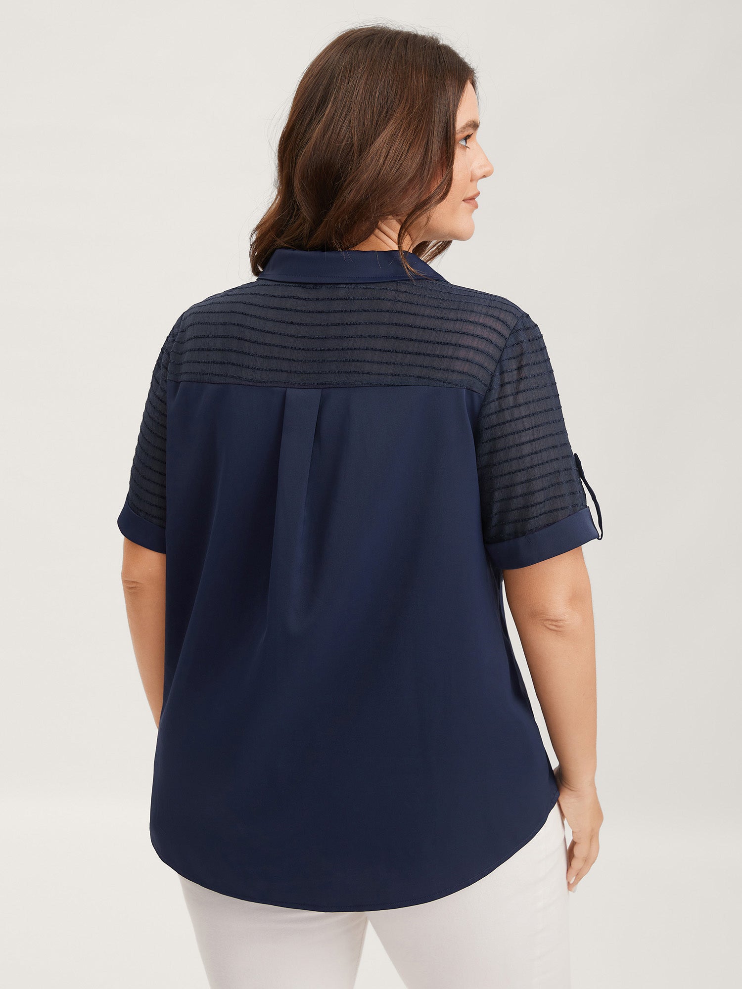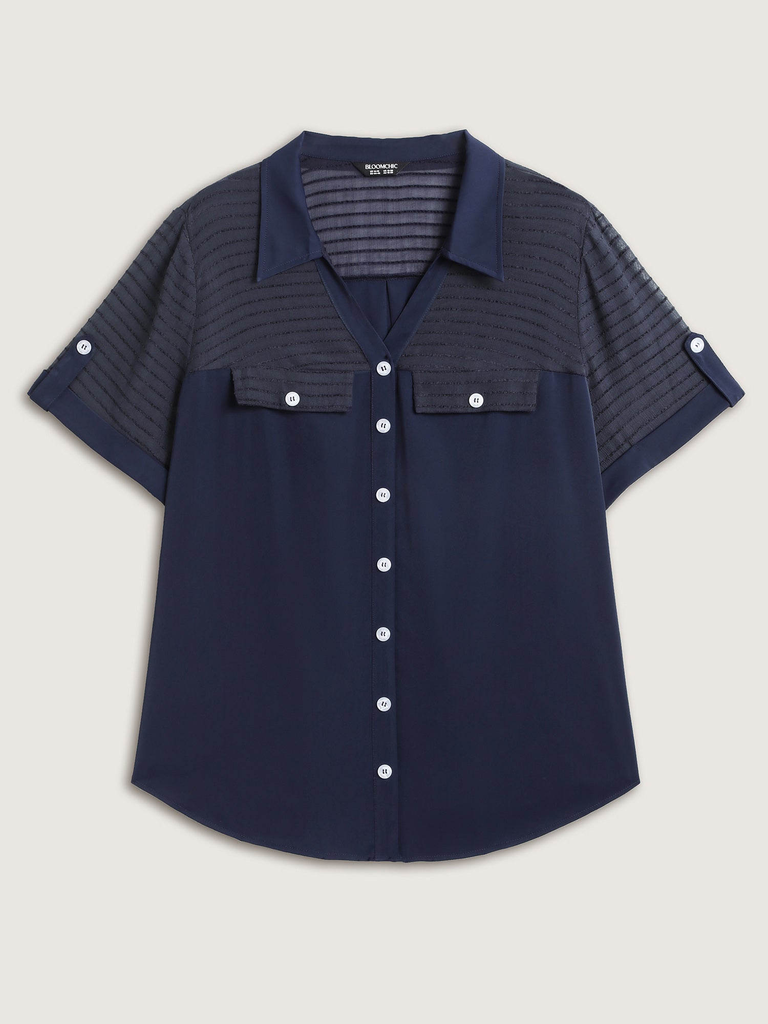 Sheer Neck Collar Tab Sleeve Blouse