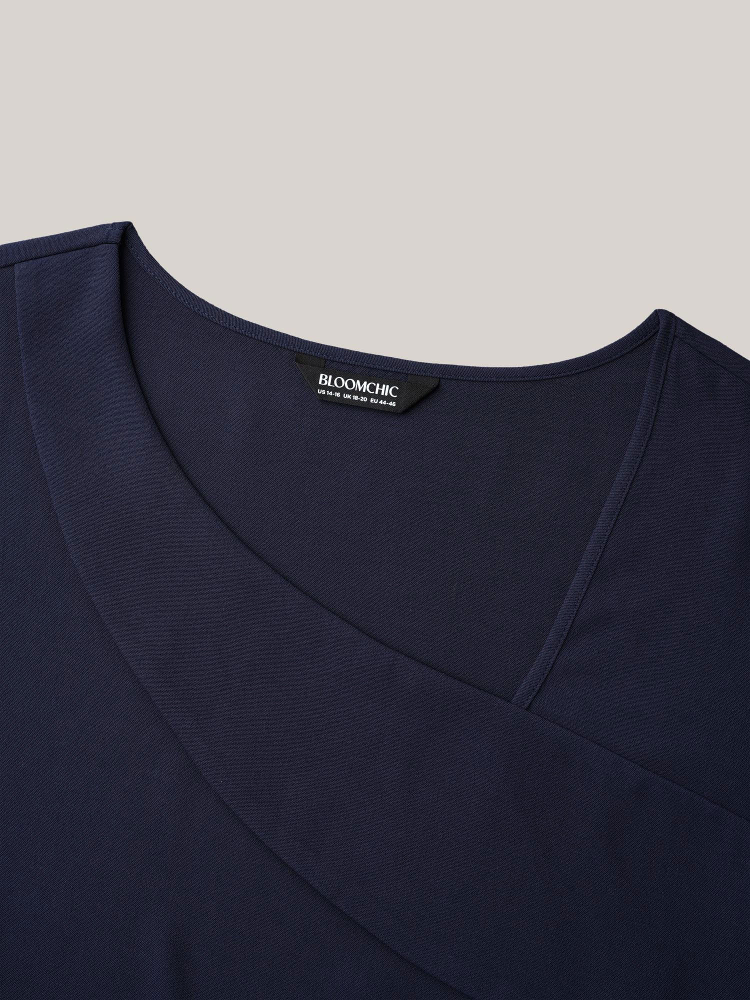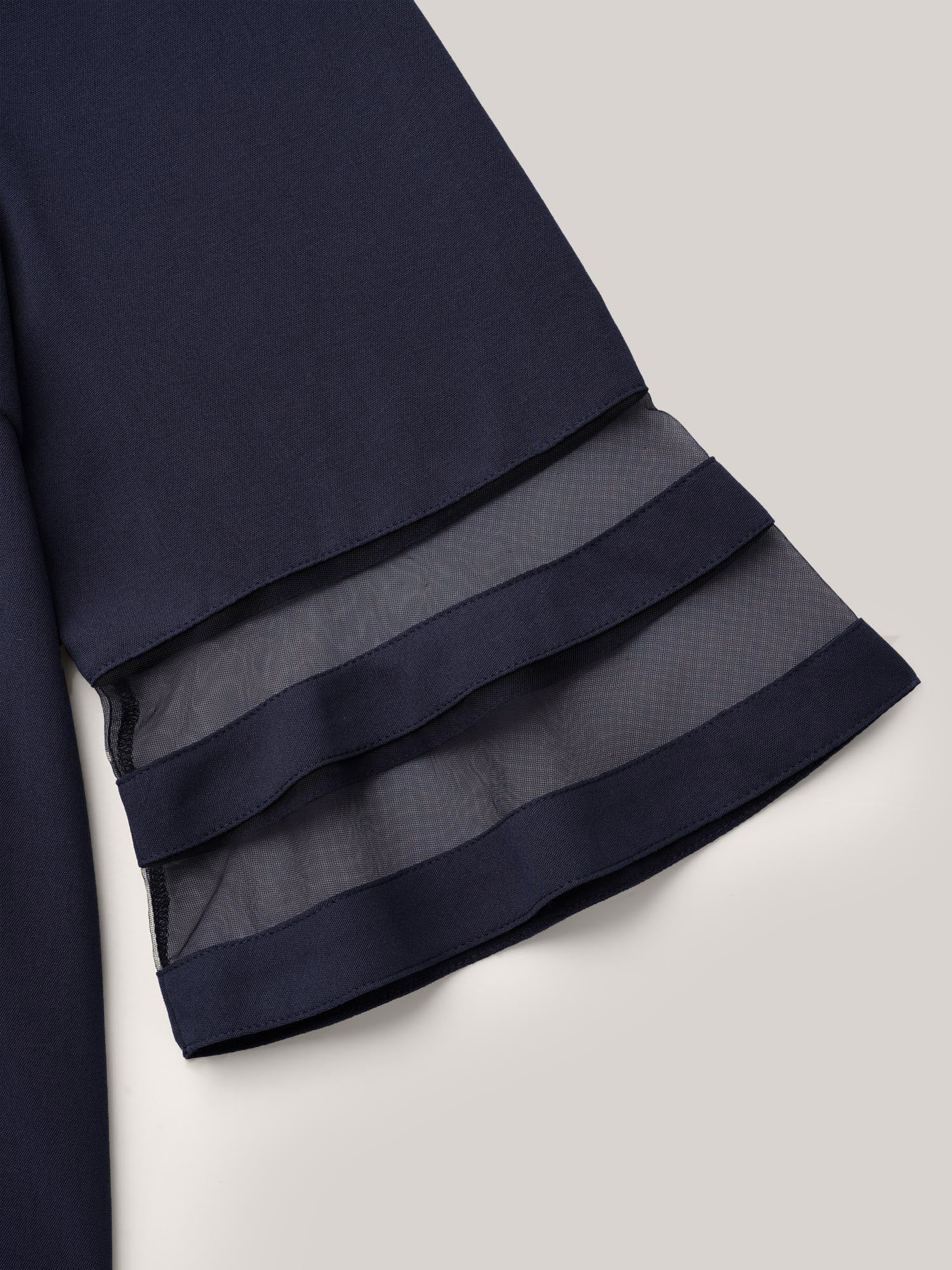 Sheer Sleeve Patchwork Asymmetrical Neckline Blouse