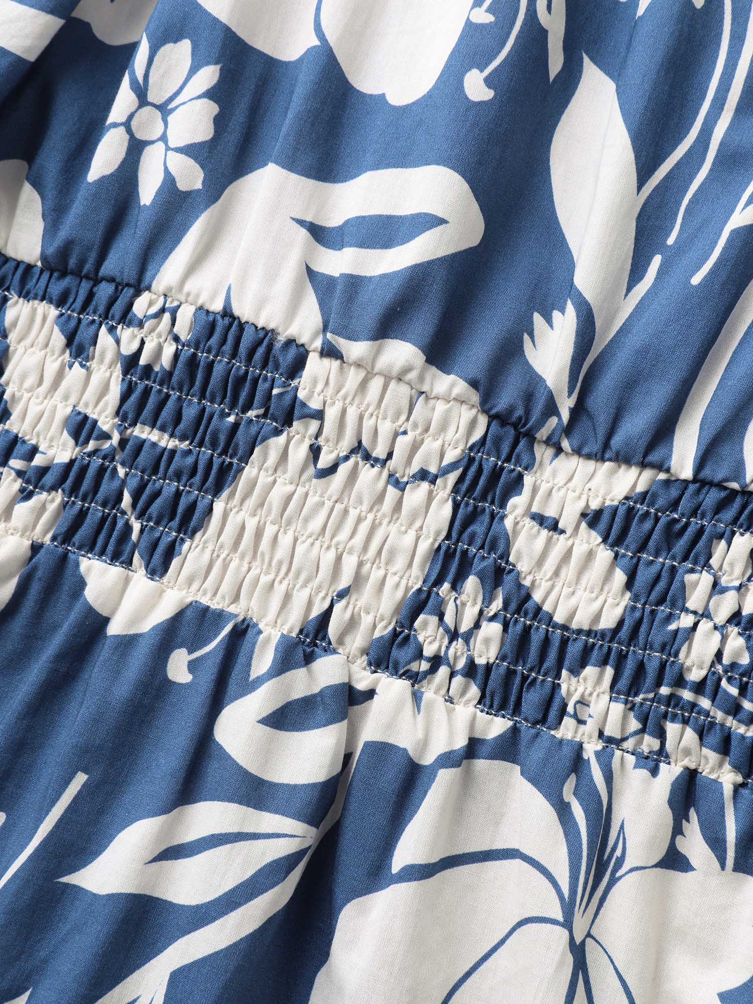 Cotton Silhouette Floral Print Shirred Waist Blouse