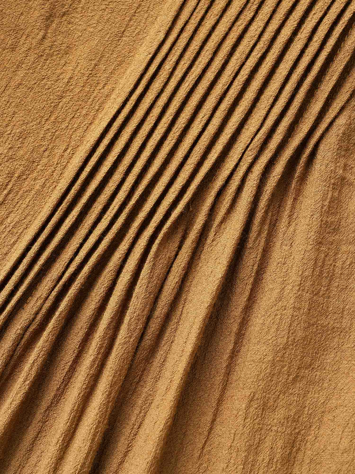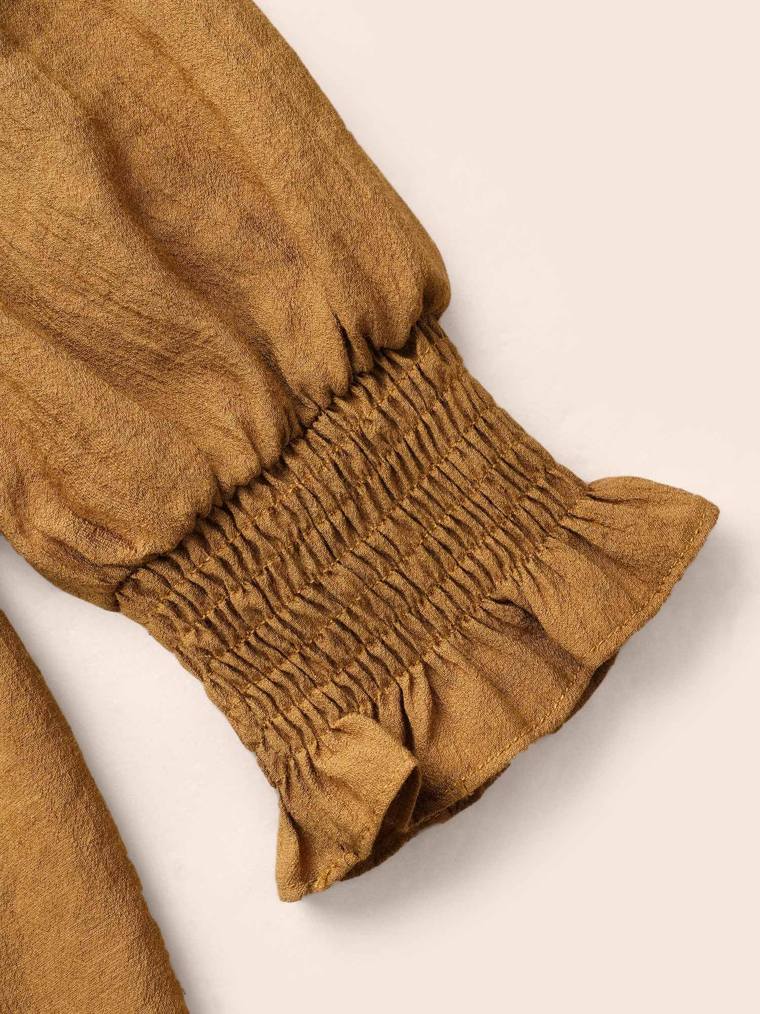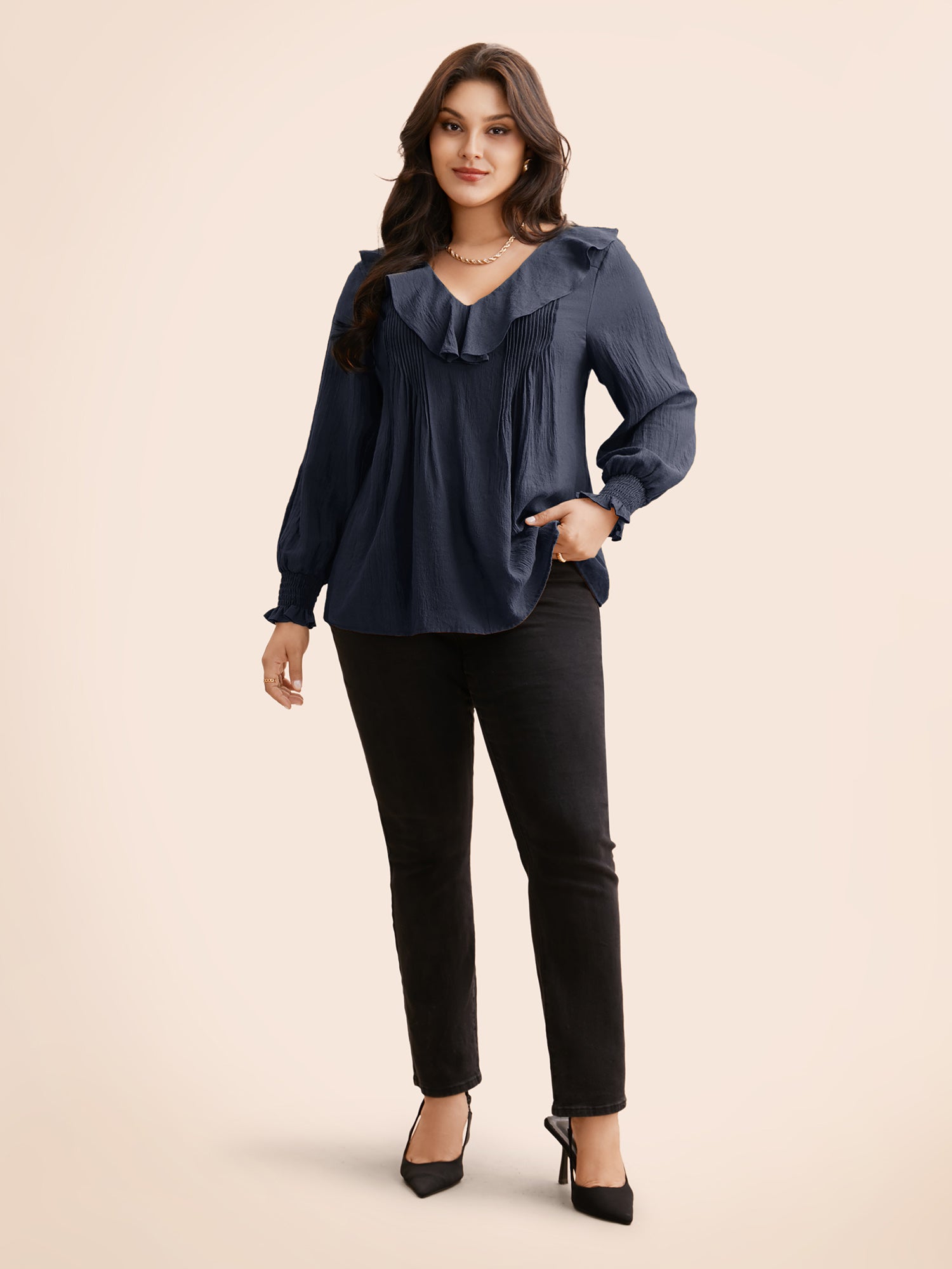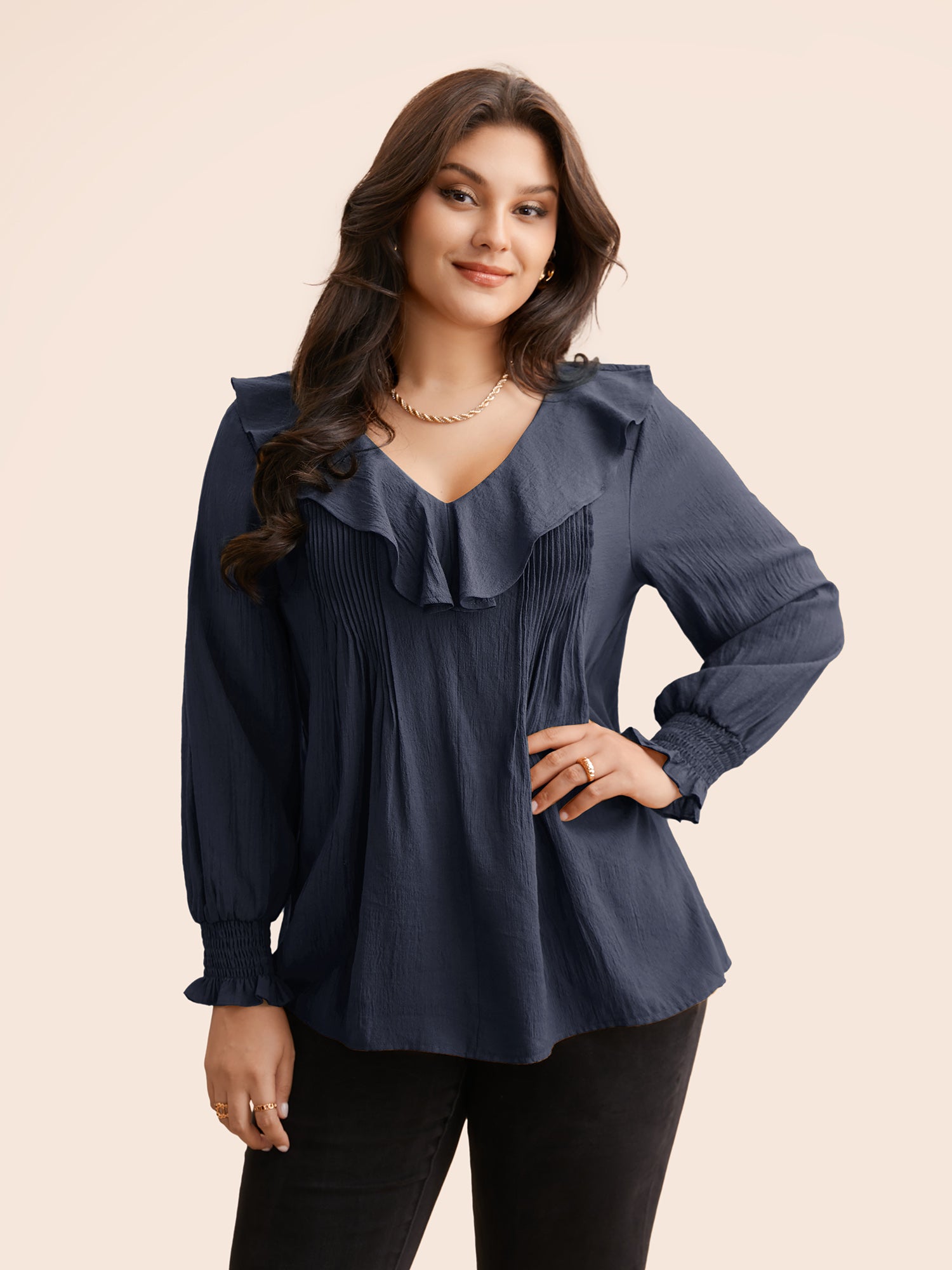 Solid Texture Pleated Ruffle Trim Blouse