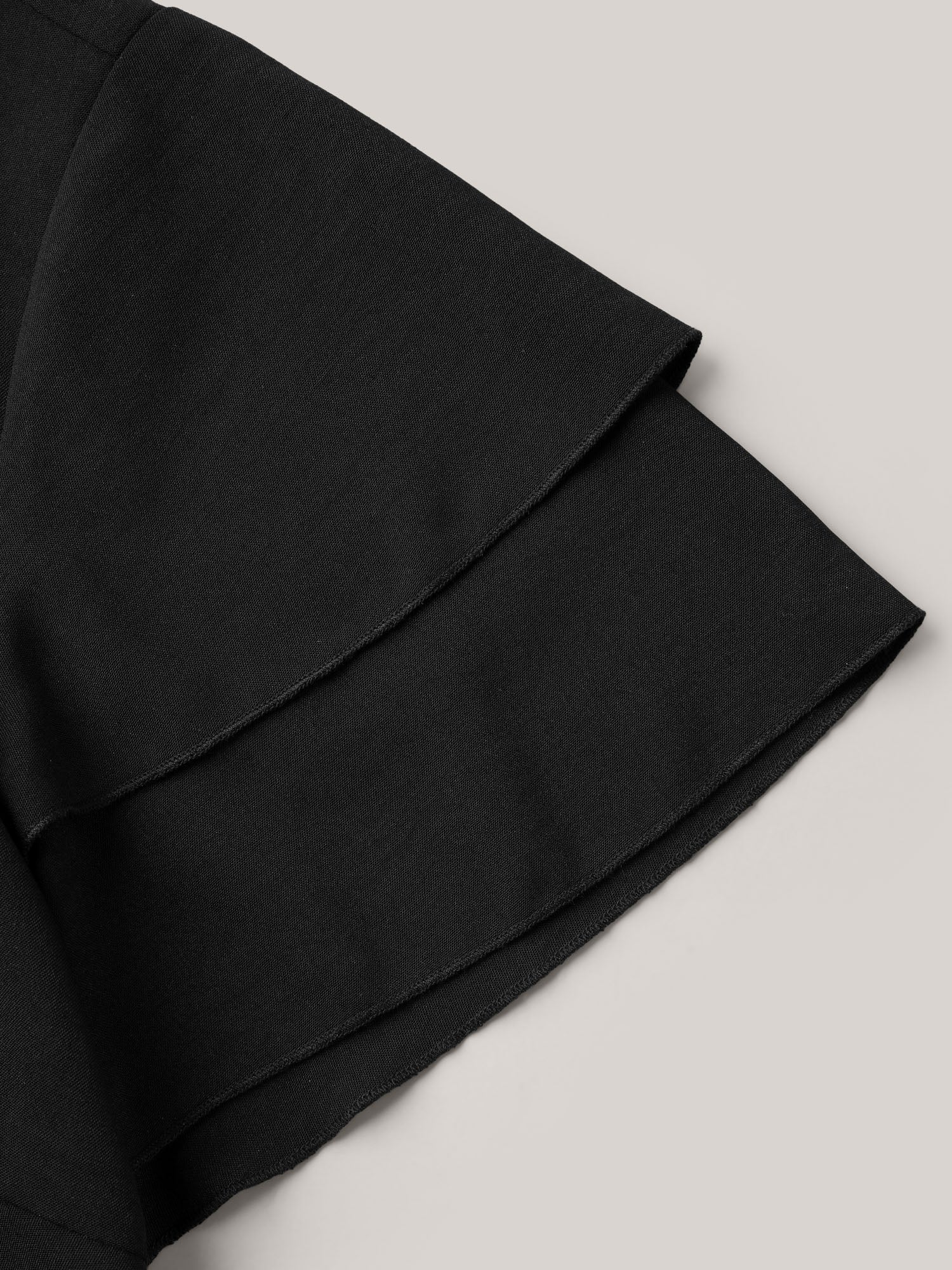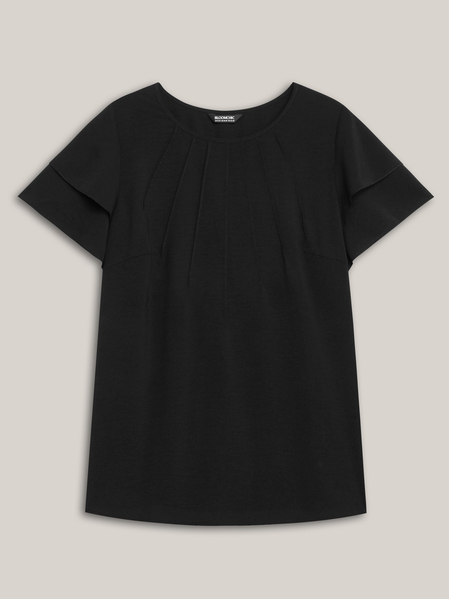 Toothpick Pleat Layered Flutter Sleeve Blouse
