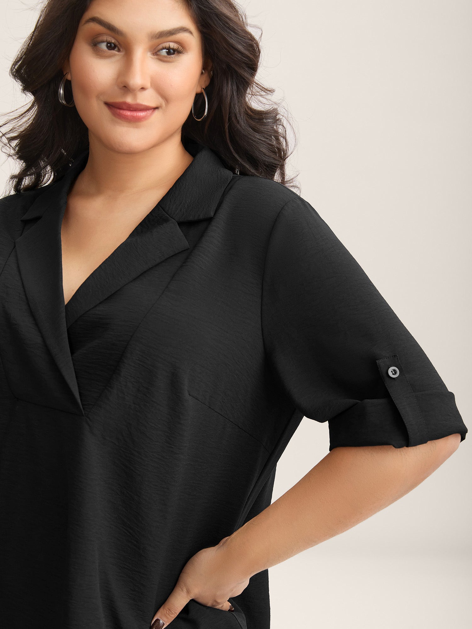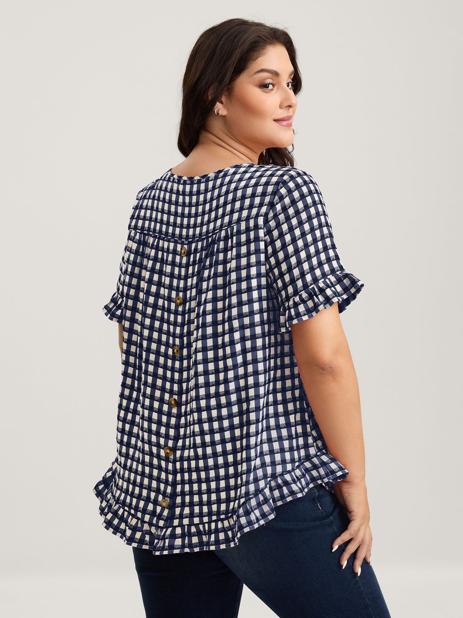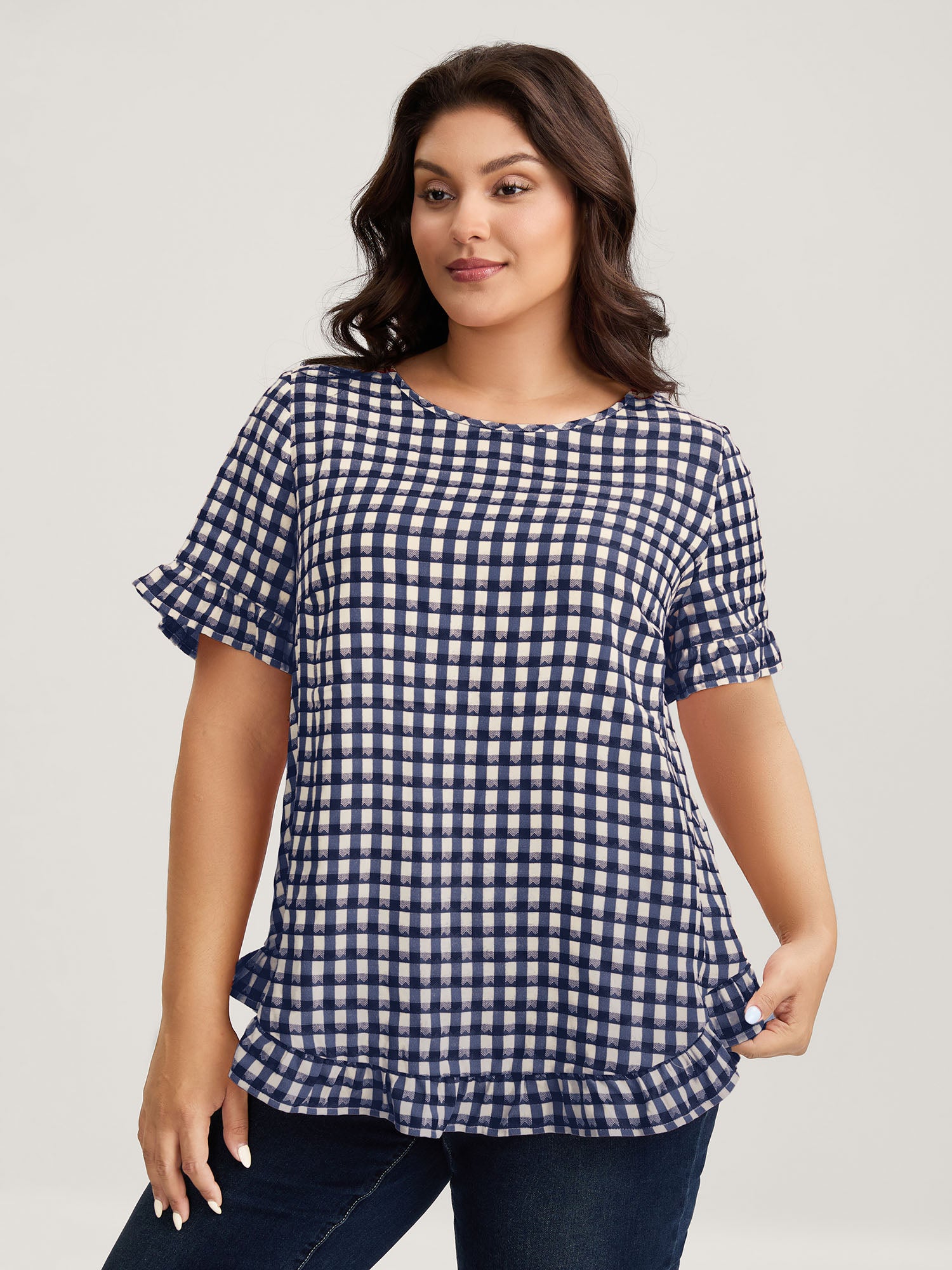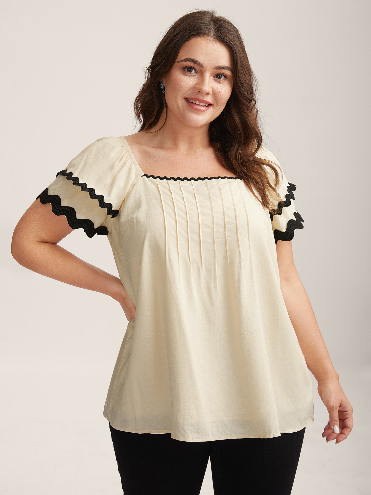 Solid Frill Trim Ruched Elastic Waist Blouse