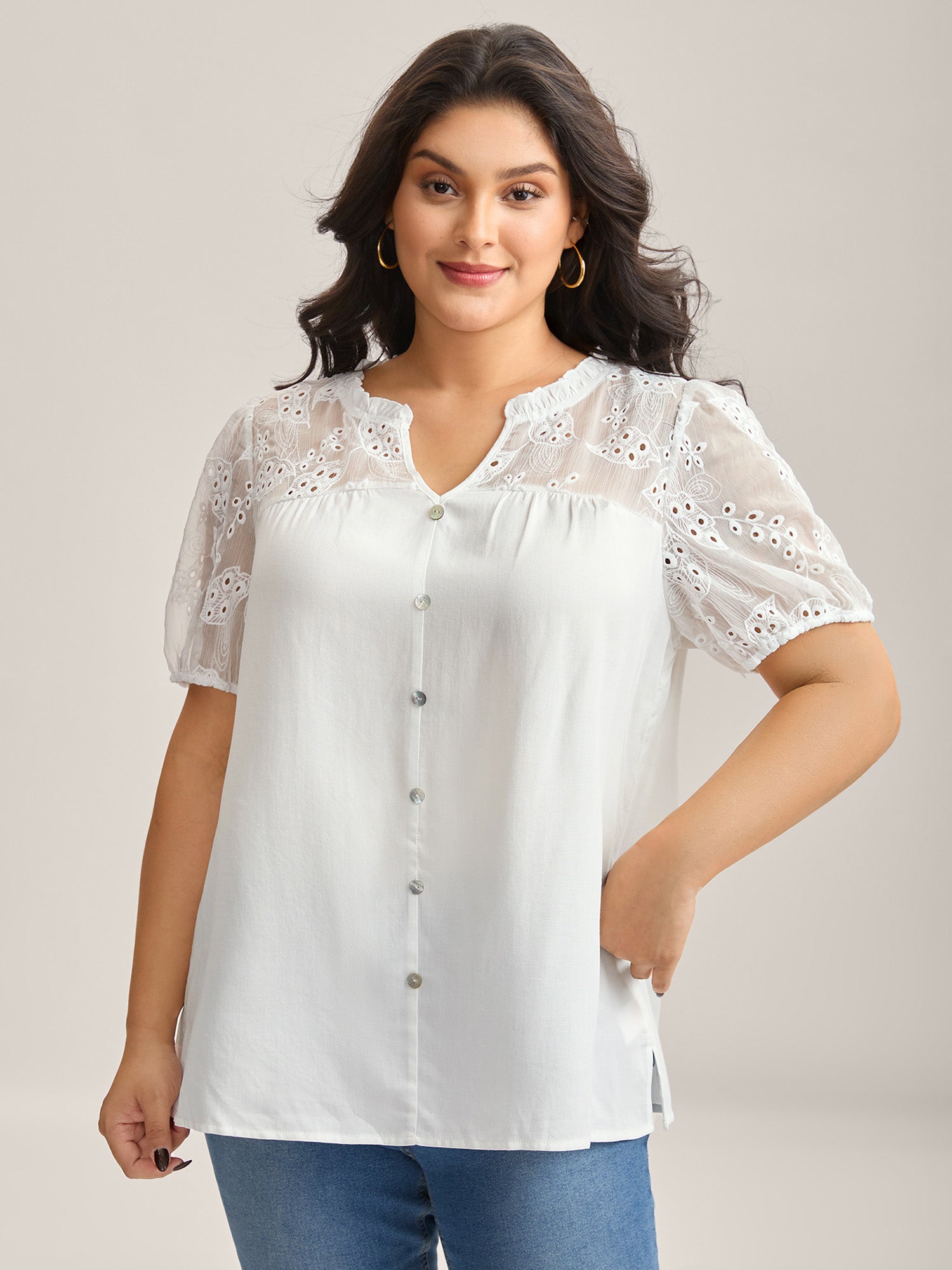 Star Mesh Gathered Ruffle Sleeve Blouse