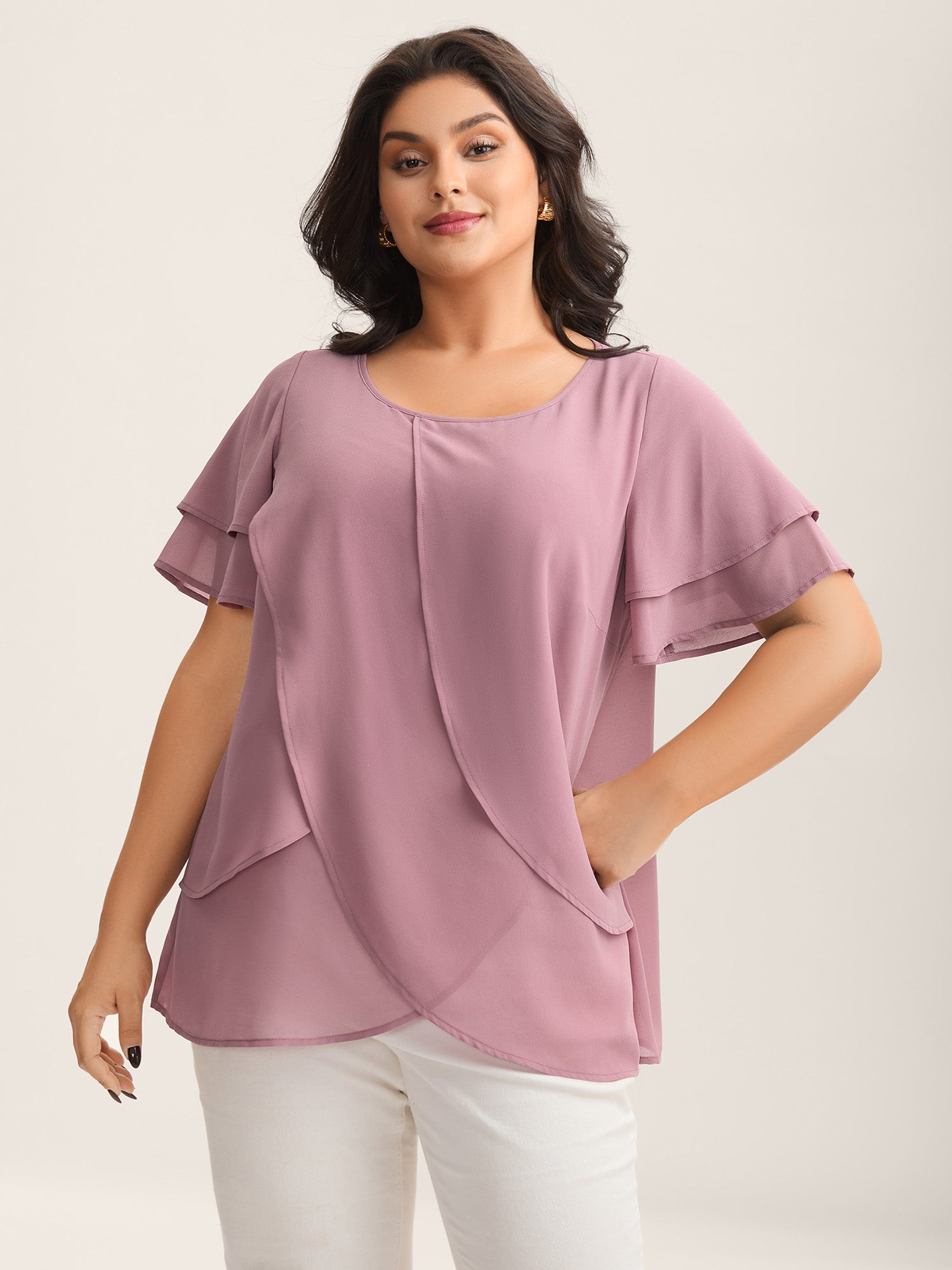 Delicate Florals Ruffled Tiered Sleeve Blouse
