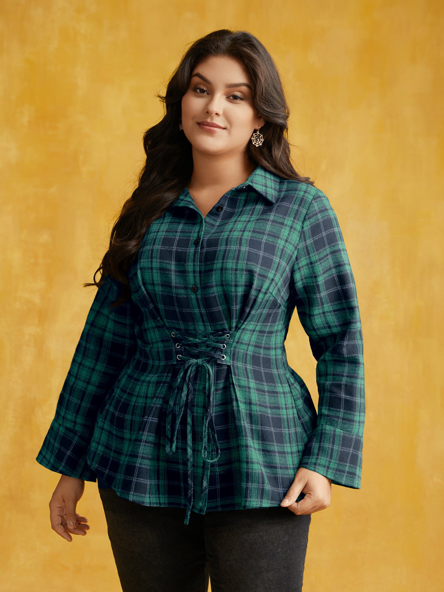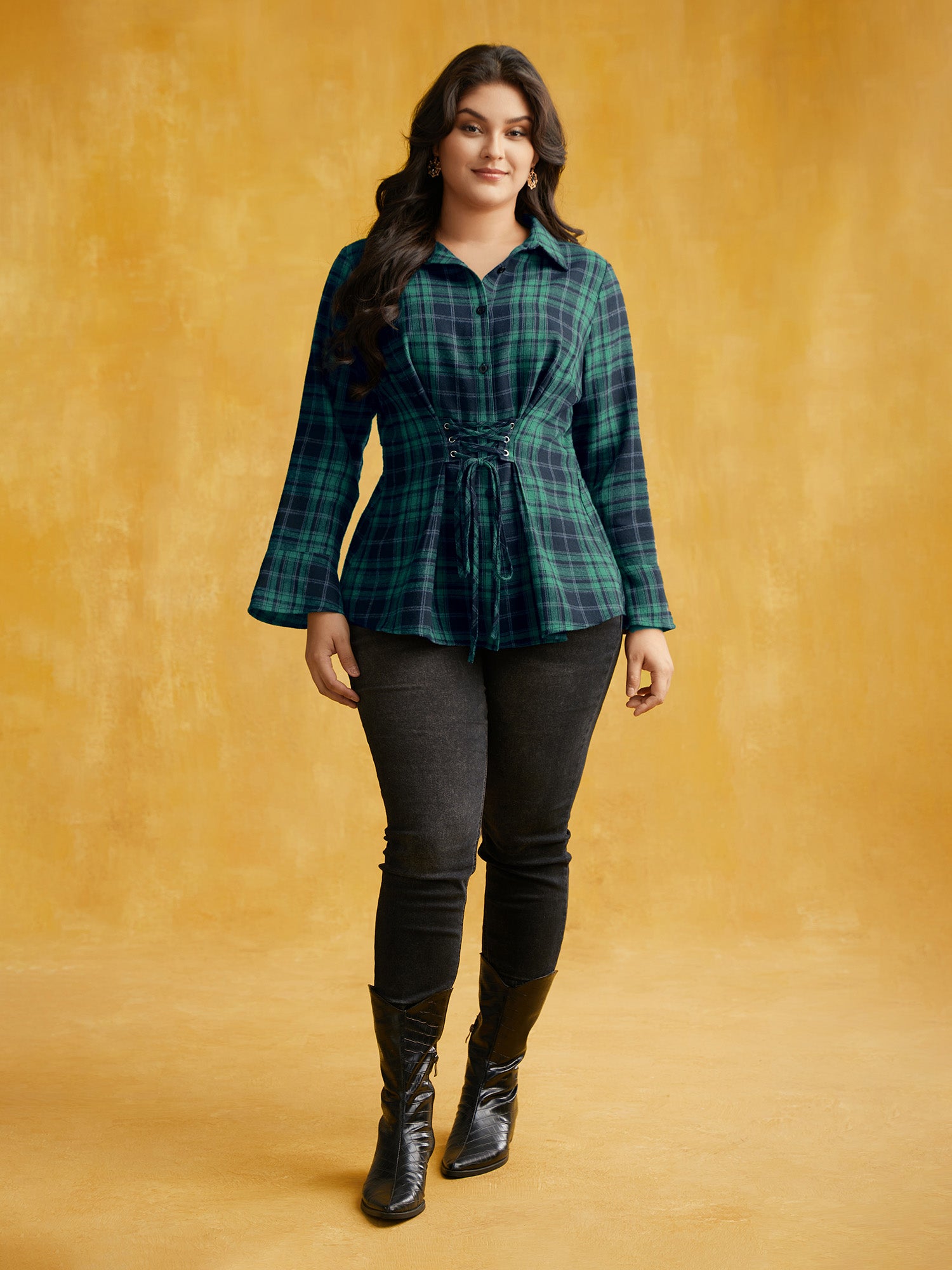 Sweet Gingham Wrinkled Petal Sleeve Blouse