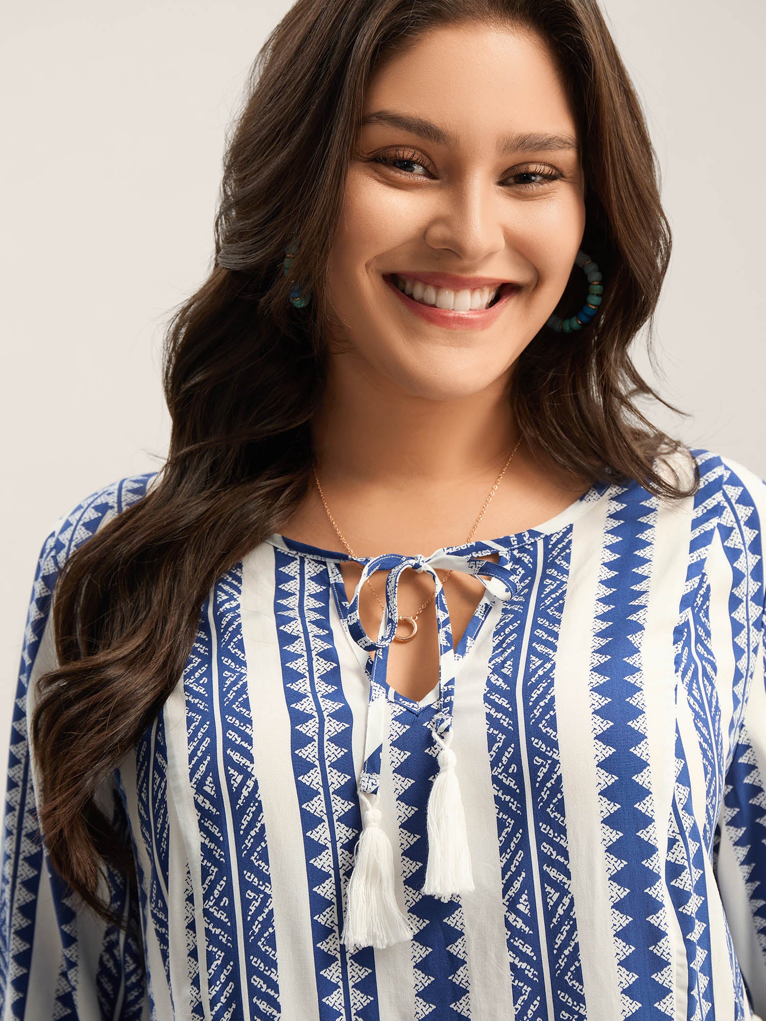 Bandana Geometric Lantern Sleeve Gathered Blouse