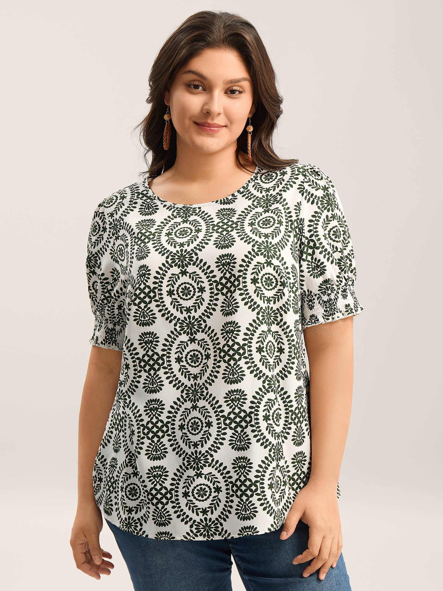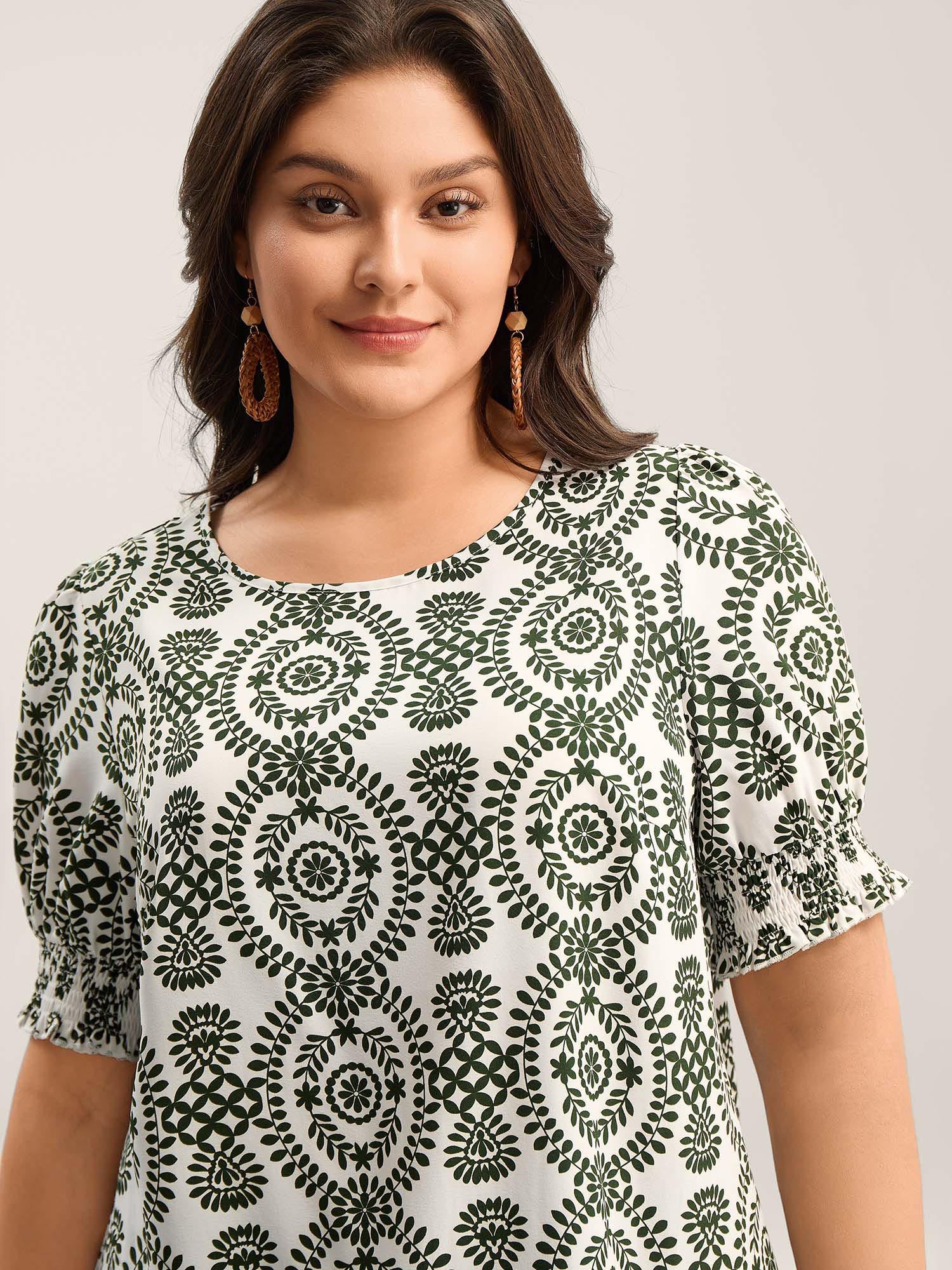 Text Pattern Ruffled Lantern Sleeve Blouse