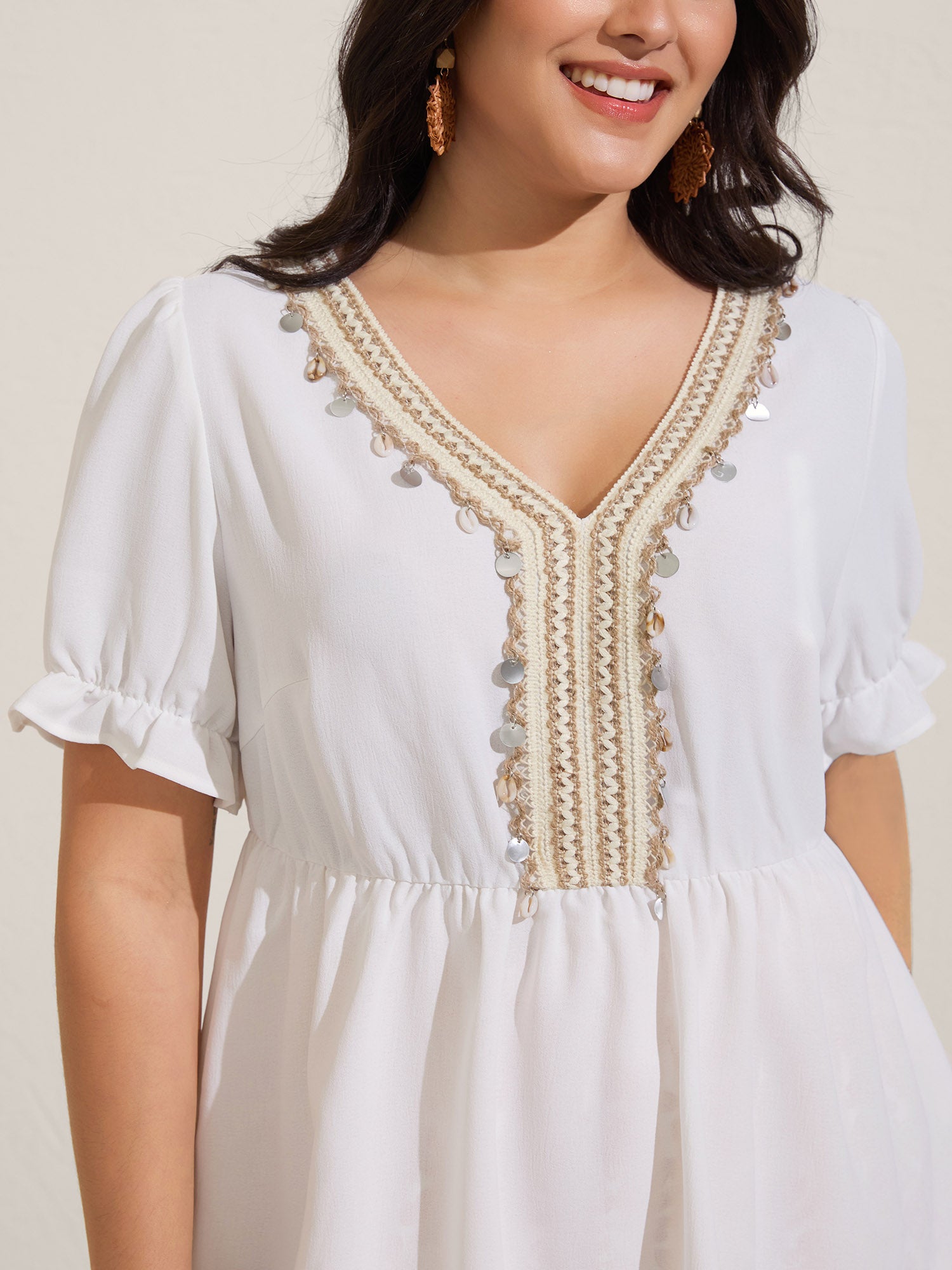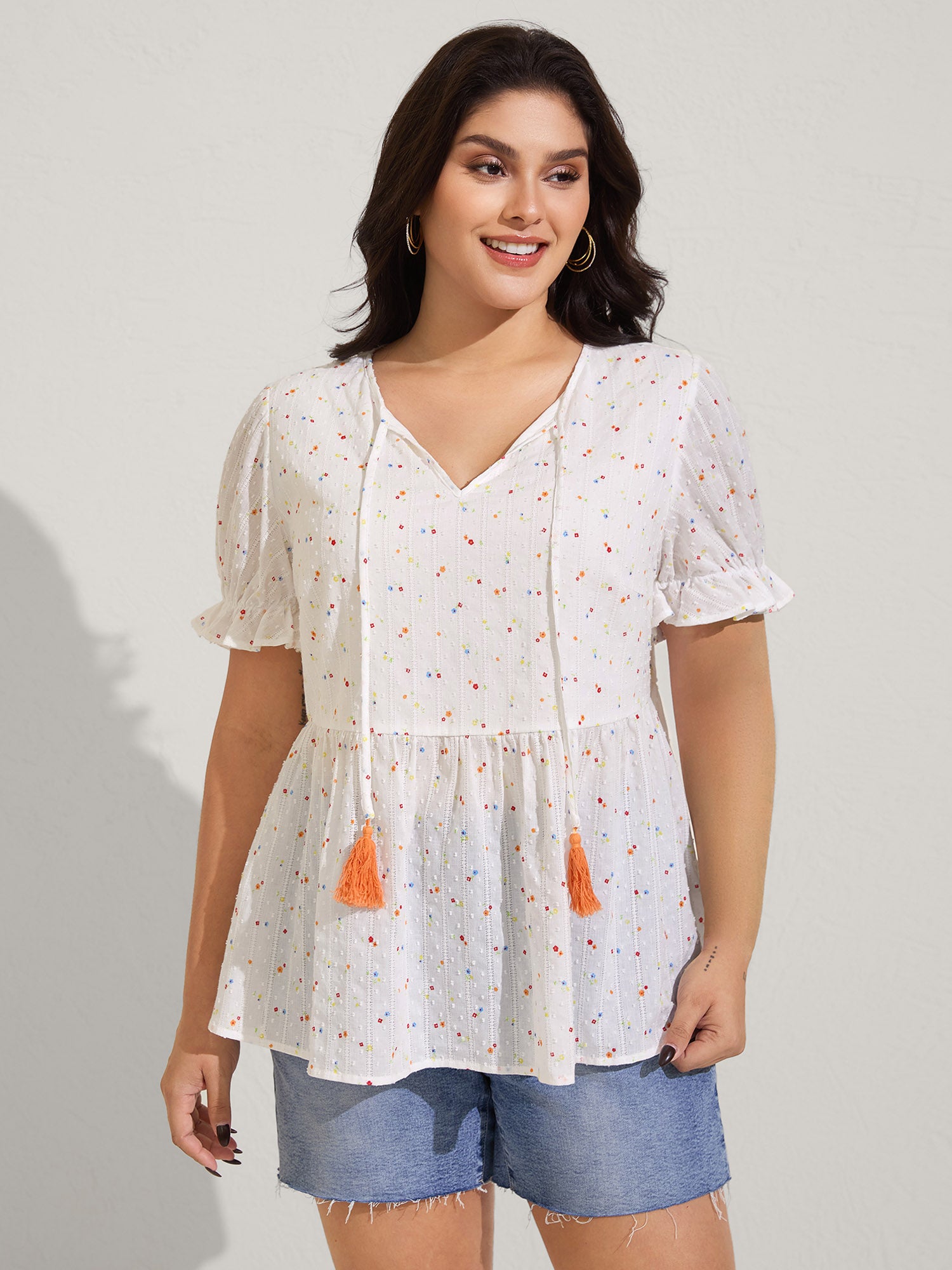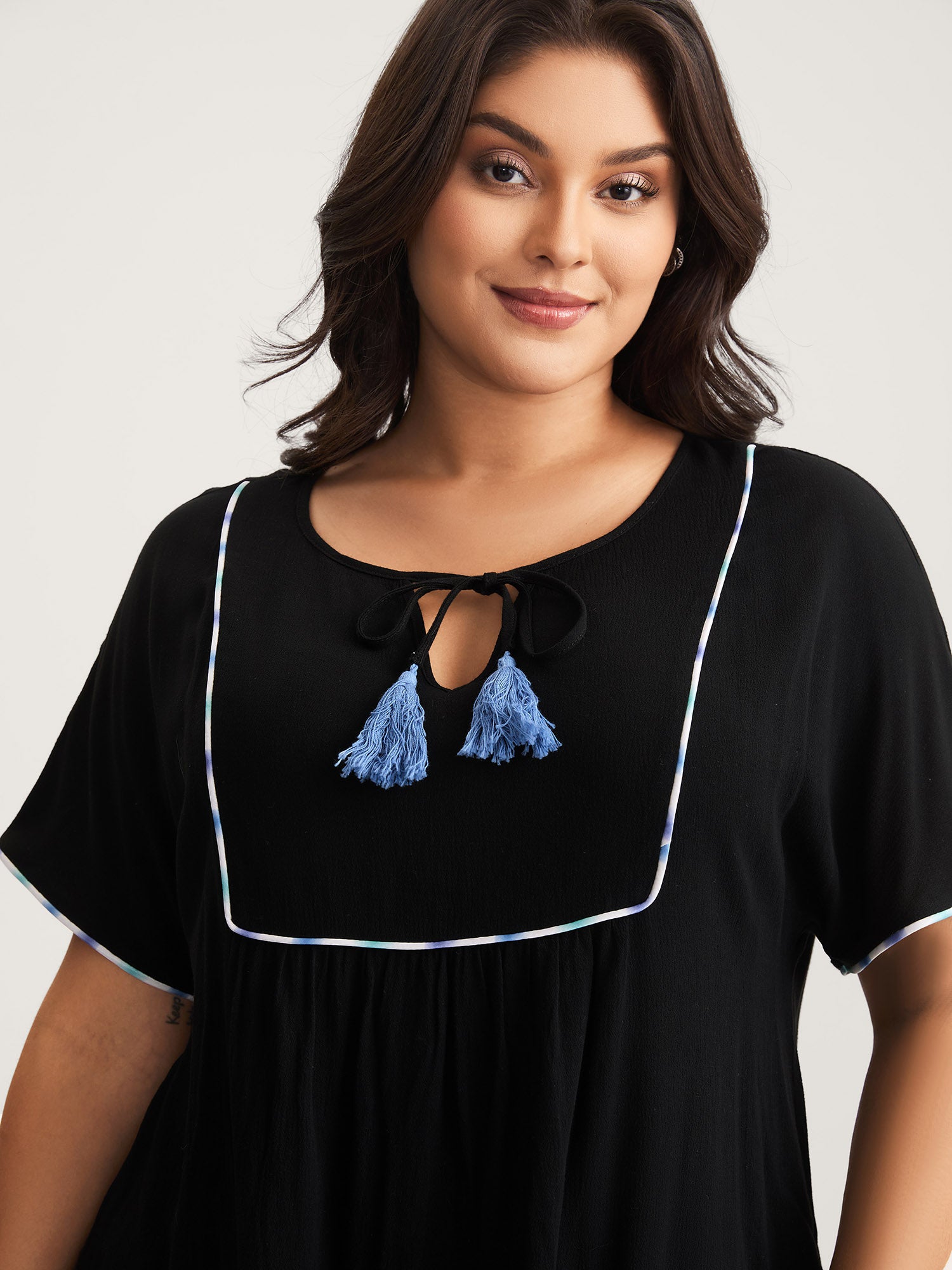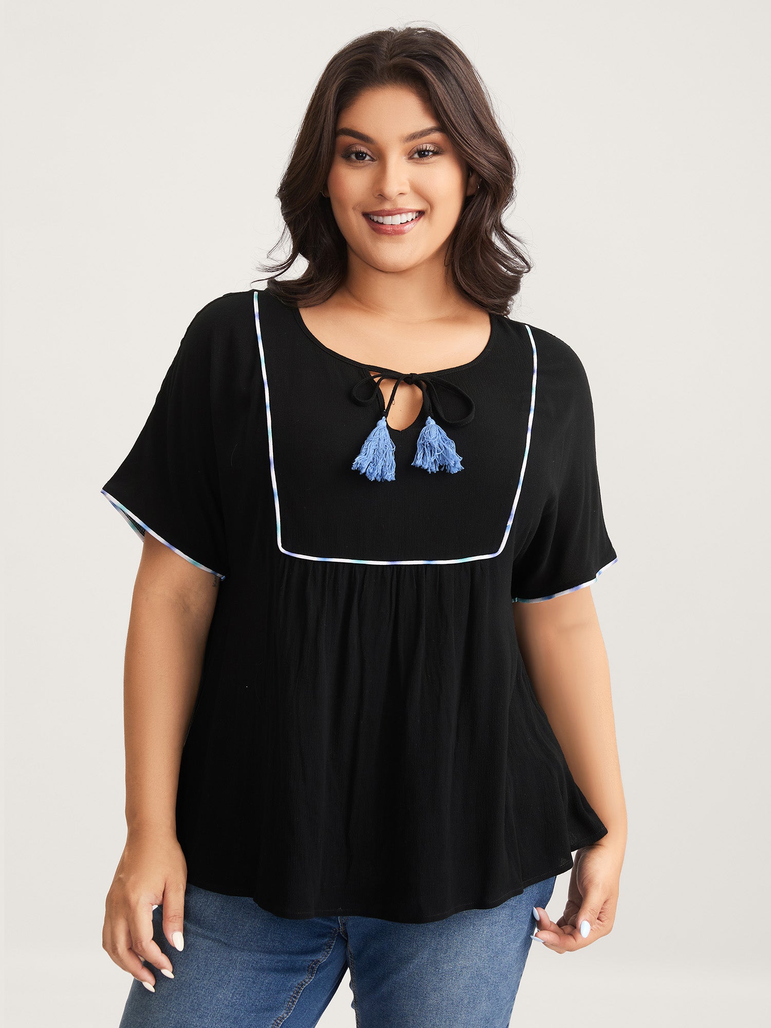 Cotton Colorful Embroidered Tassels Solid Blouse