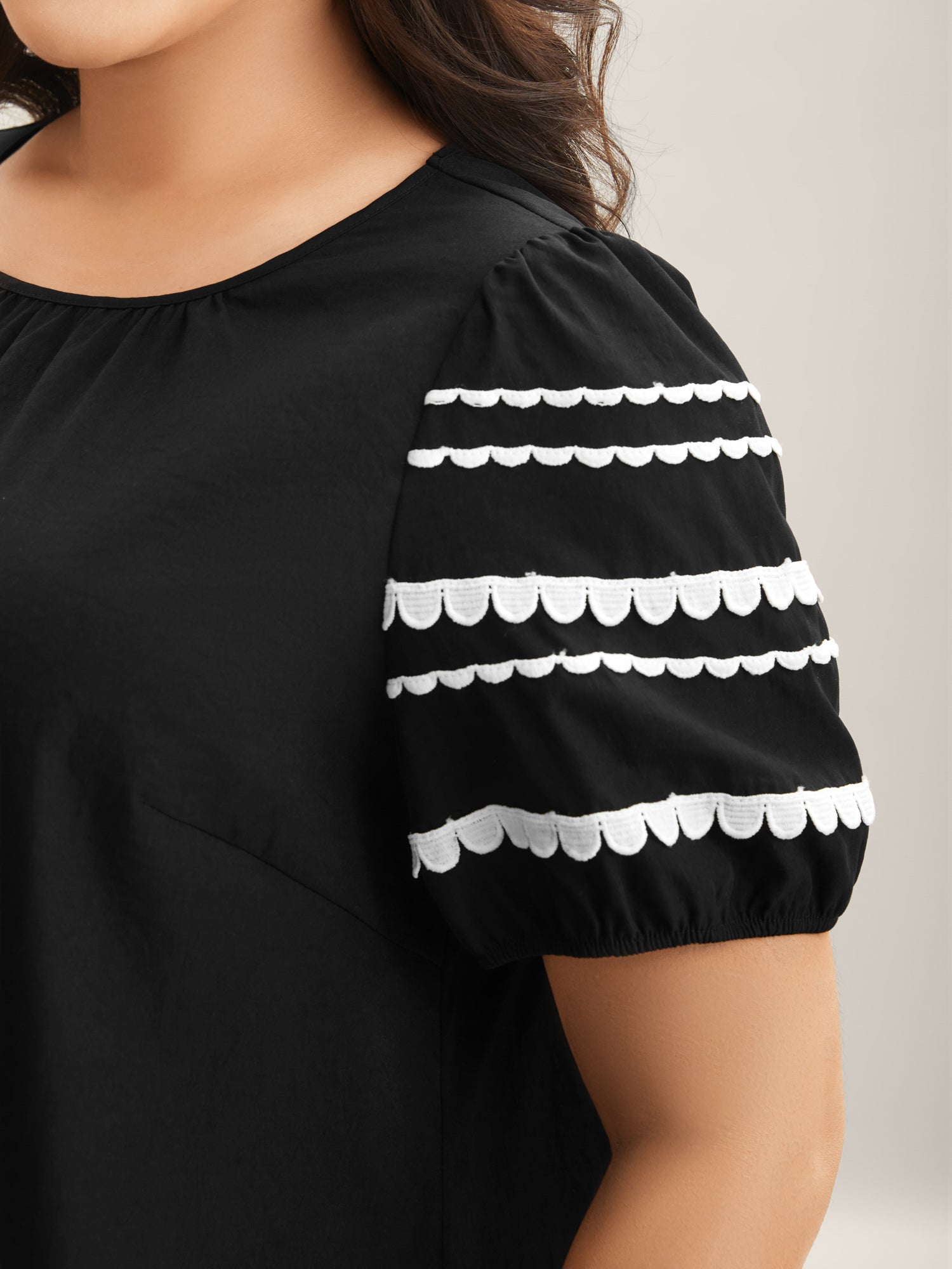 Criss Cross Neckline Puff Sleeve Gathered Blouse