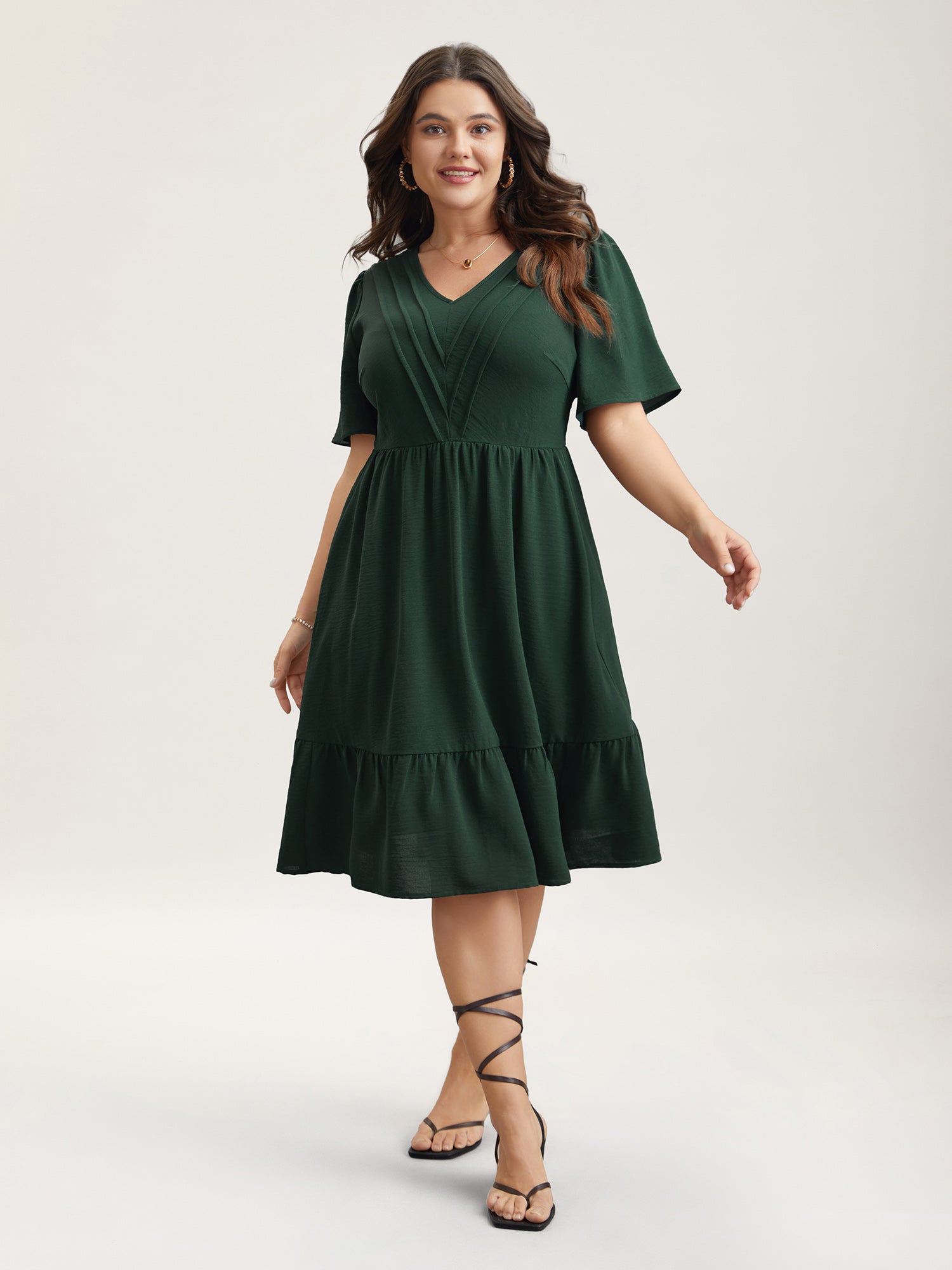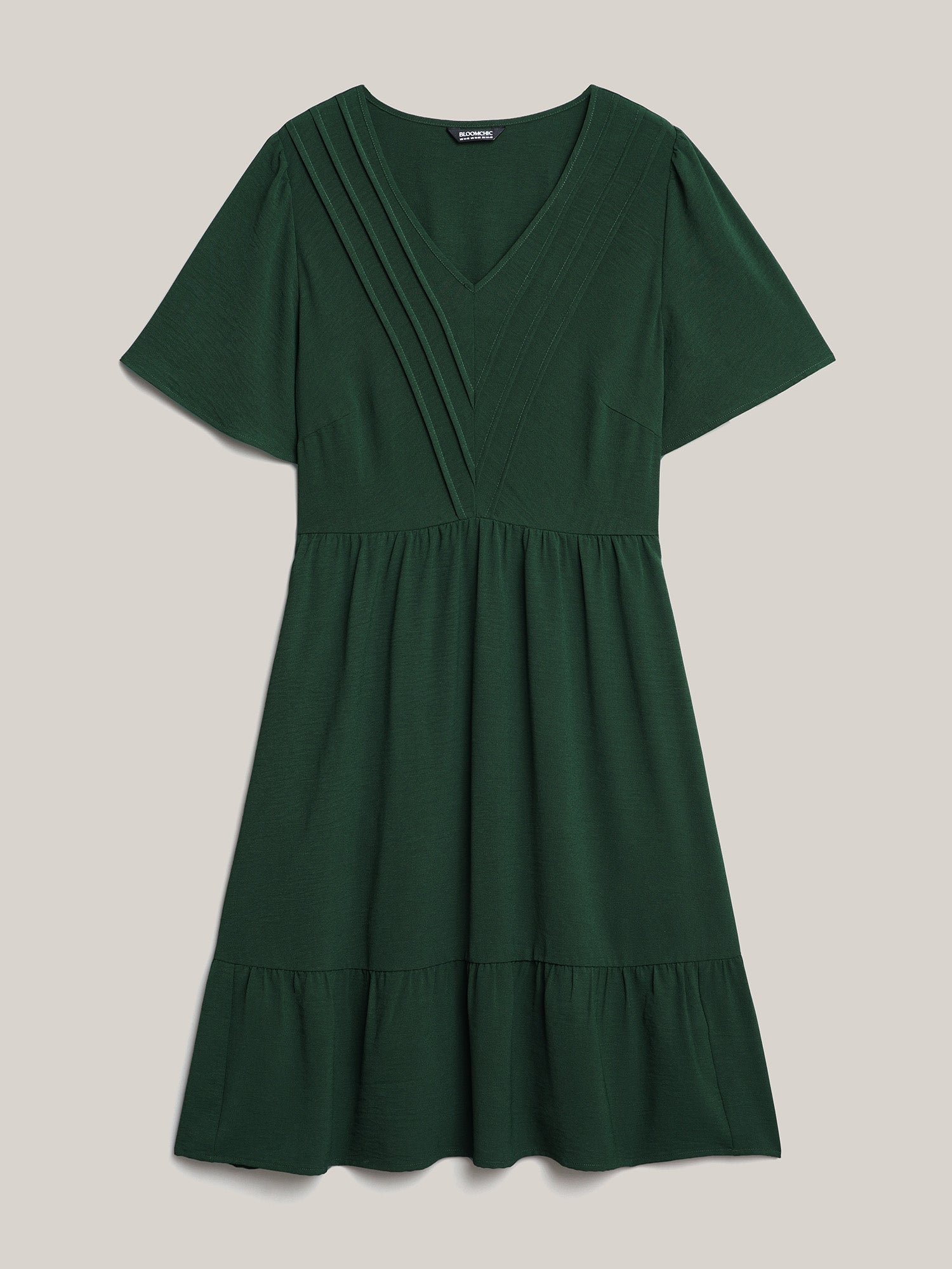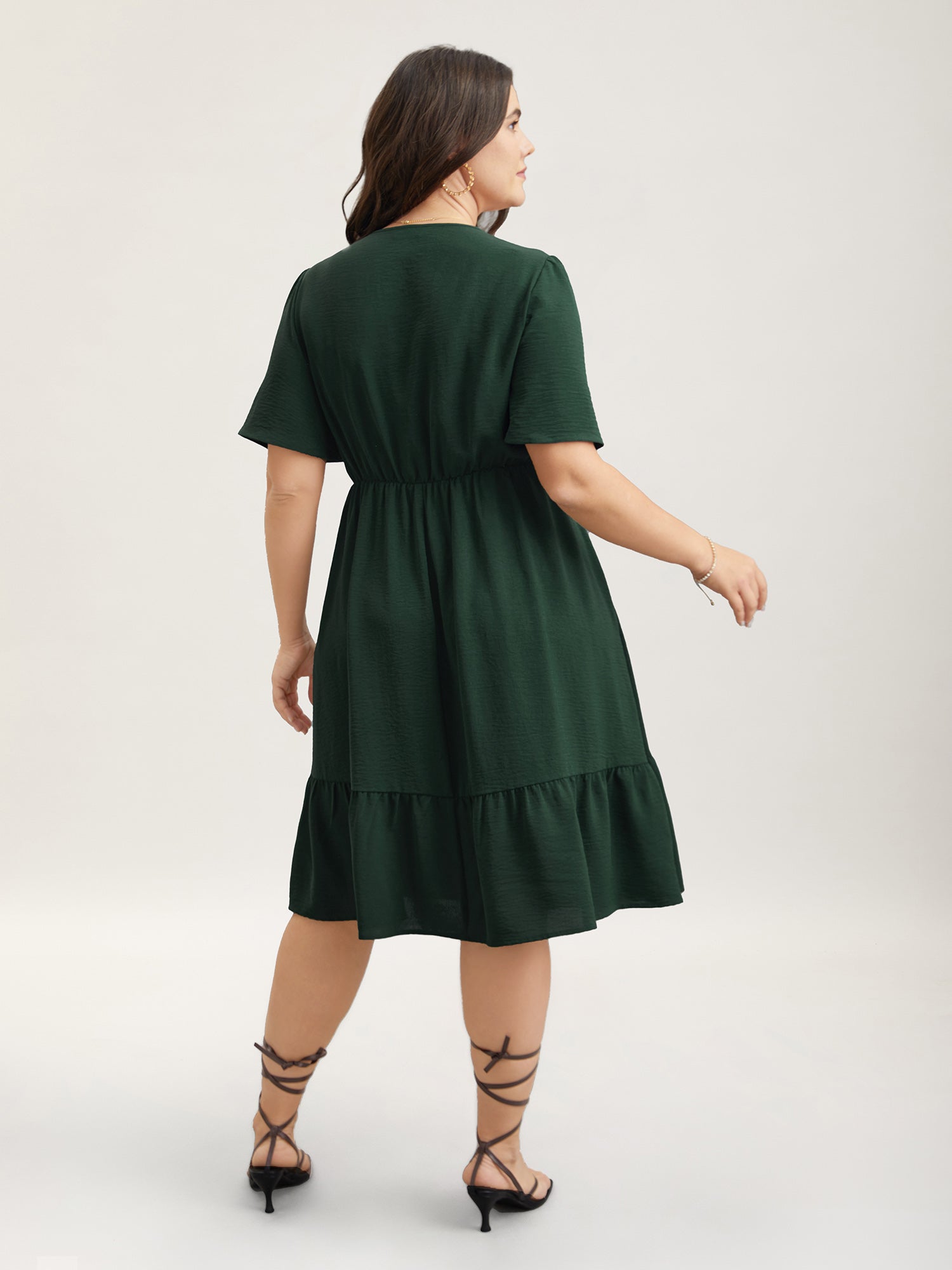 • Bib-Front V-Neck Pockets Tiered Midi Dress