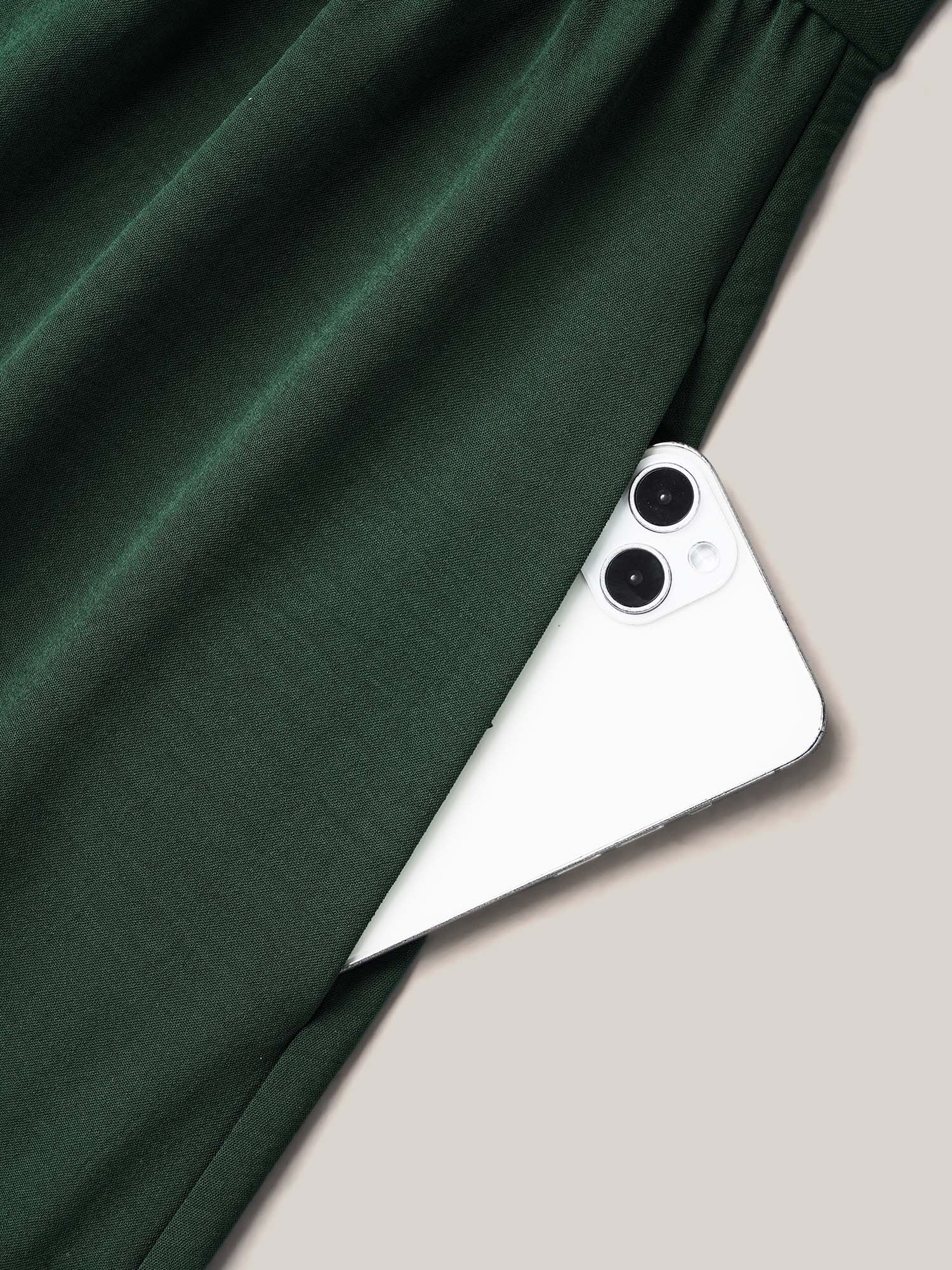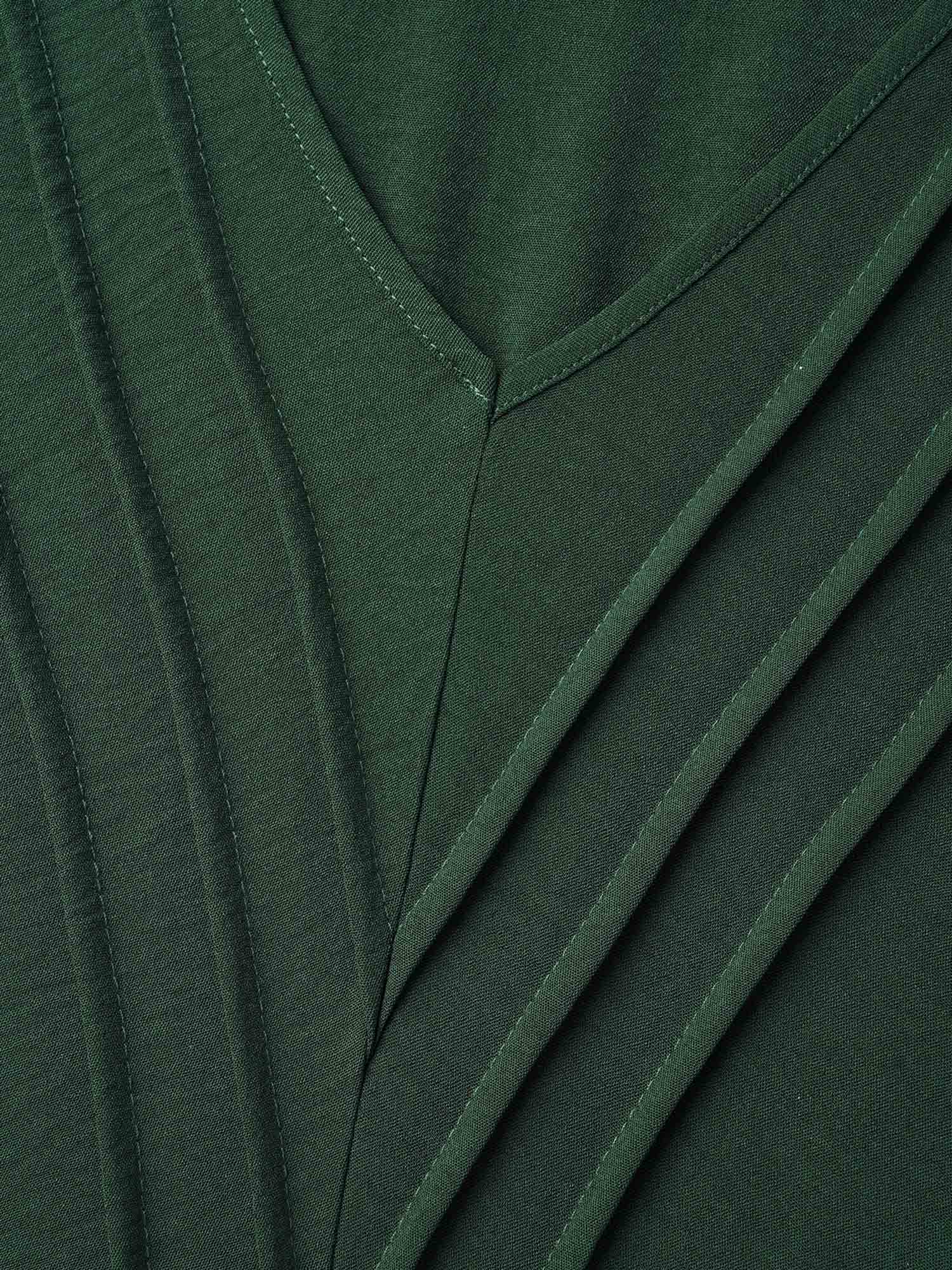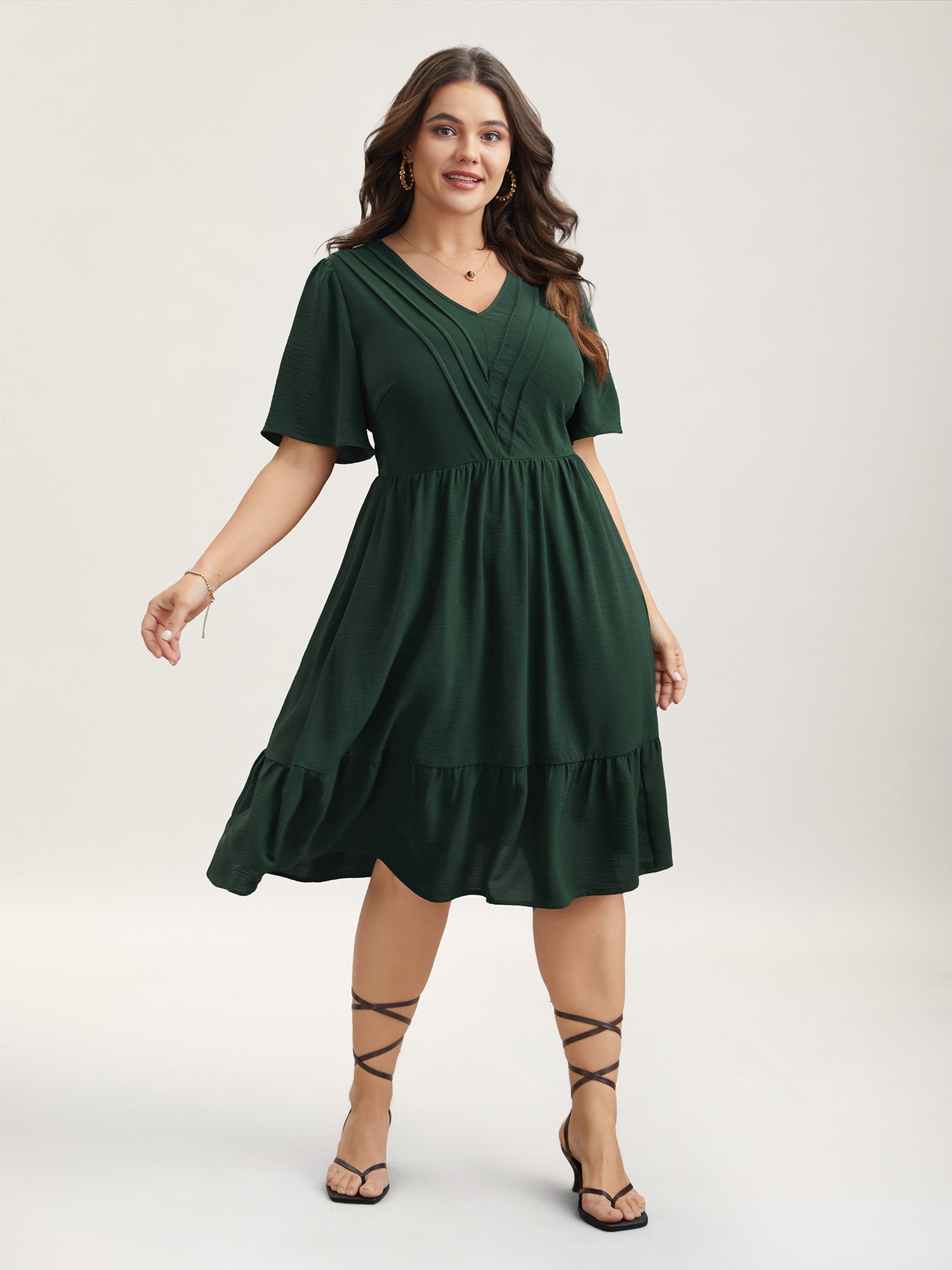 • Bib-Front V-Neck Pockets Tiered Midi Dress