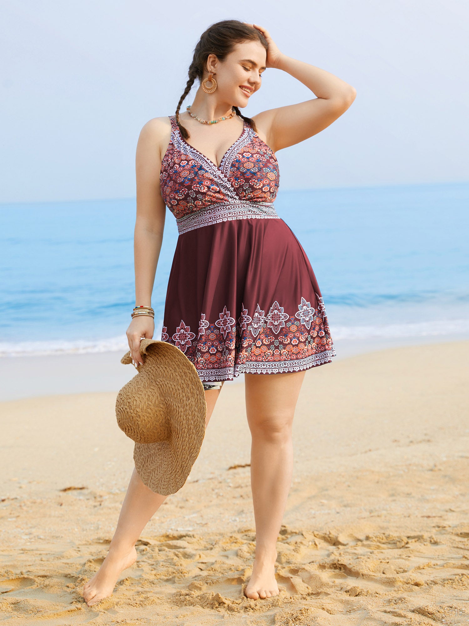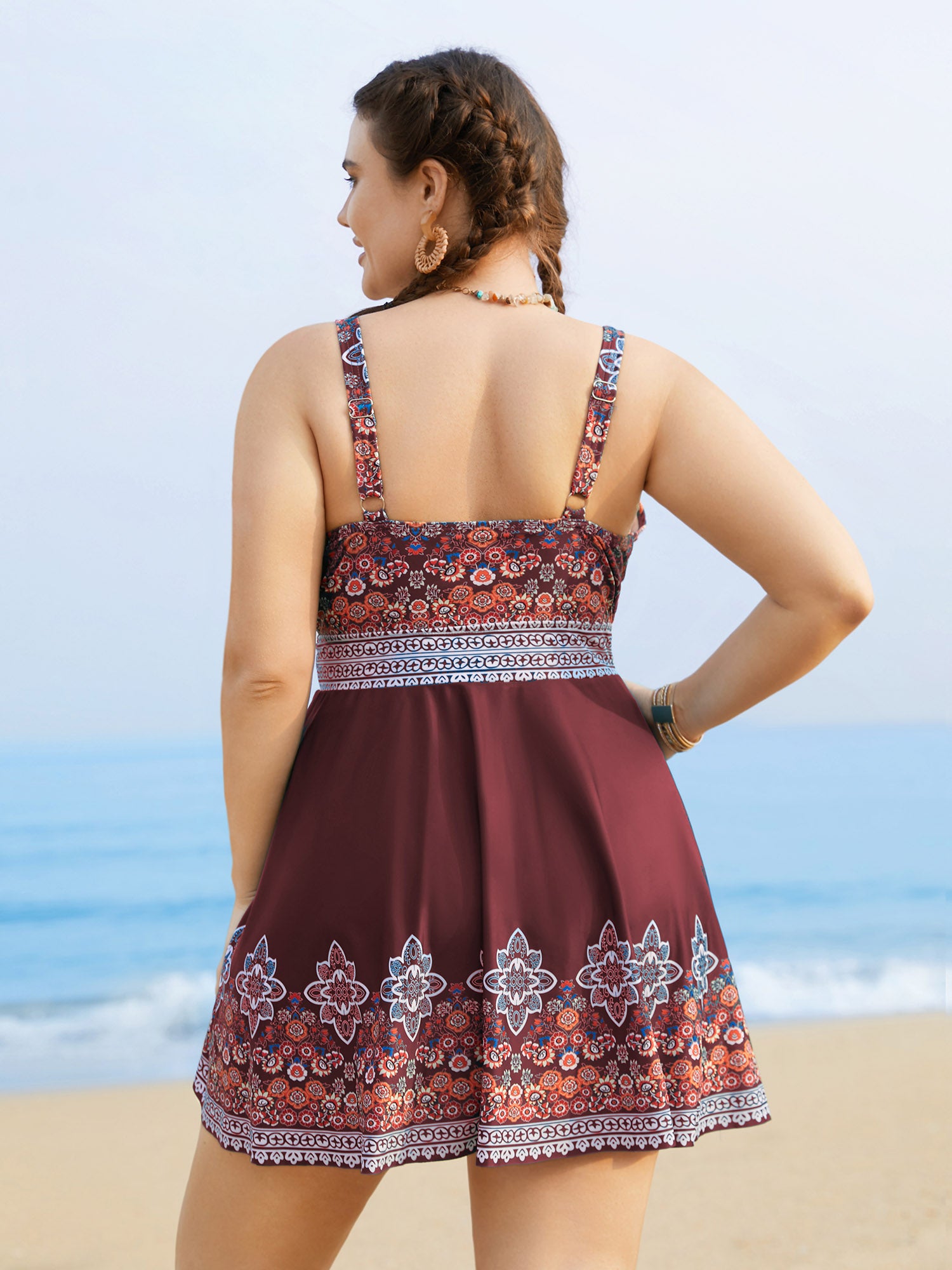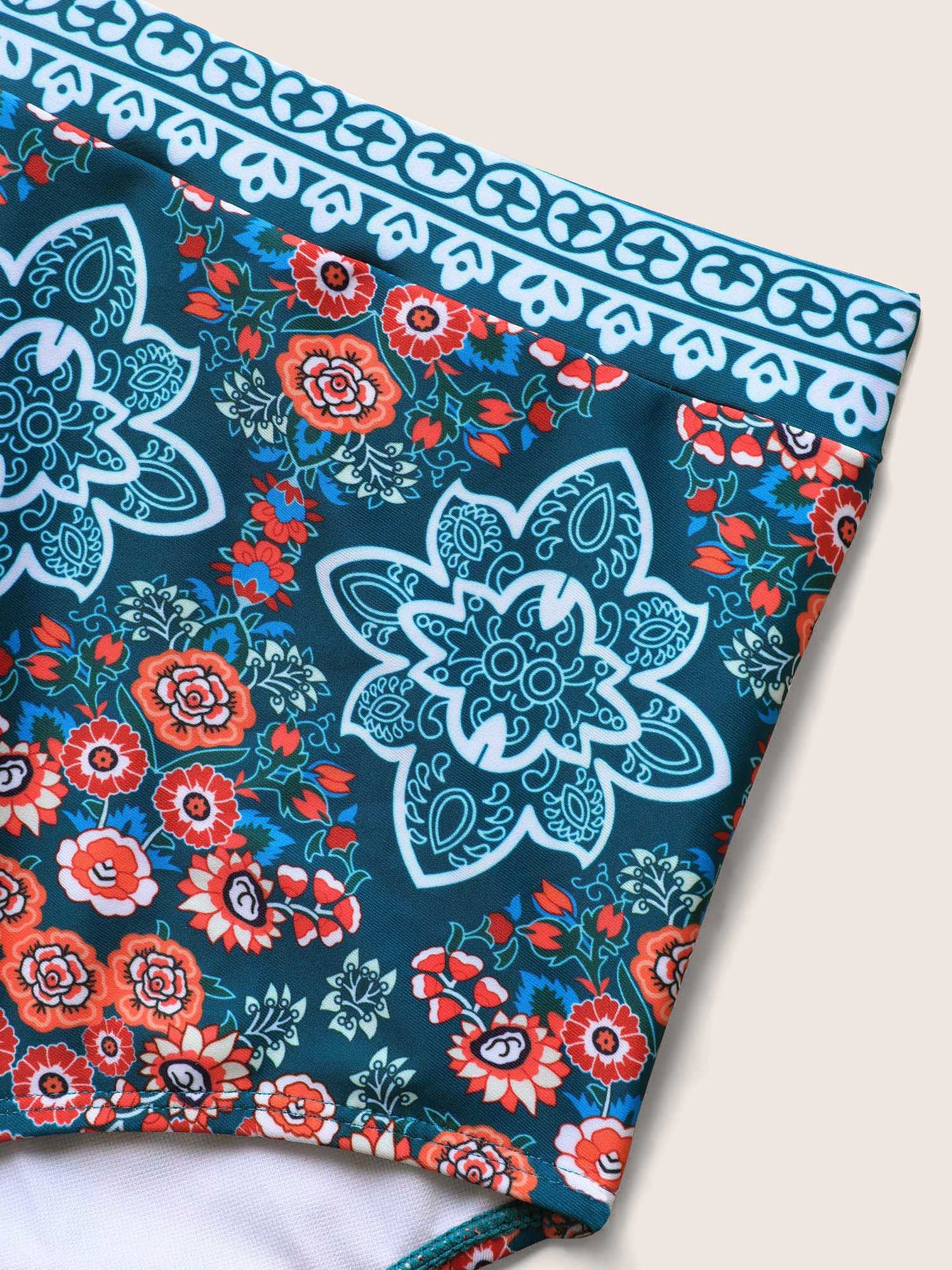 • Boho Print Surplice Neck Adjustable Swim Dress
