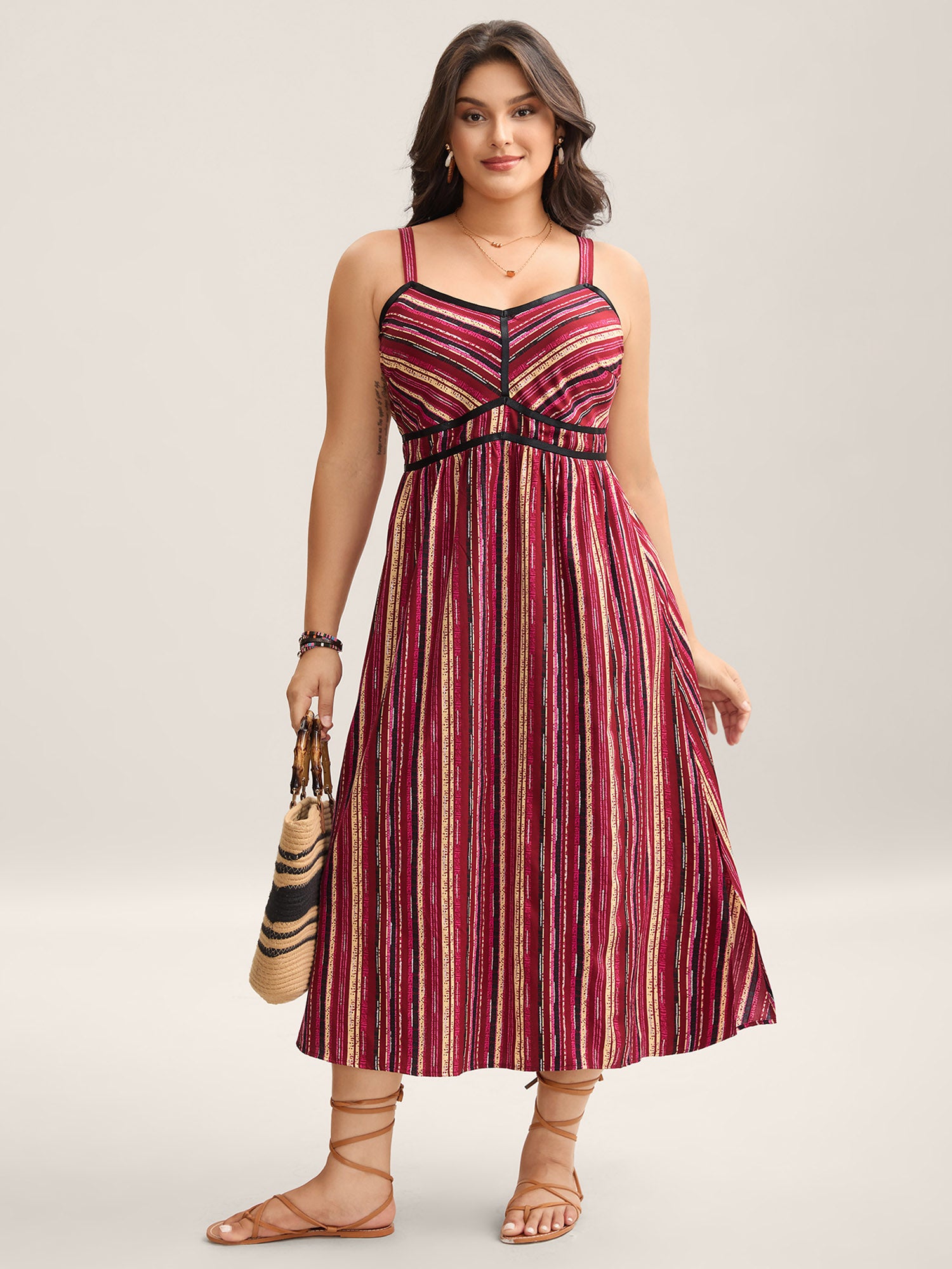 Colorful Stripes Spliced Cami Maxi Dress
