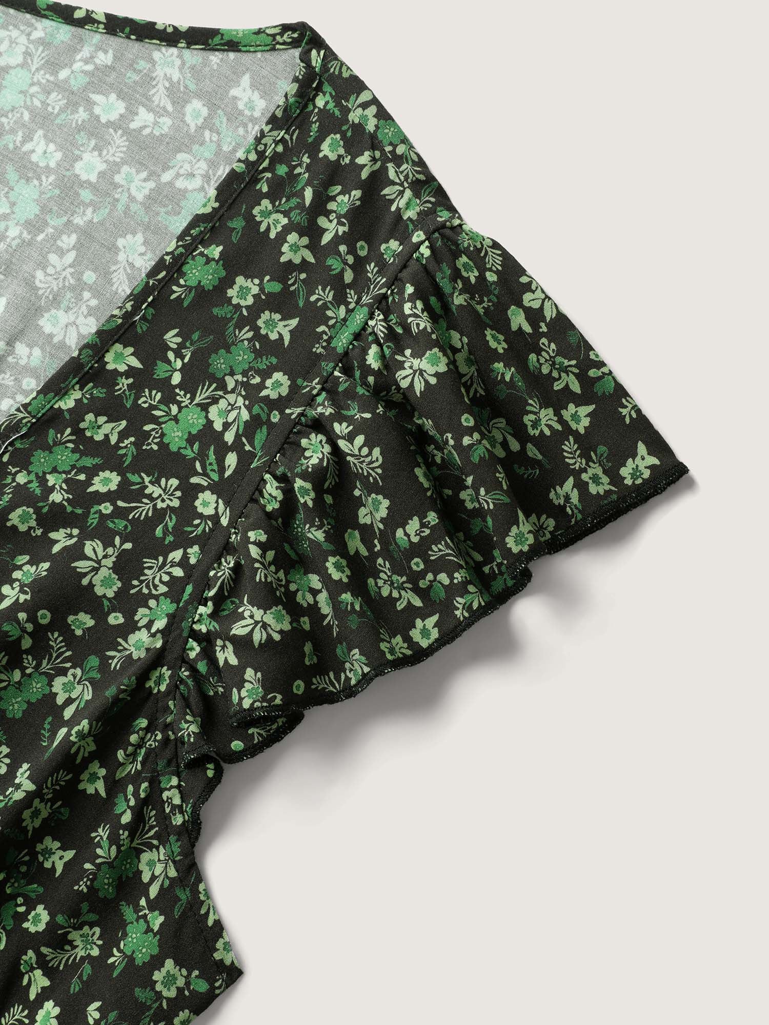 • Rayon Garden Fresh Ruffled Sleeve Midi Dress