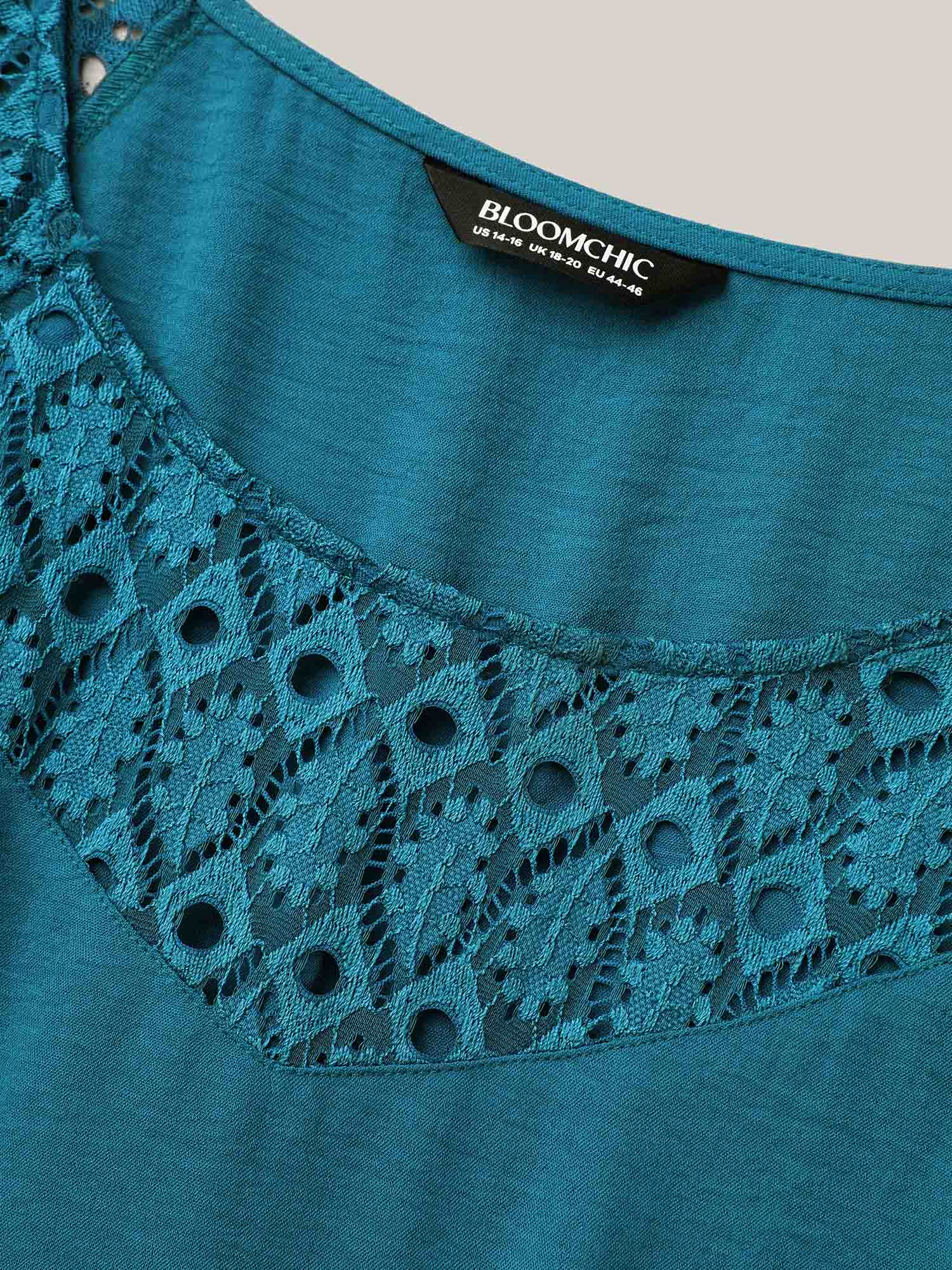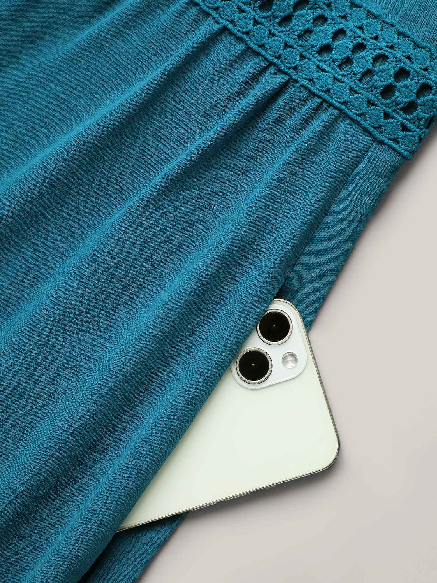 Lace Cut-Out Raglan Sleeve Pockets Midi Dress