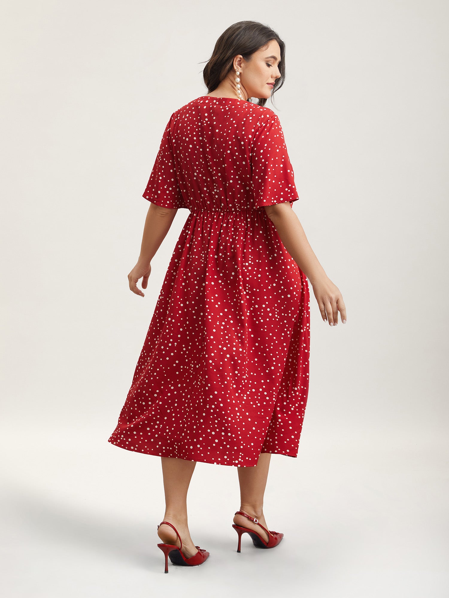 • Polka Dots Print Cut-Out Flutter Sleeve Midi Dress