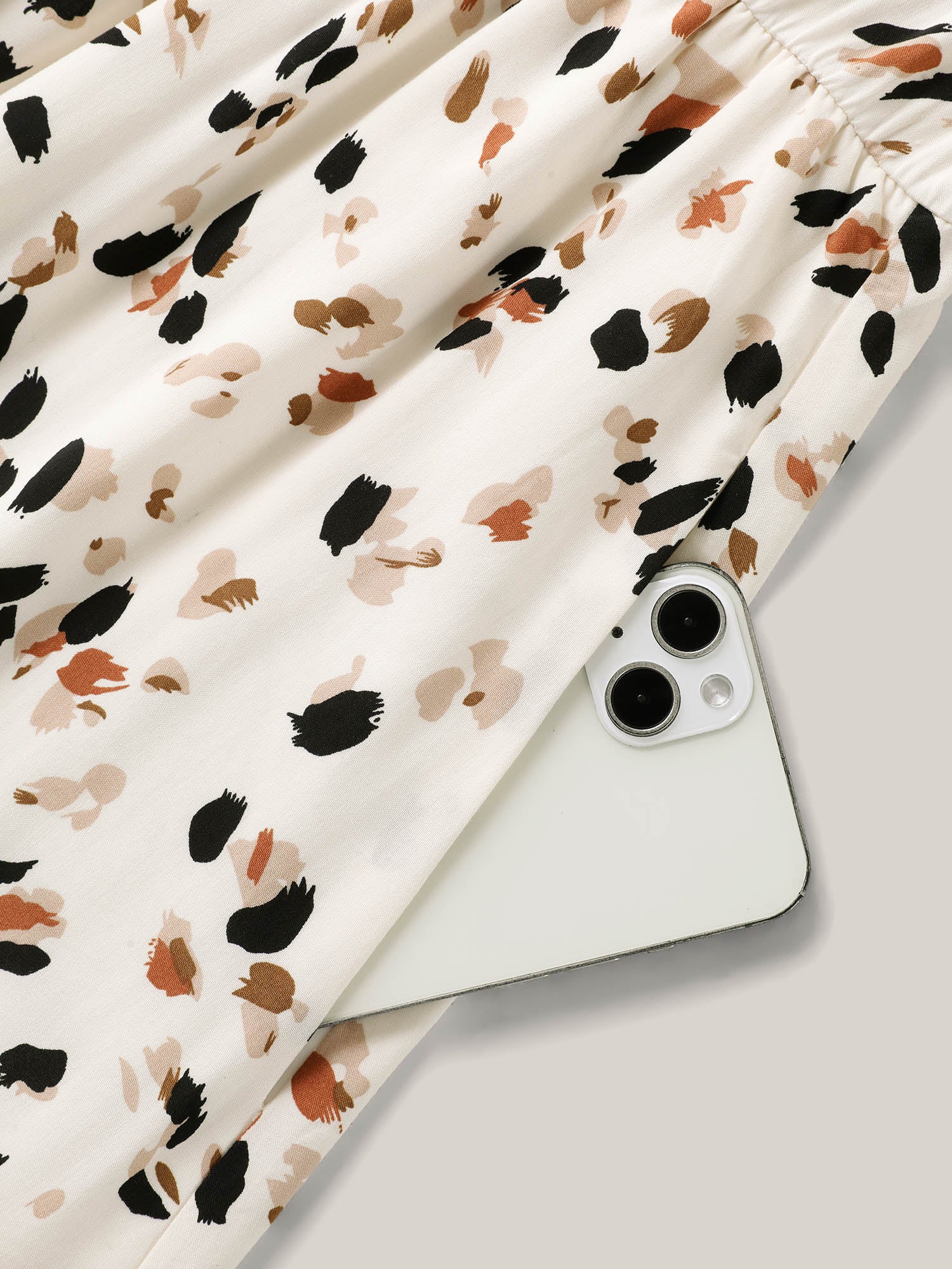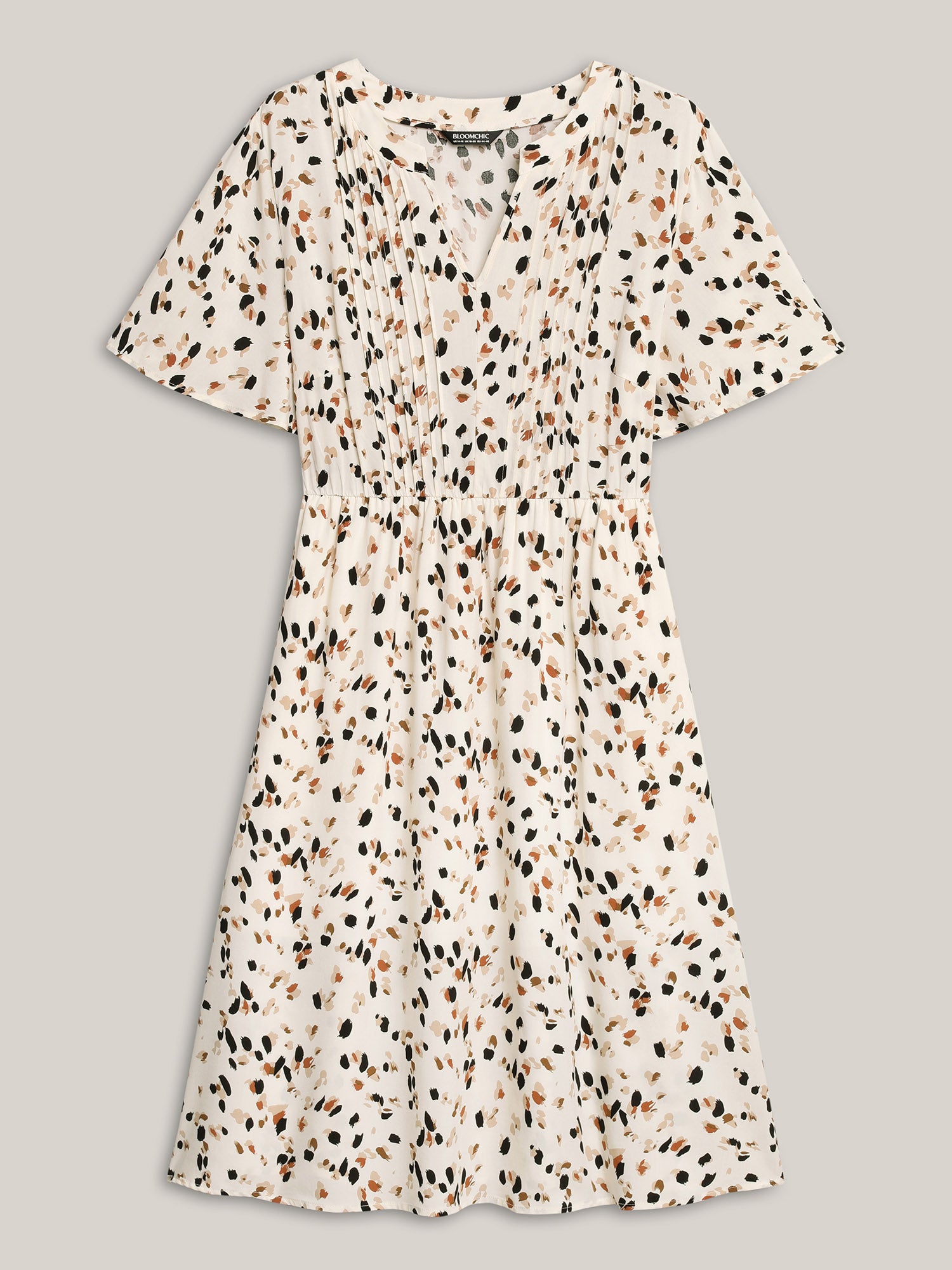 Rayon Toothpick Pleat Leopard Print Midi Dress