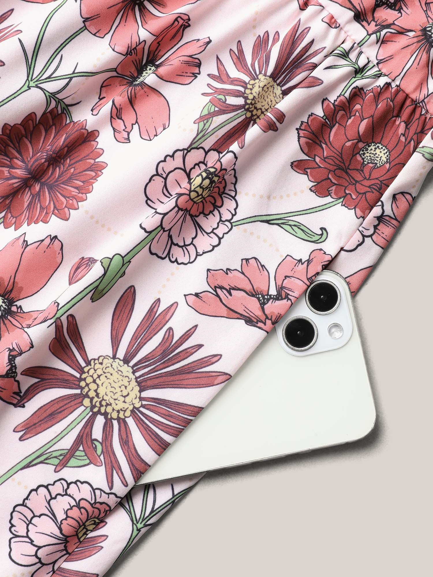 • Ruffled Floral Print Stretchy-Waist Midi Dress