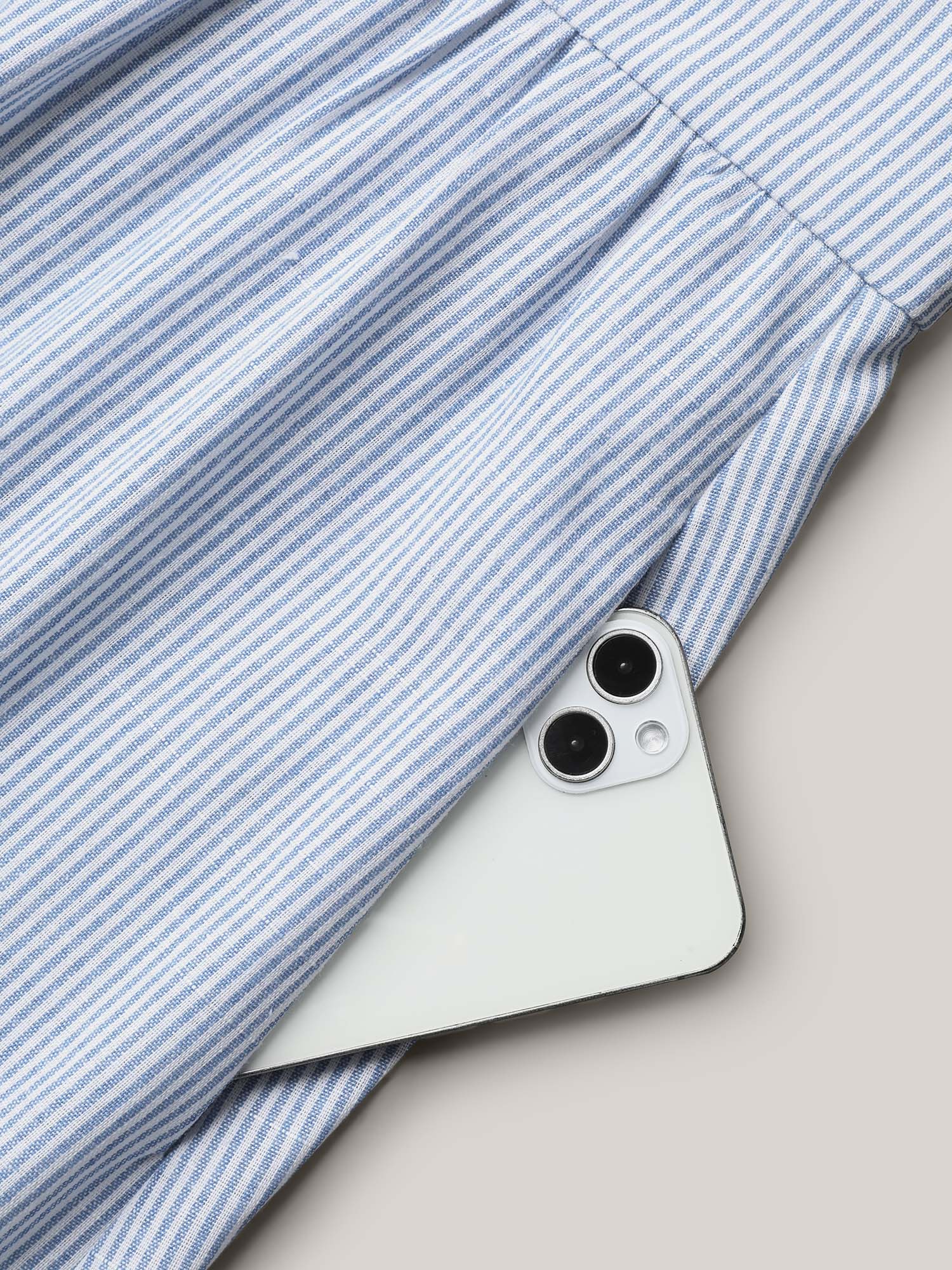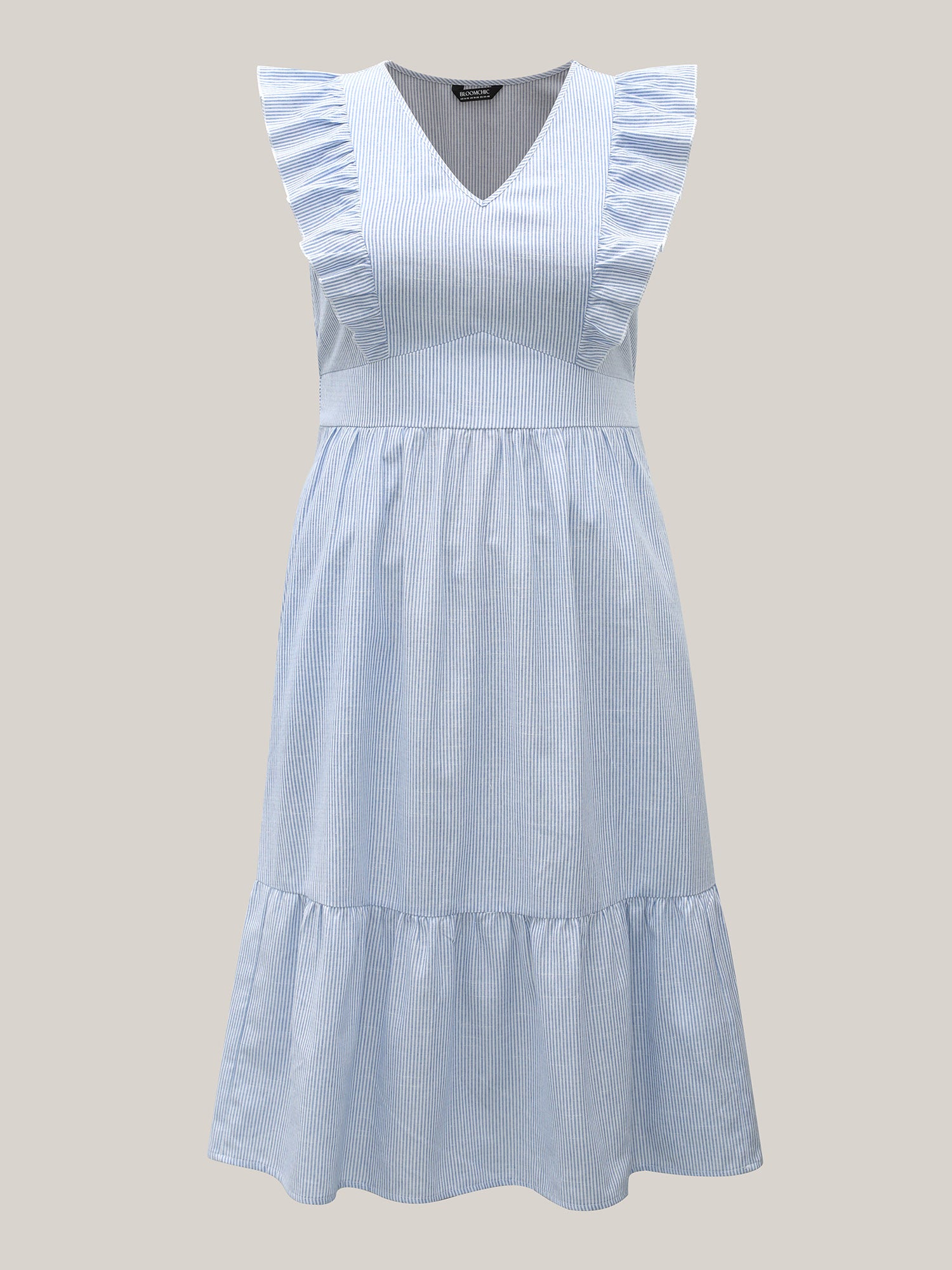 Ruffled Striped Print Triangular Waist Midi Dress