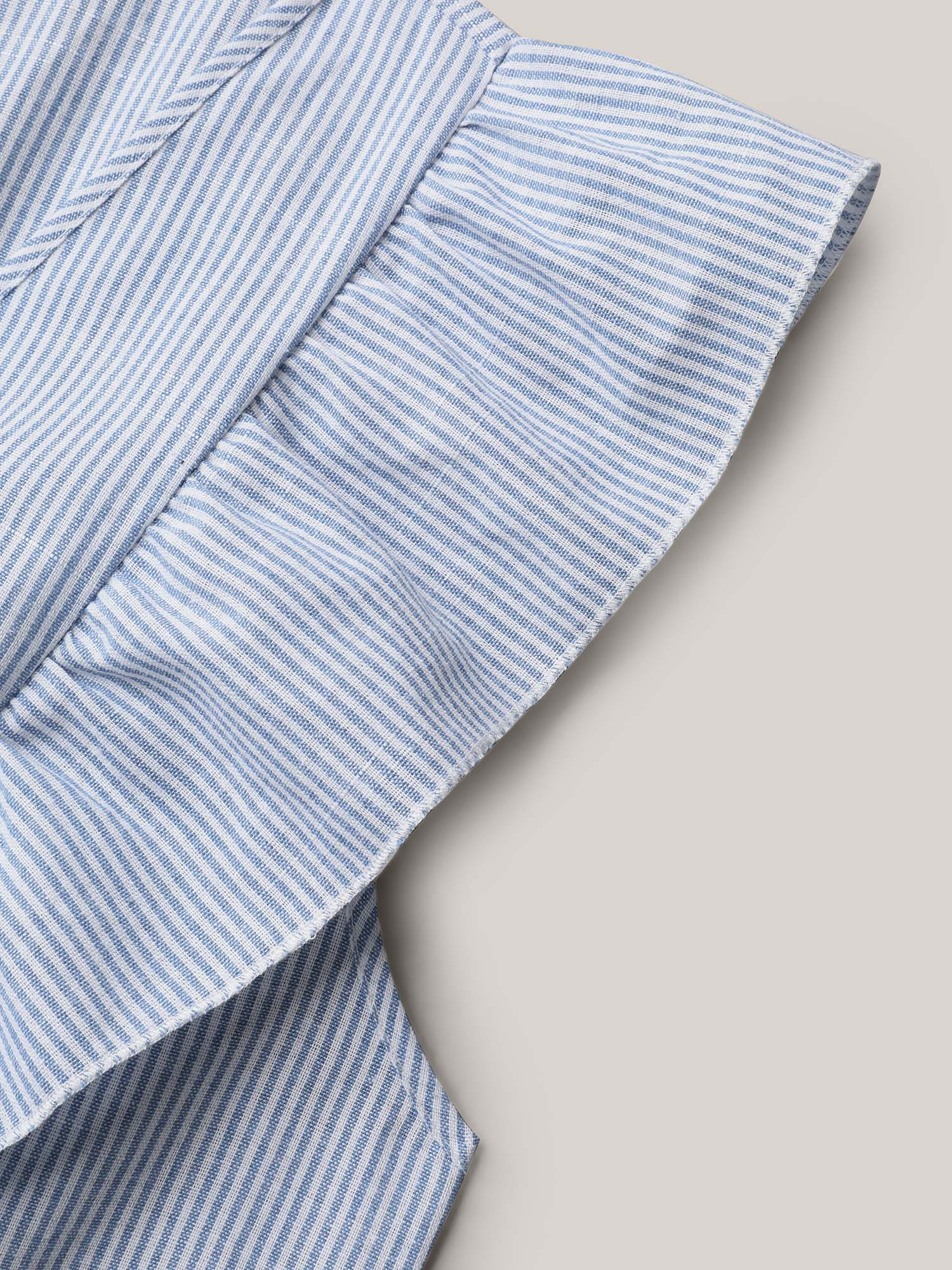 • Ruffled Striped Print Triangular Waist Midi Dress