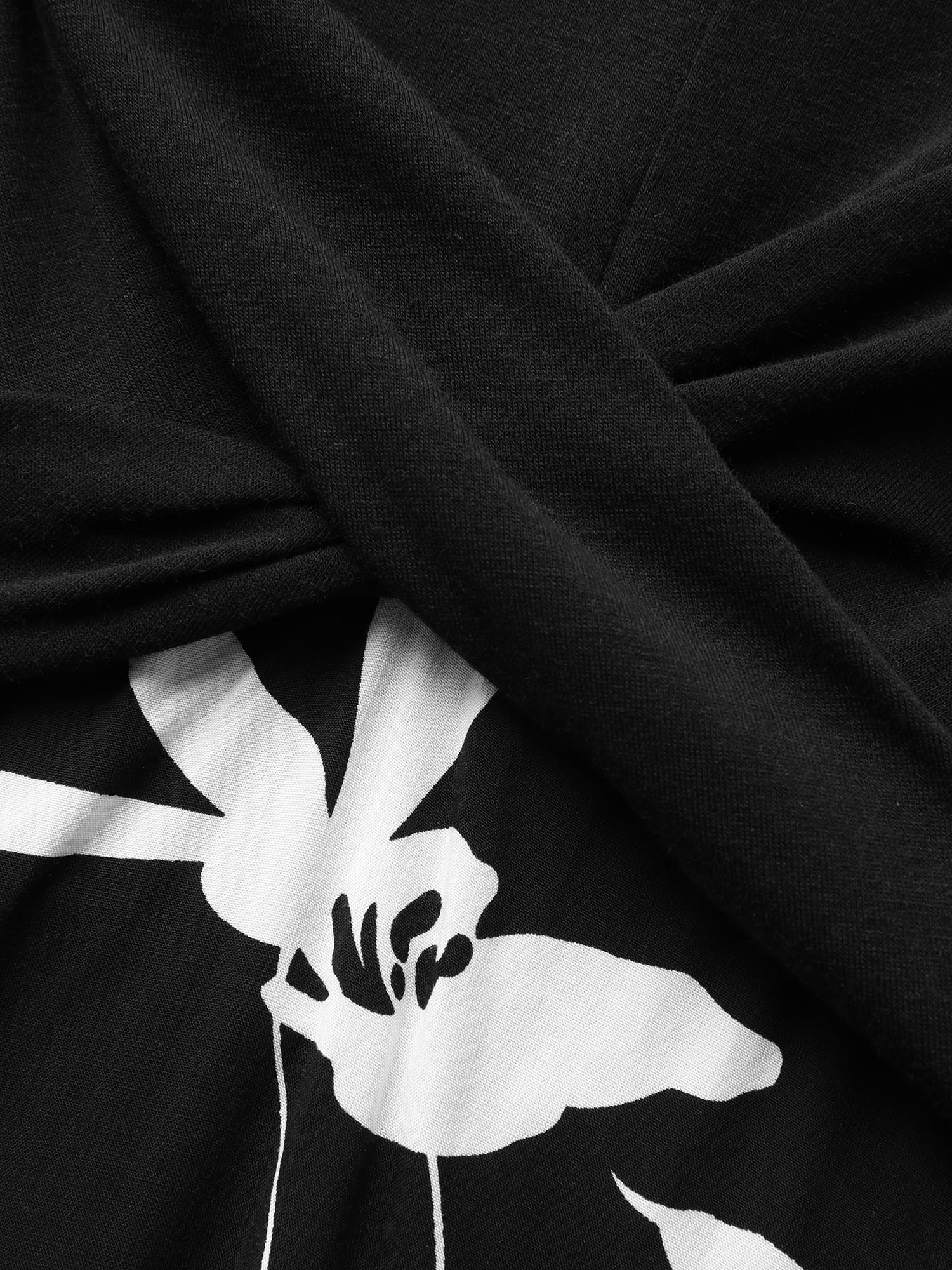• Silhouette Floral Print Patchwork Crossover Pocket Dress