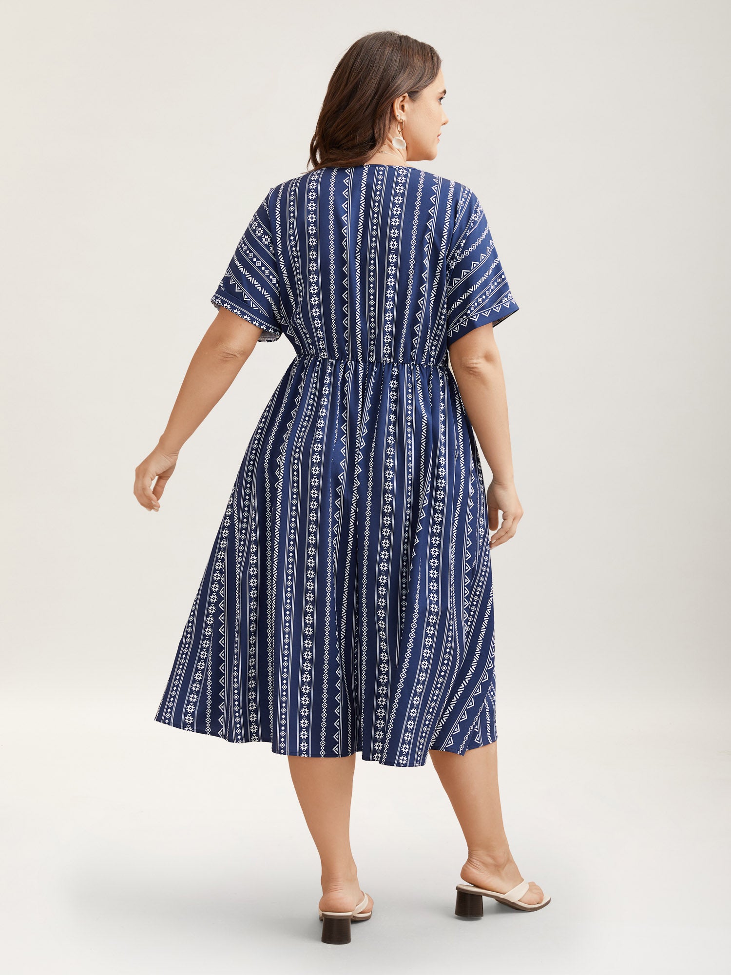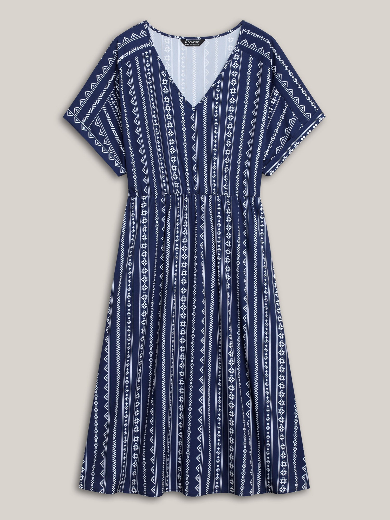 • Striped Waist-Cinched Dolman Sleeve Midi Dress