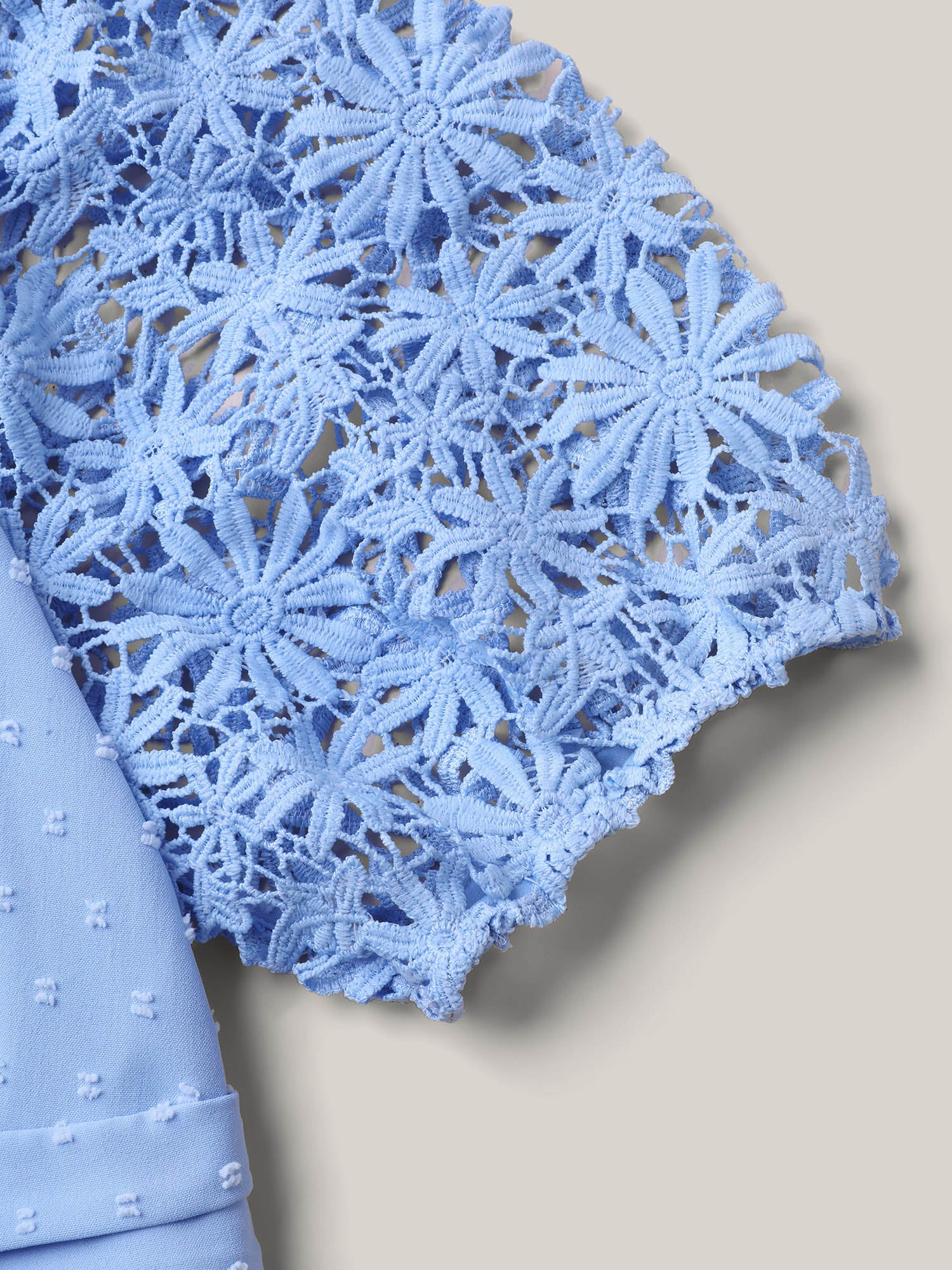 Textured Lace Sleeve Stretchy Waist Midi Dress